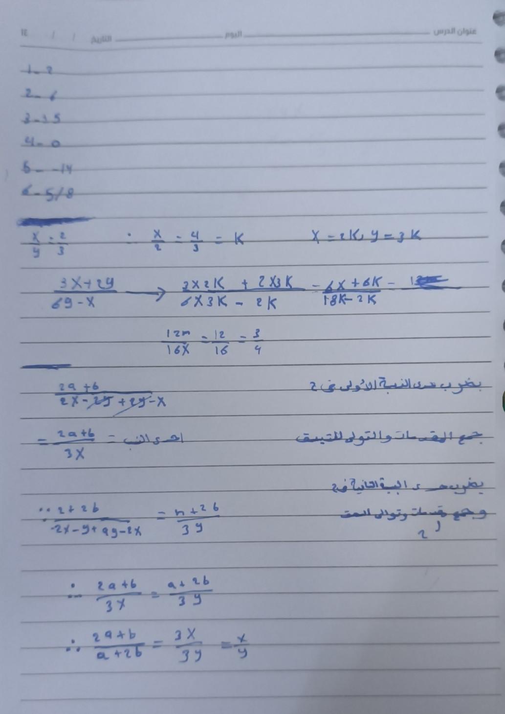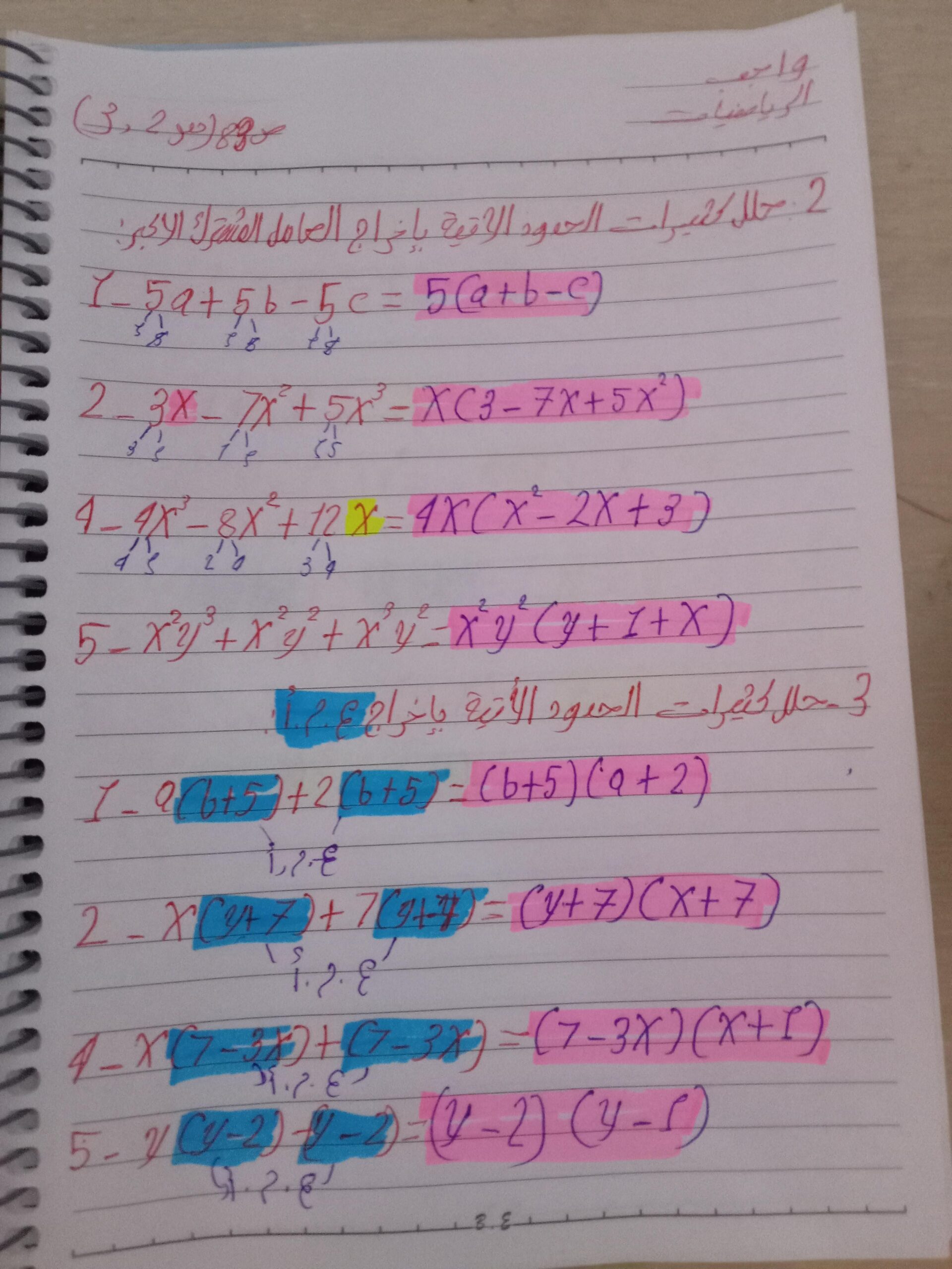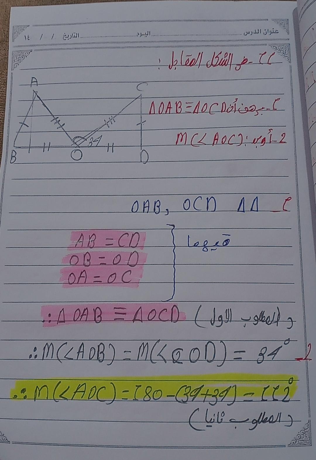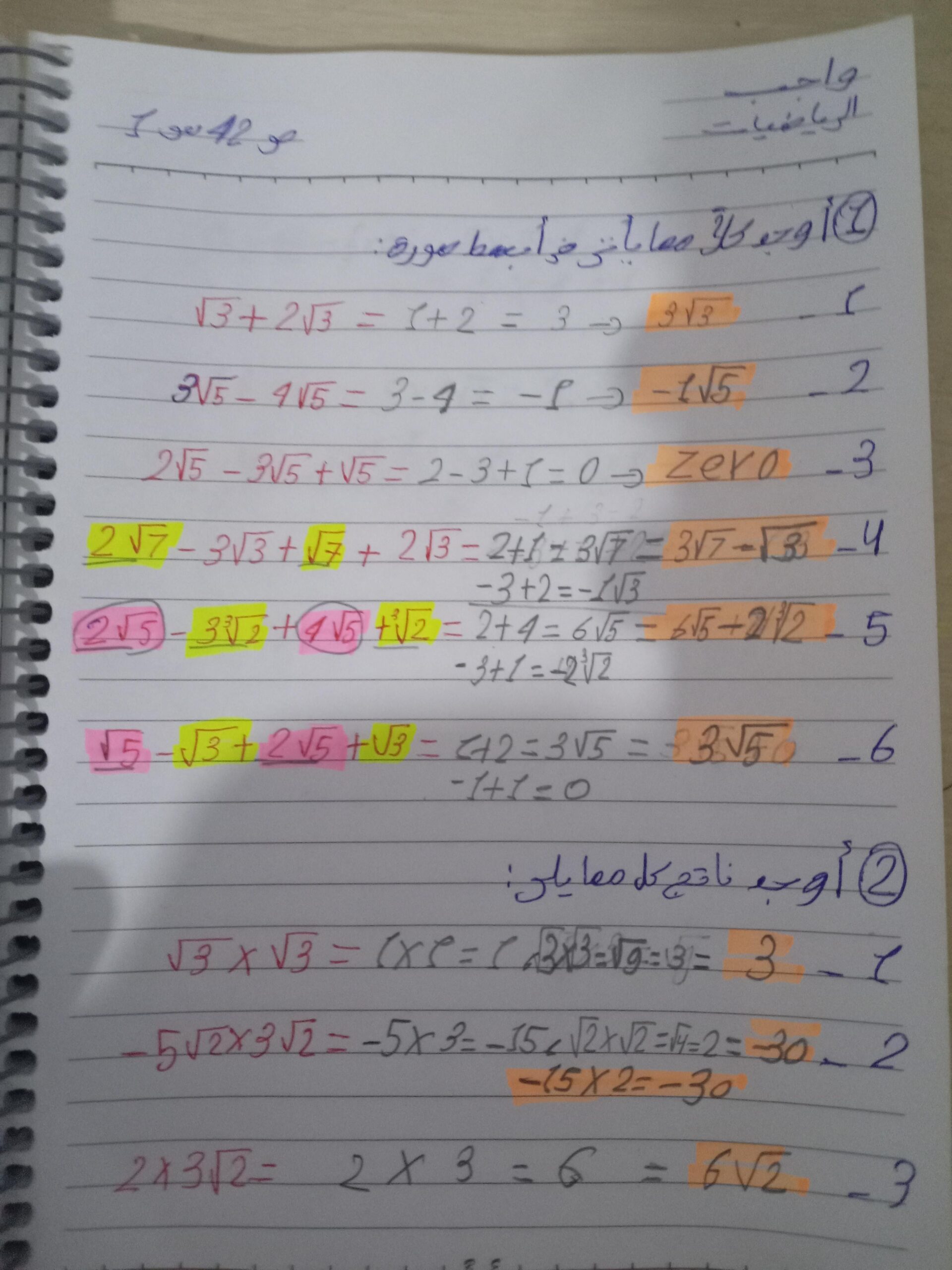 واجب الرياضيات. 📏🖋