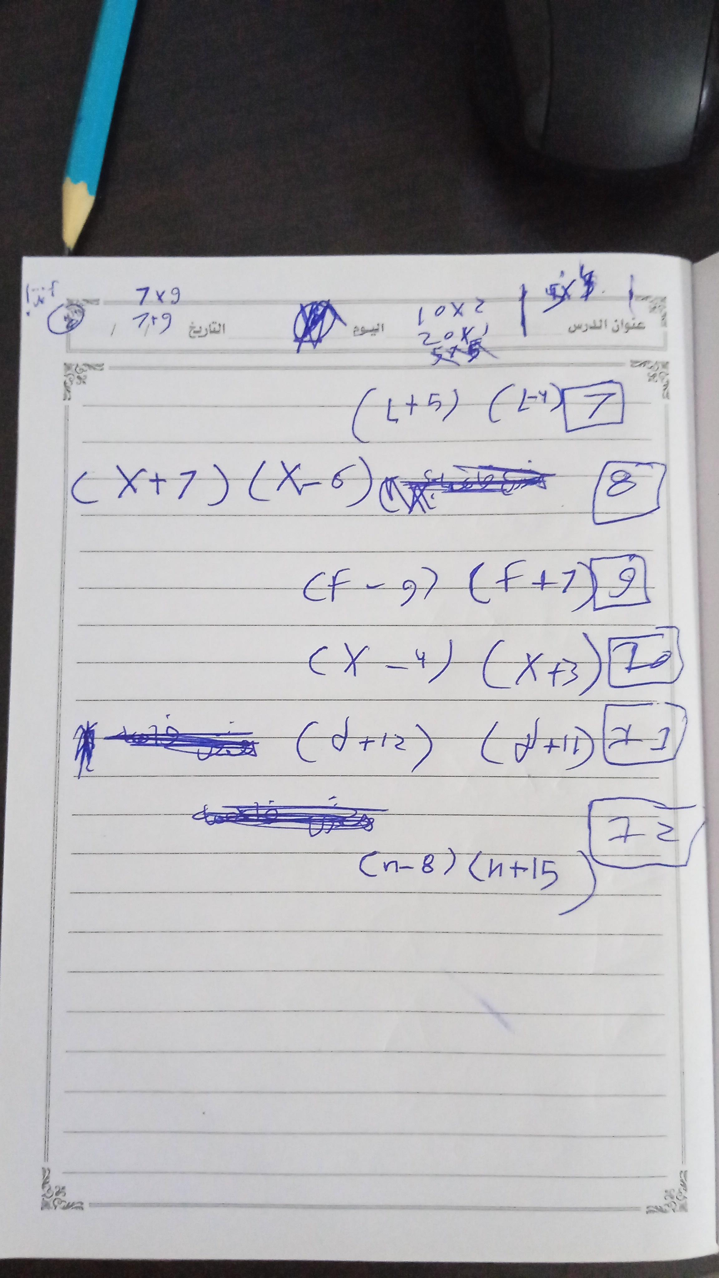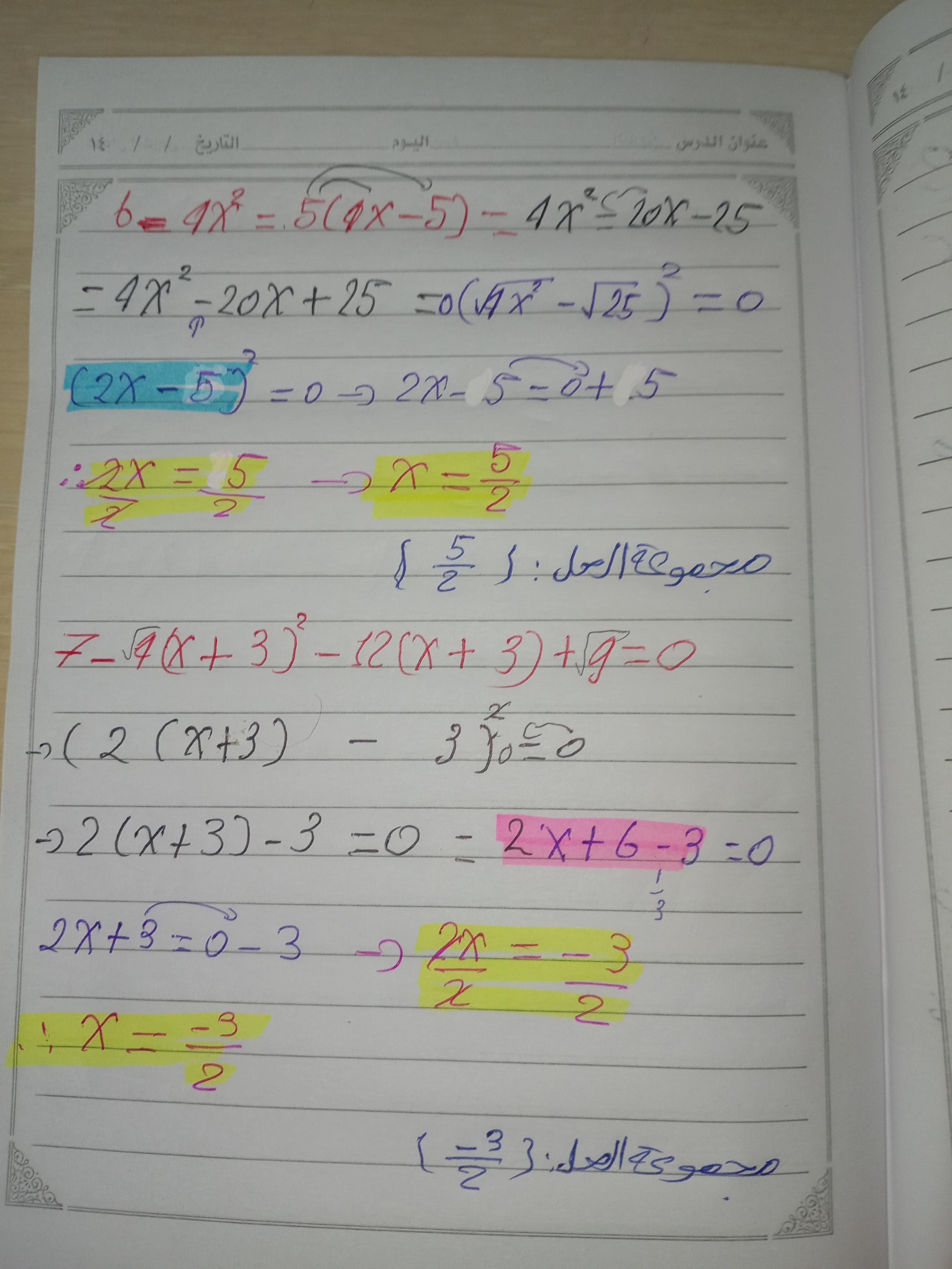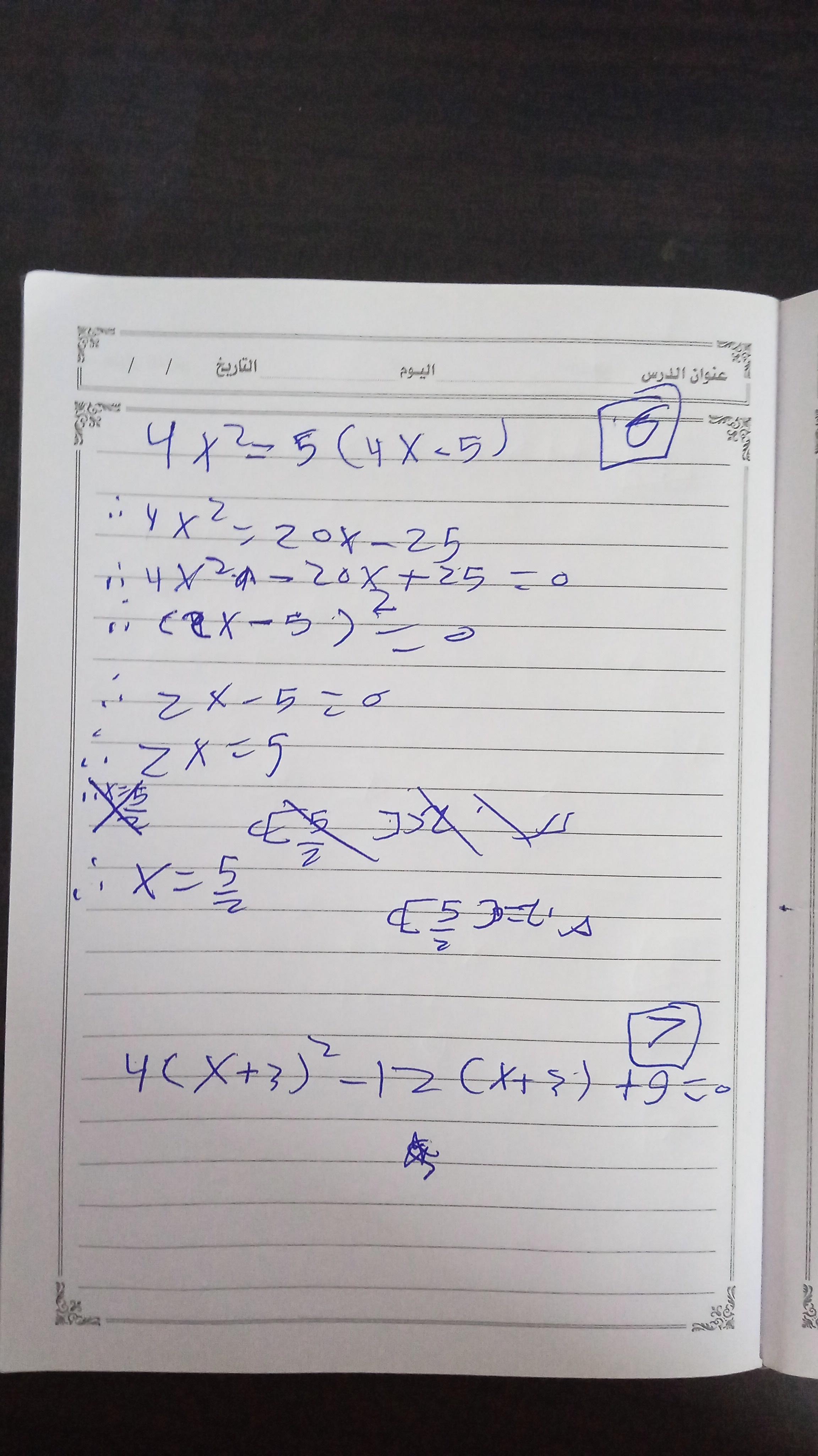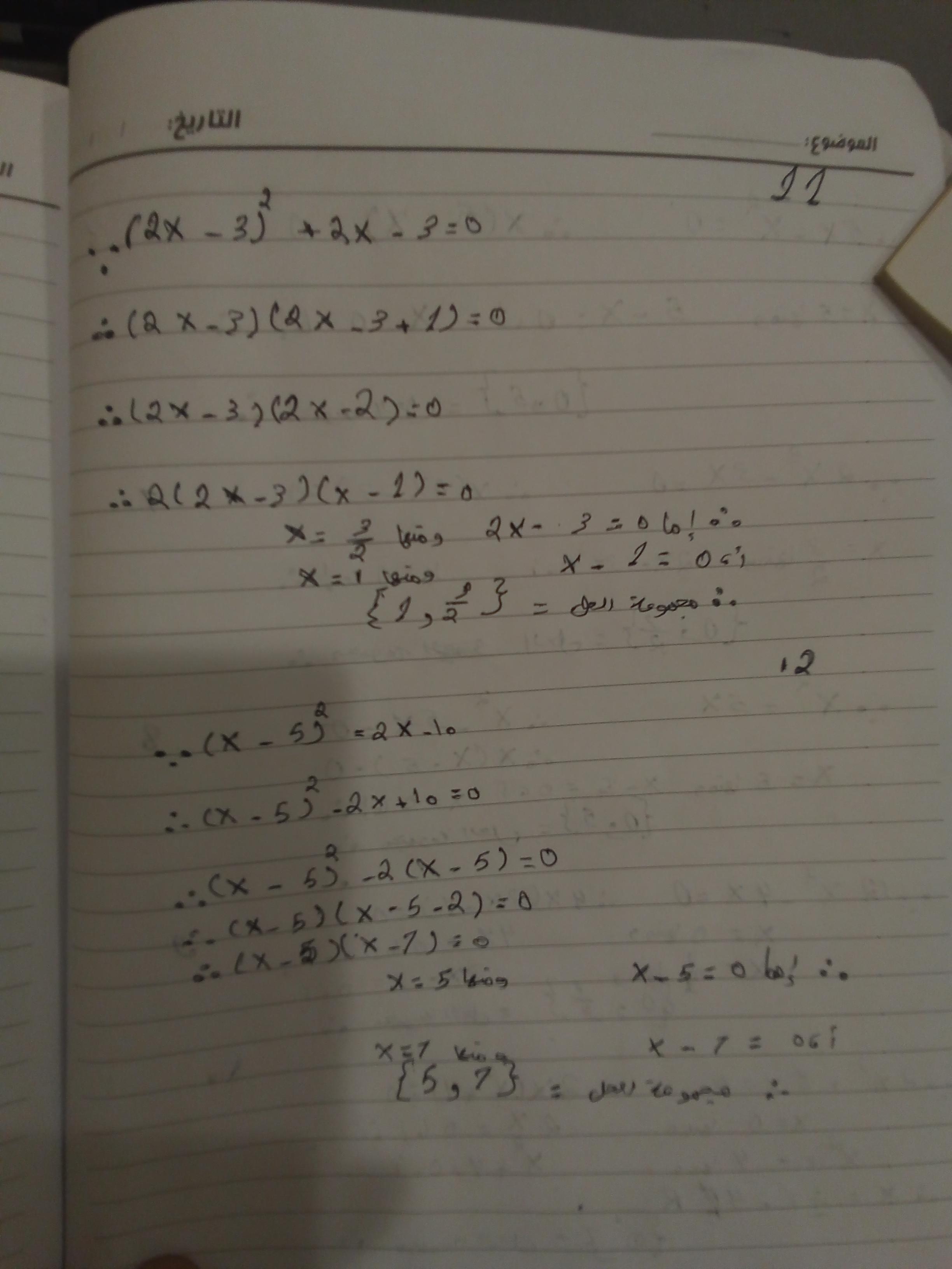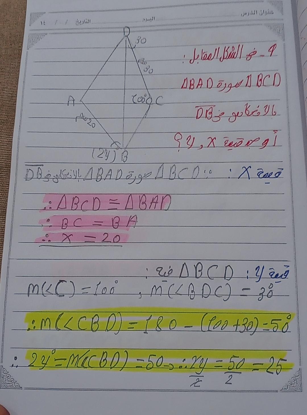 واجب الرياضيات. 📏🖋