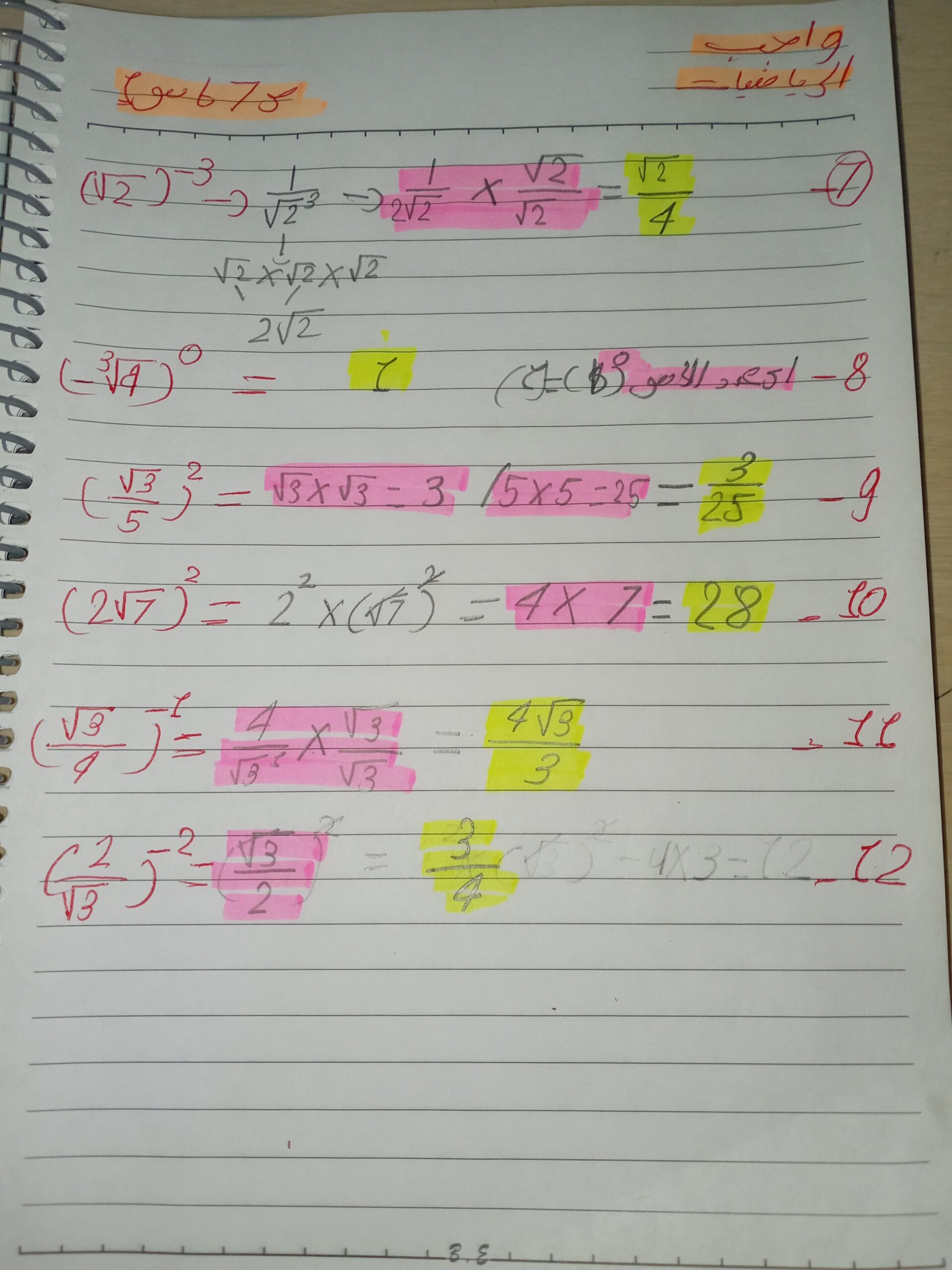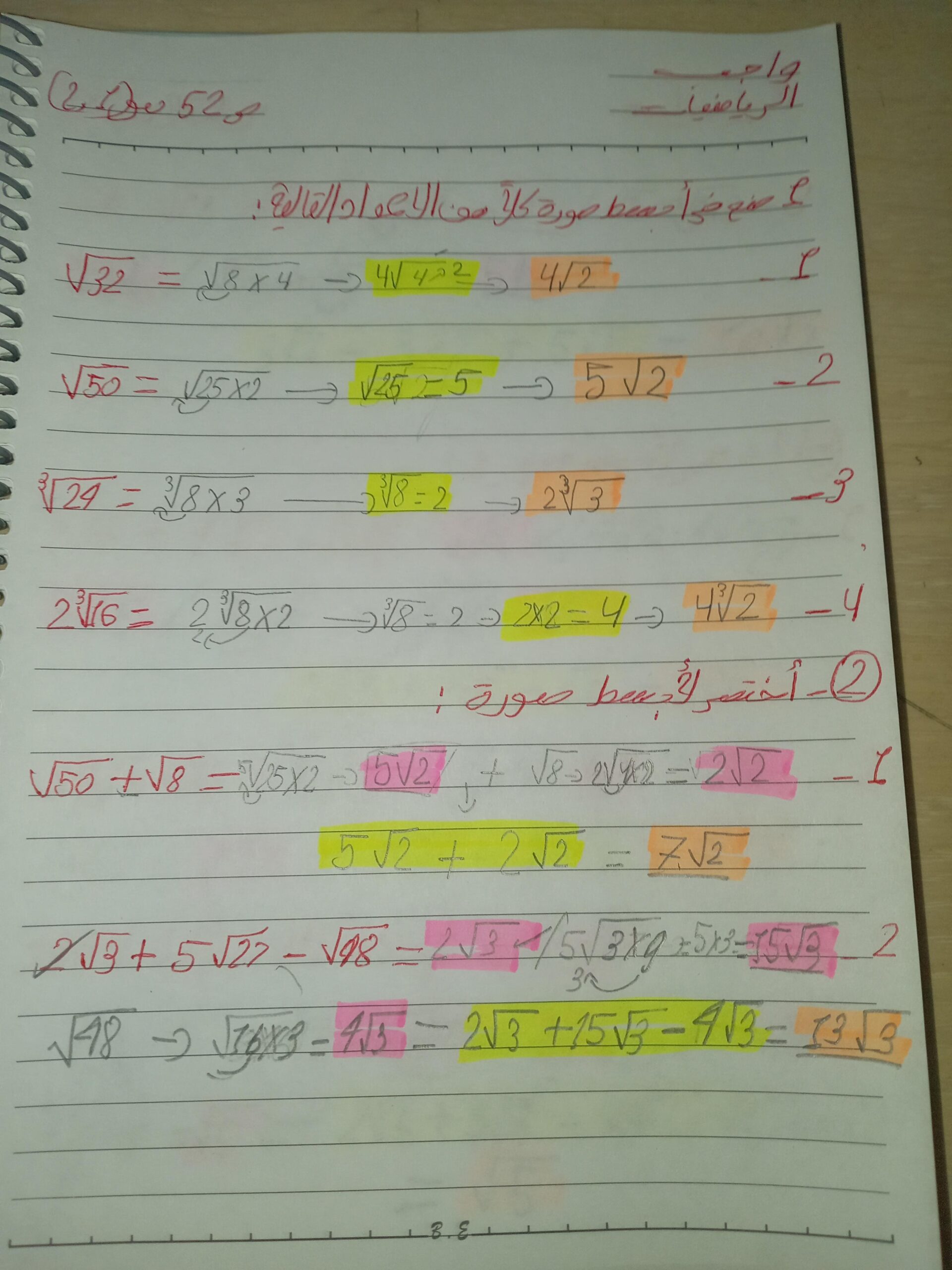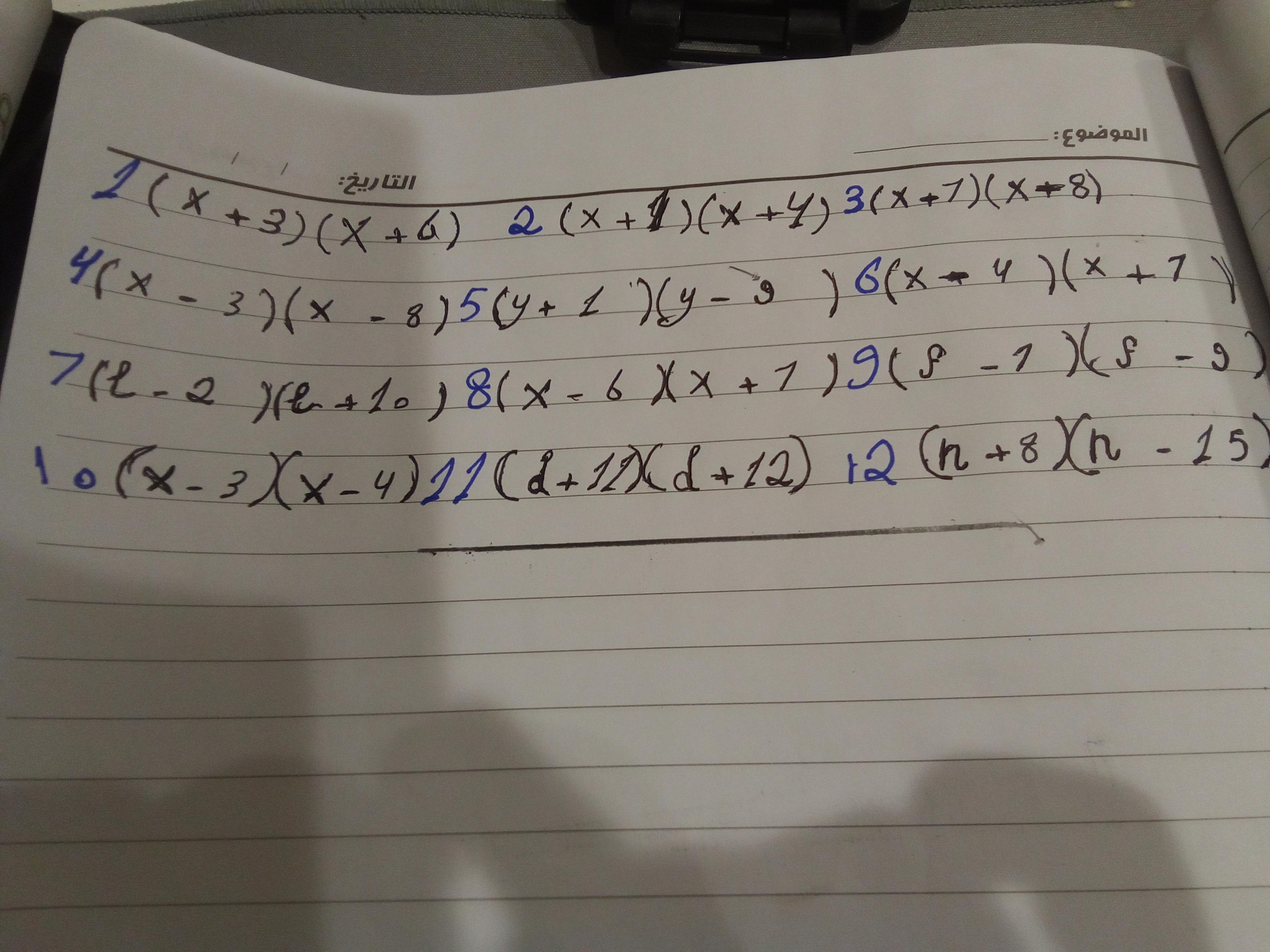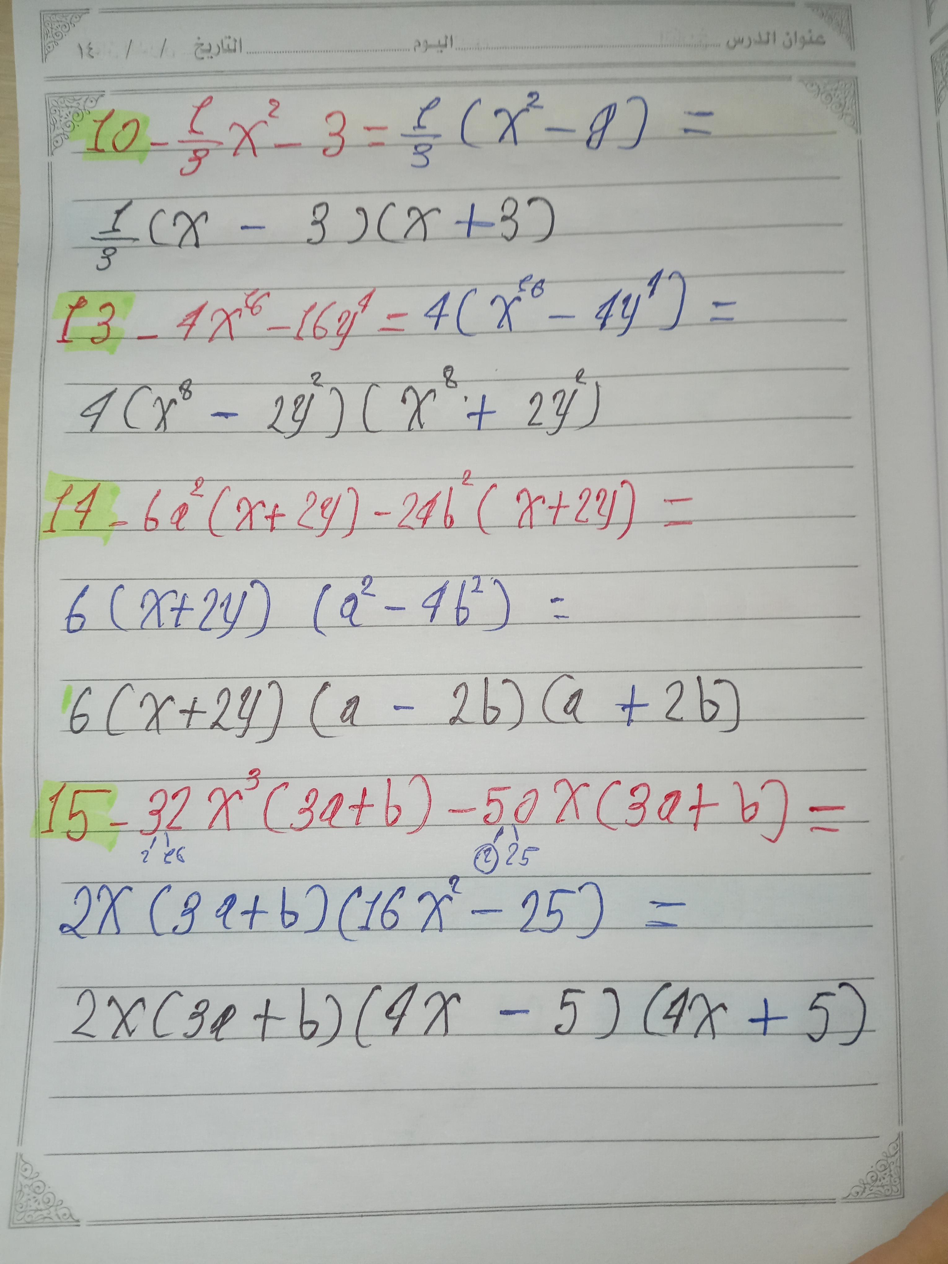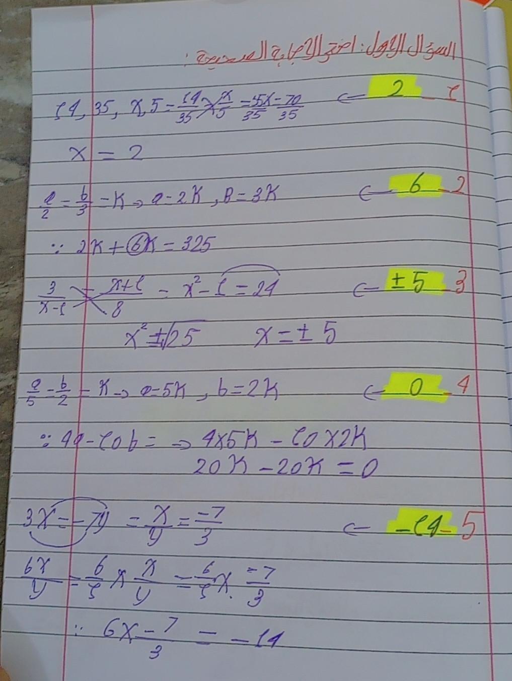 واجب الرياضيات. 📏🖋