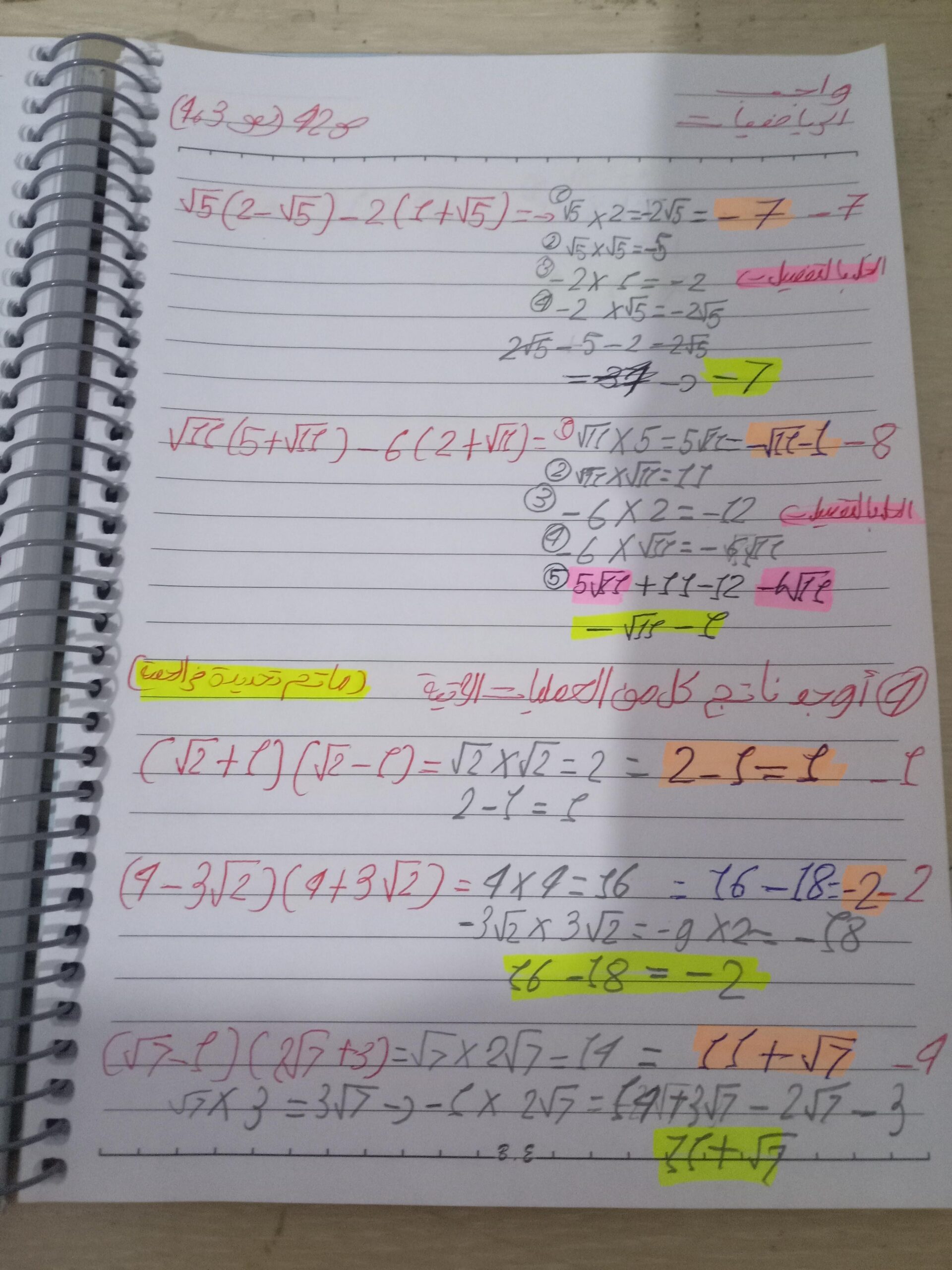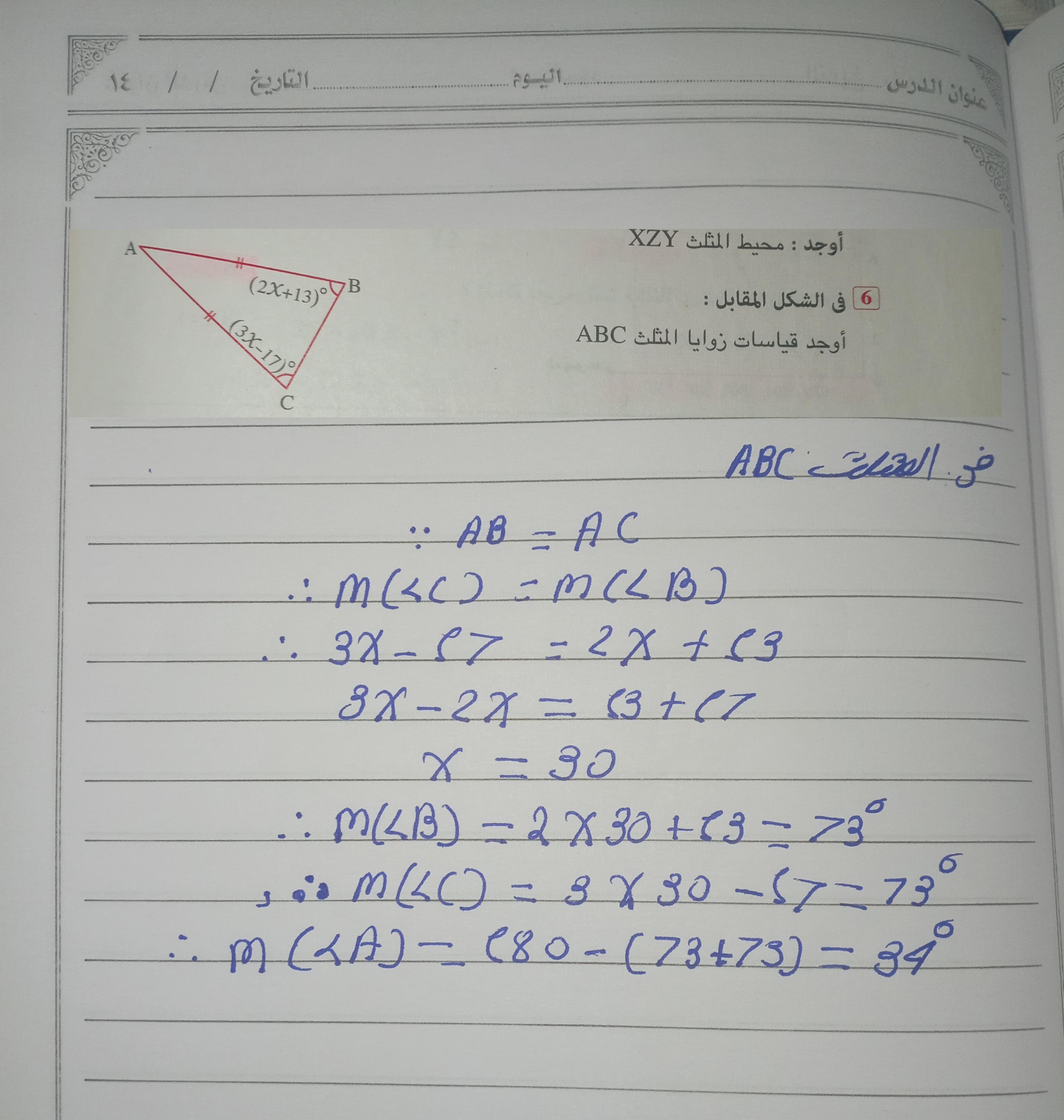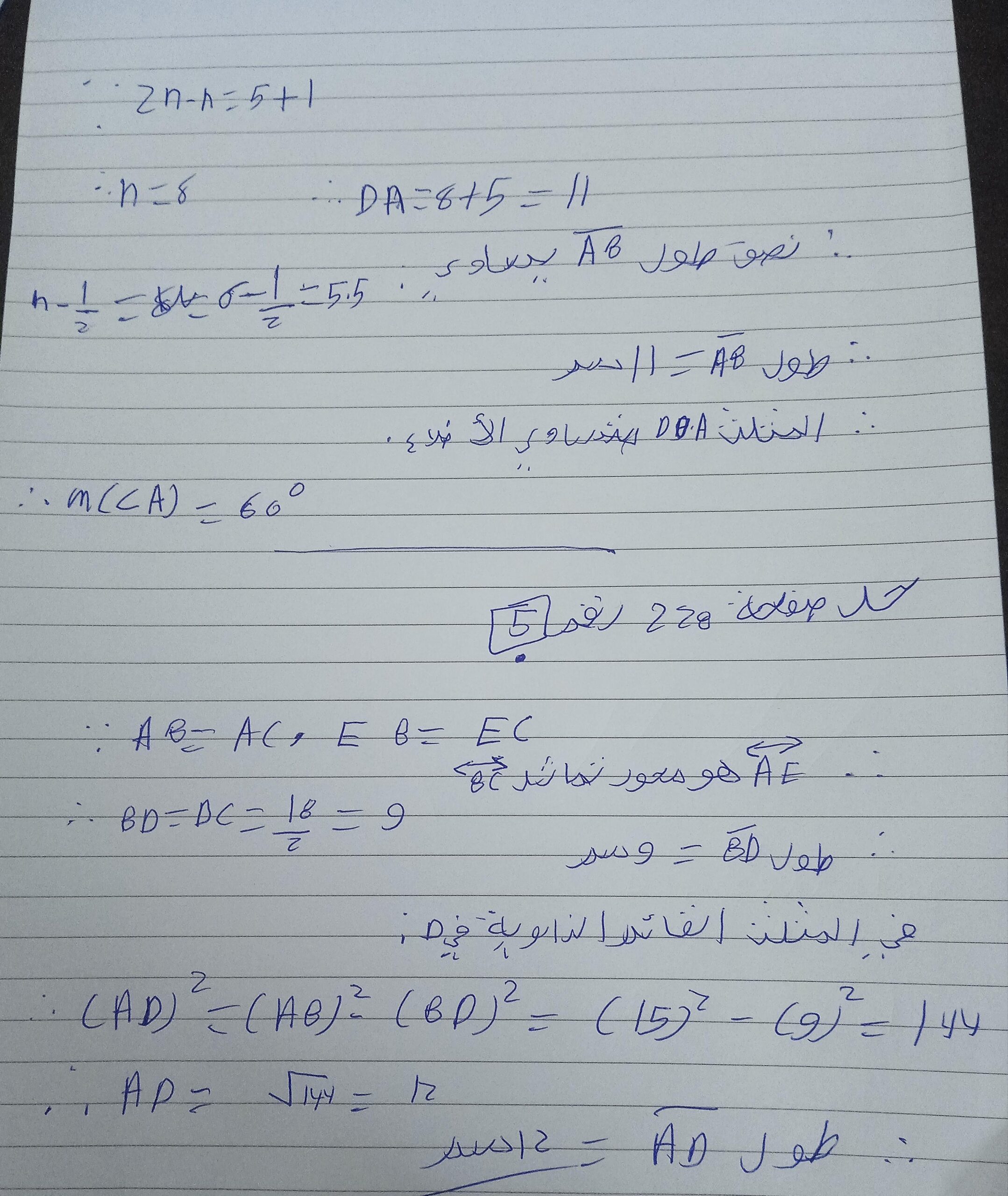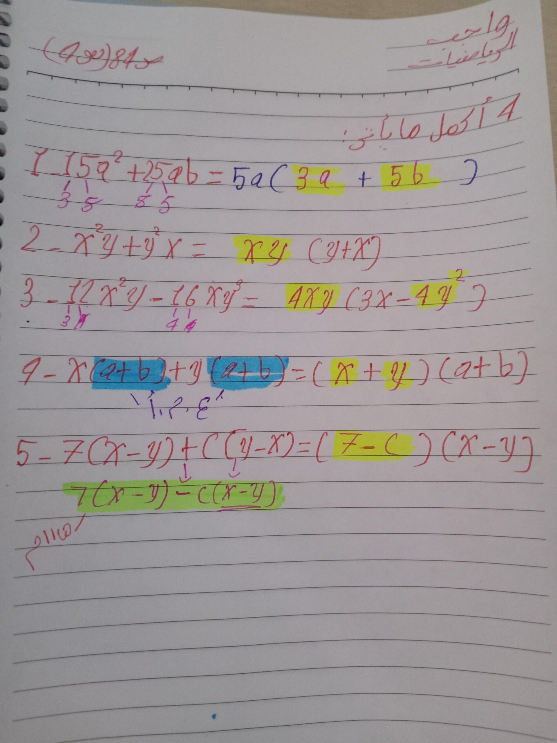 واجب الرياضيات. 📏🖋