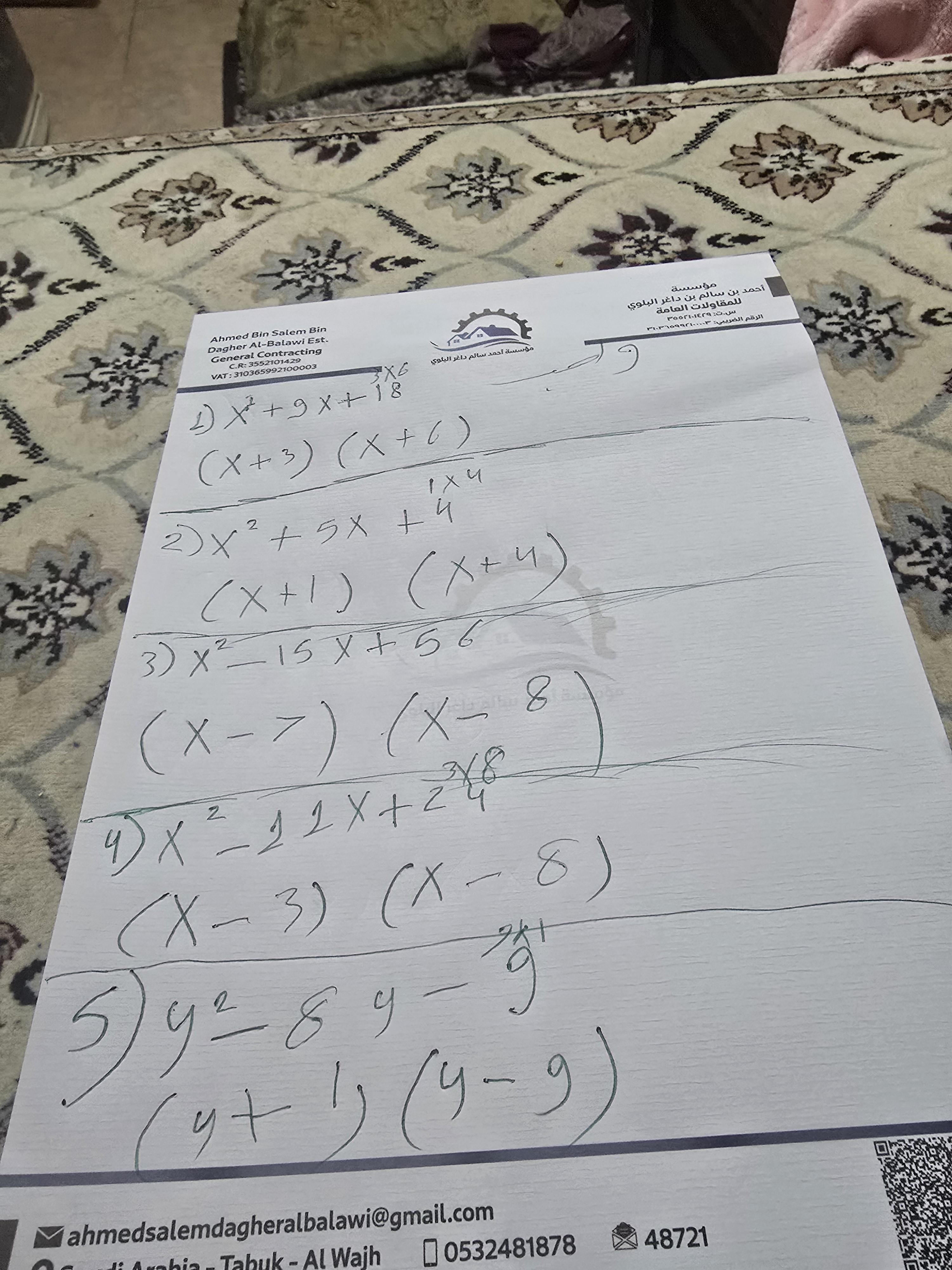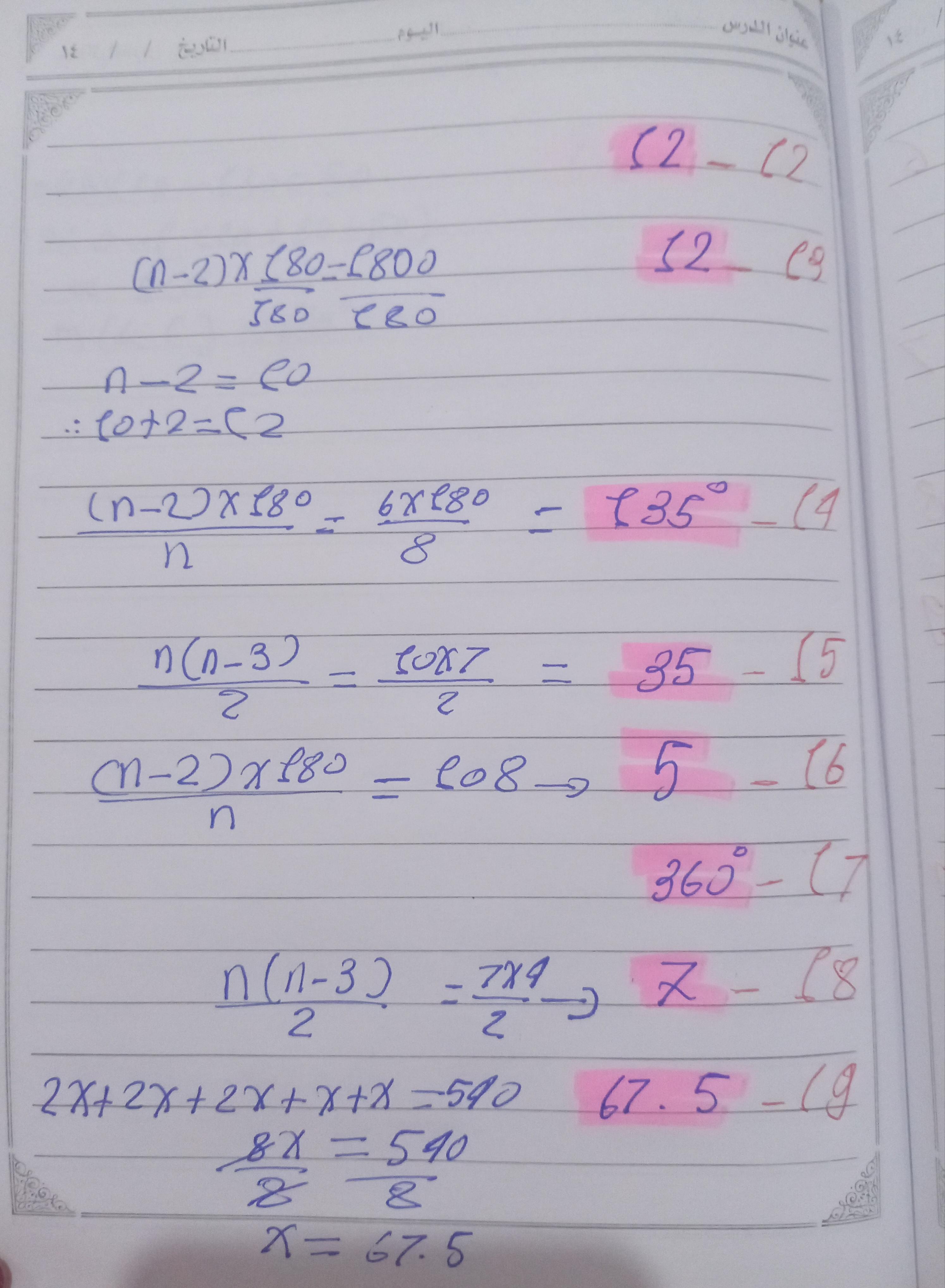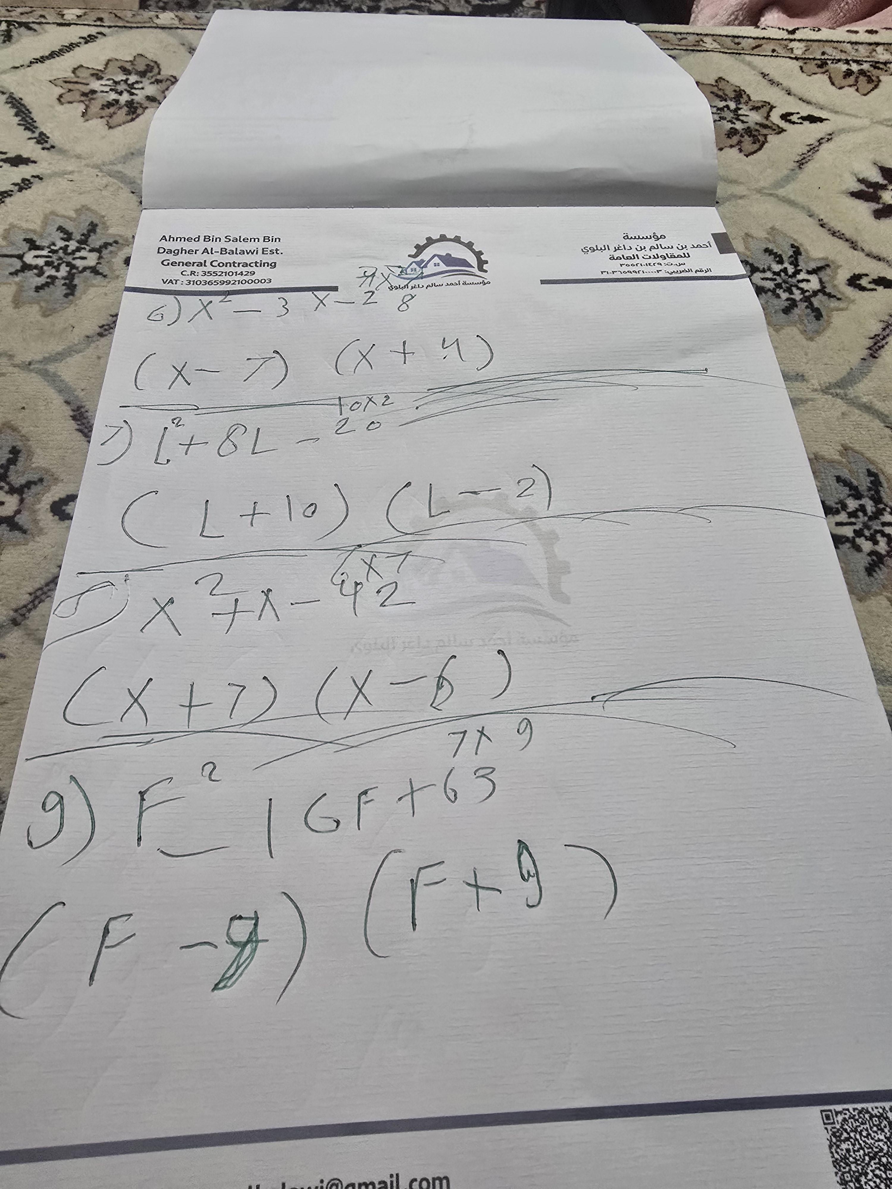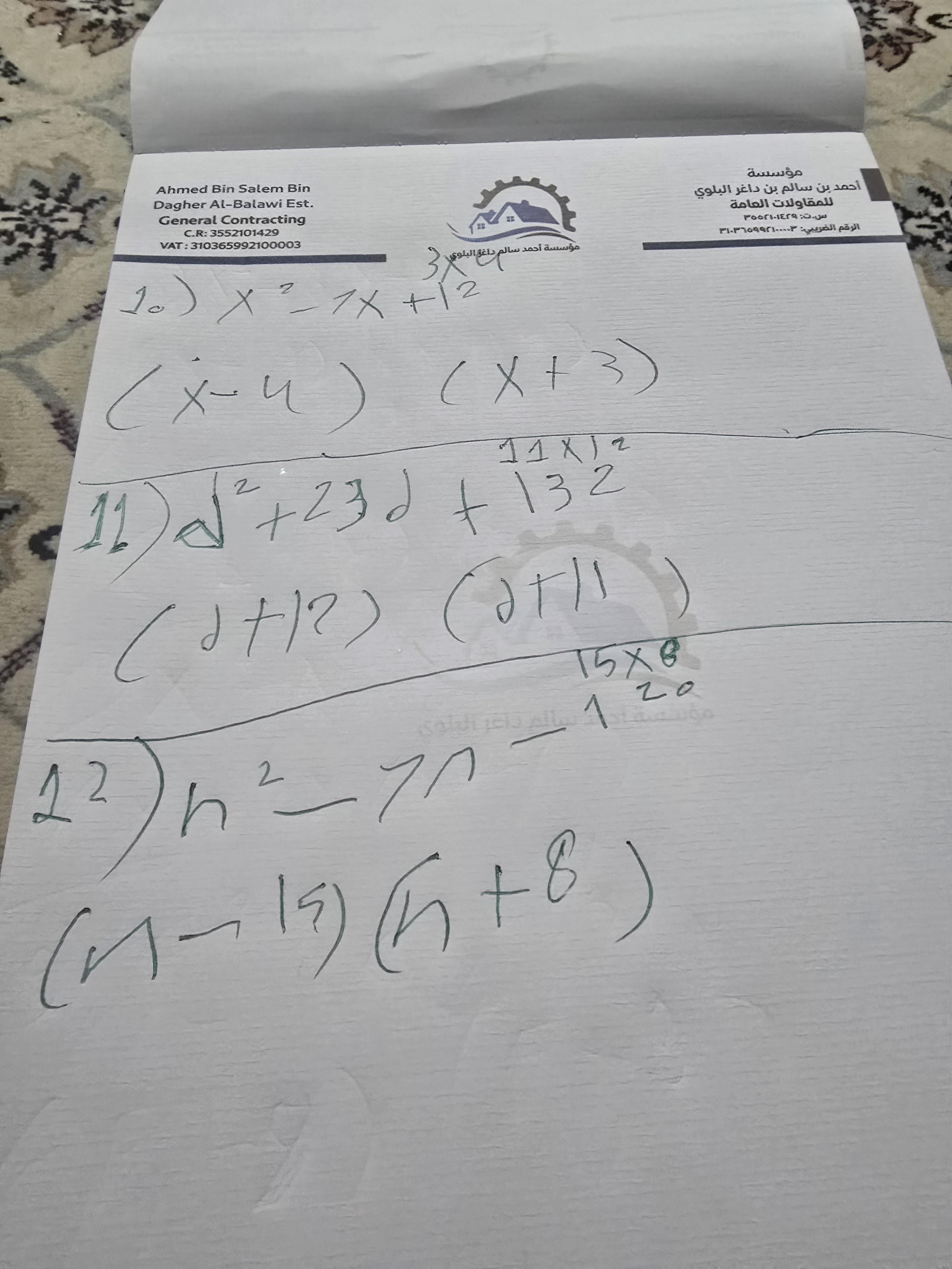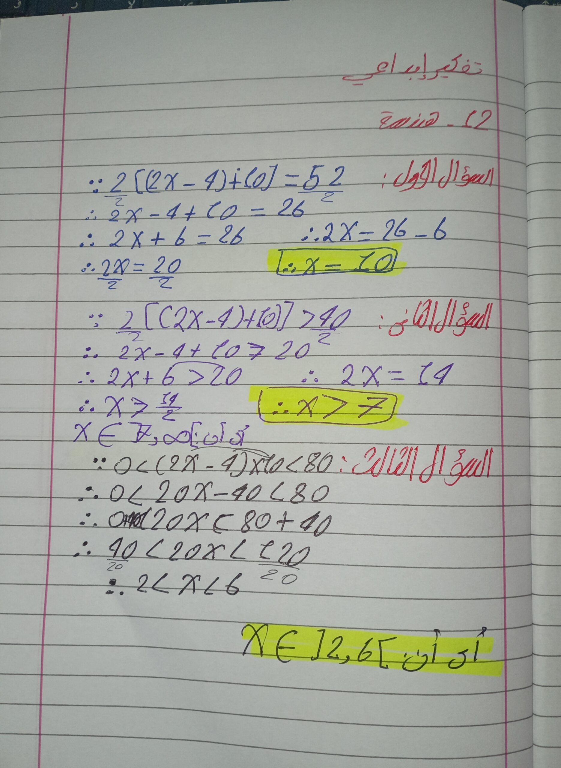 واجب الرياضيات. 📏🖋