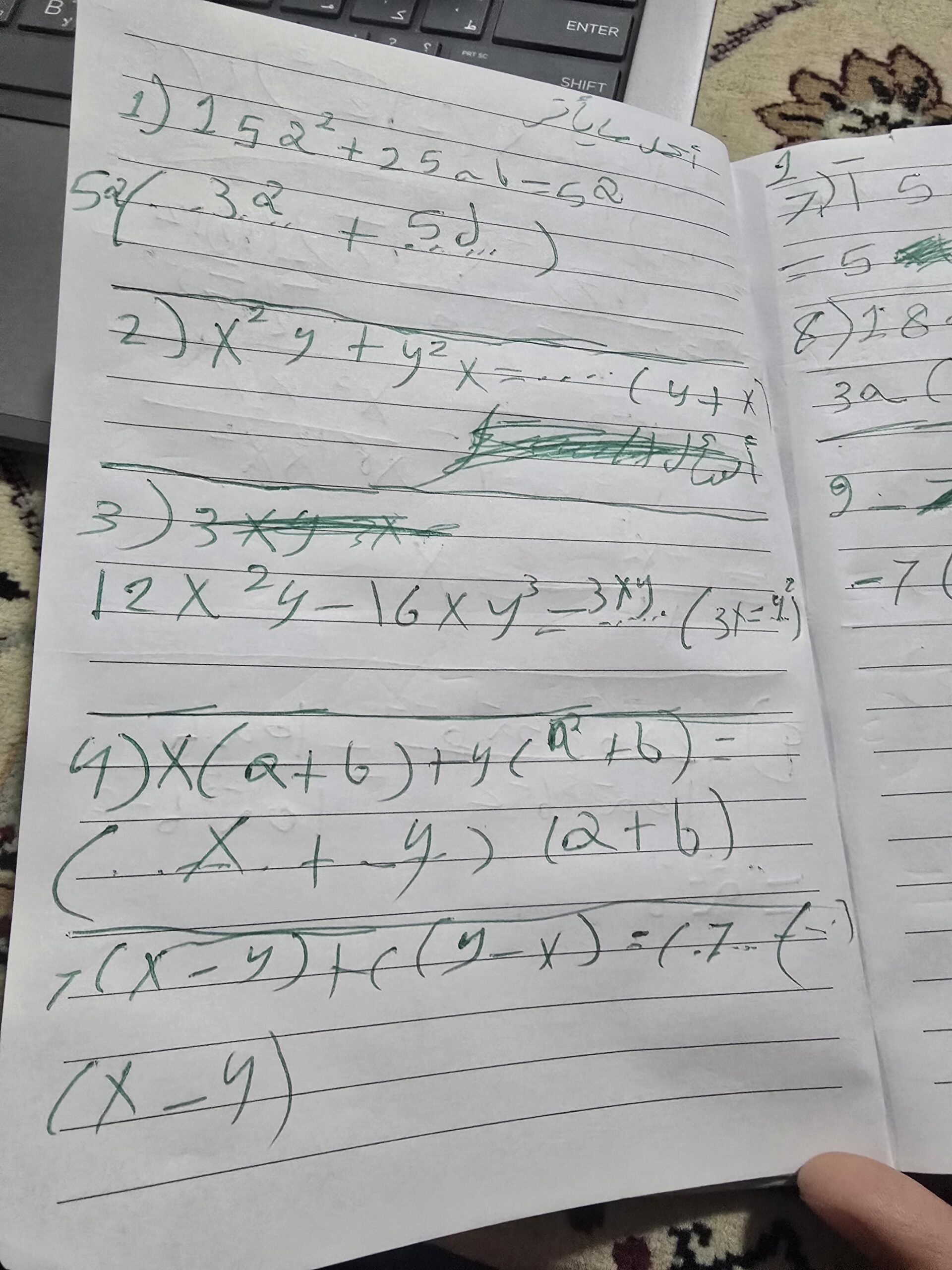 3. *$x^2 – 15x + 56$*: $(x – 7)(x – 8)$
