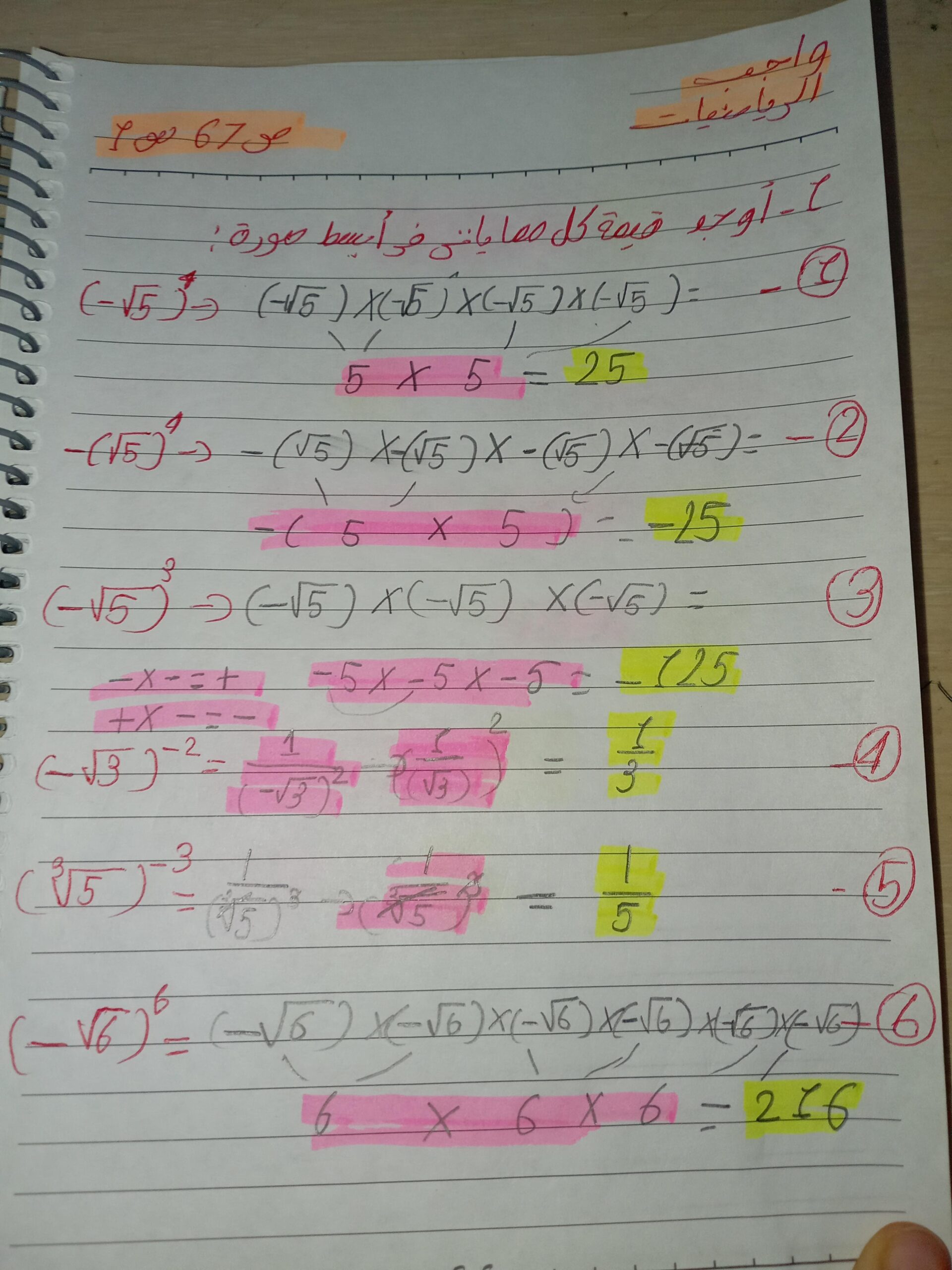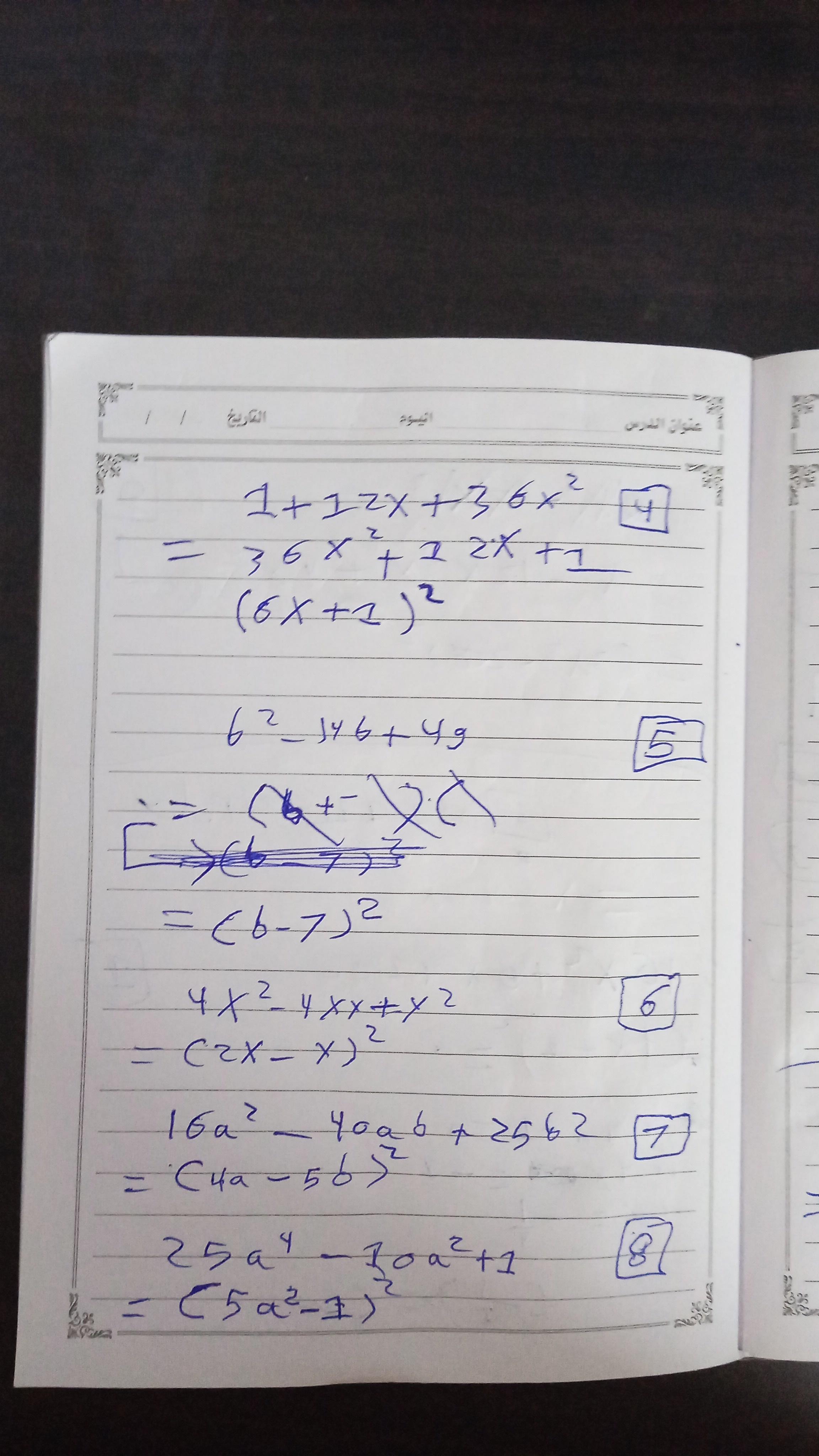 الواجب ص167 كلها و ص 168 مثال 6 و مثال 7