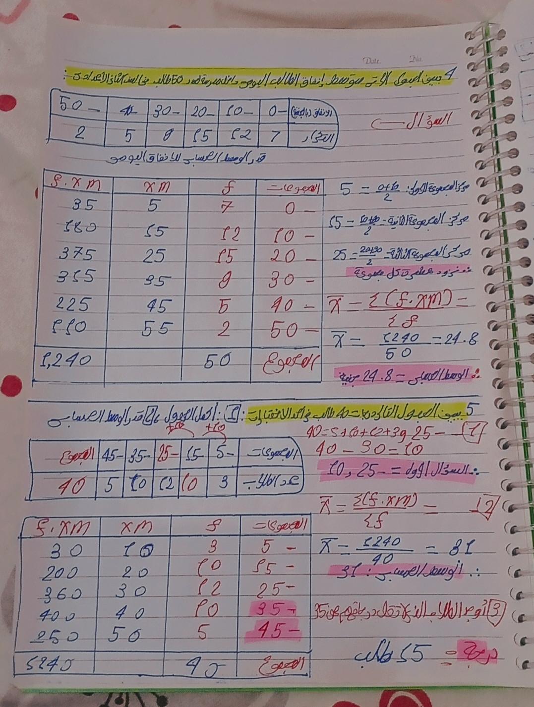 واجب الرياضيات 🧮✨.