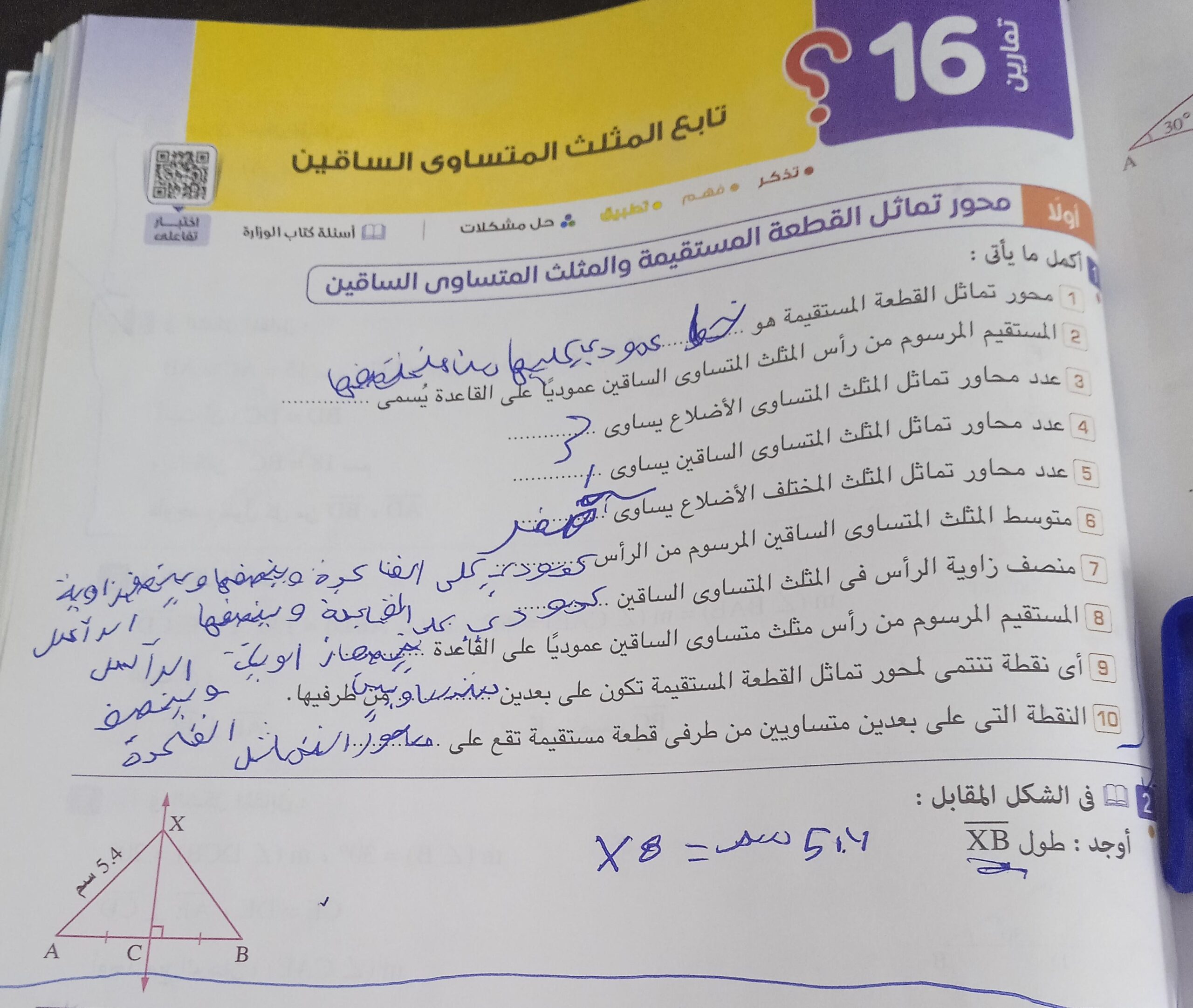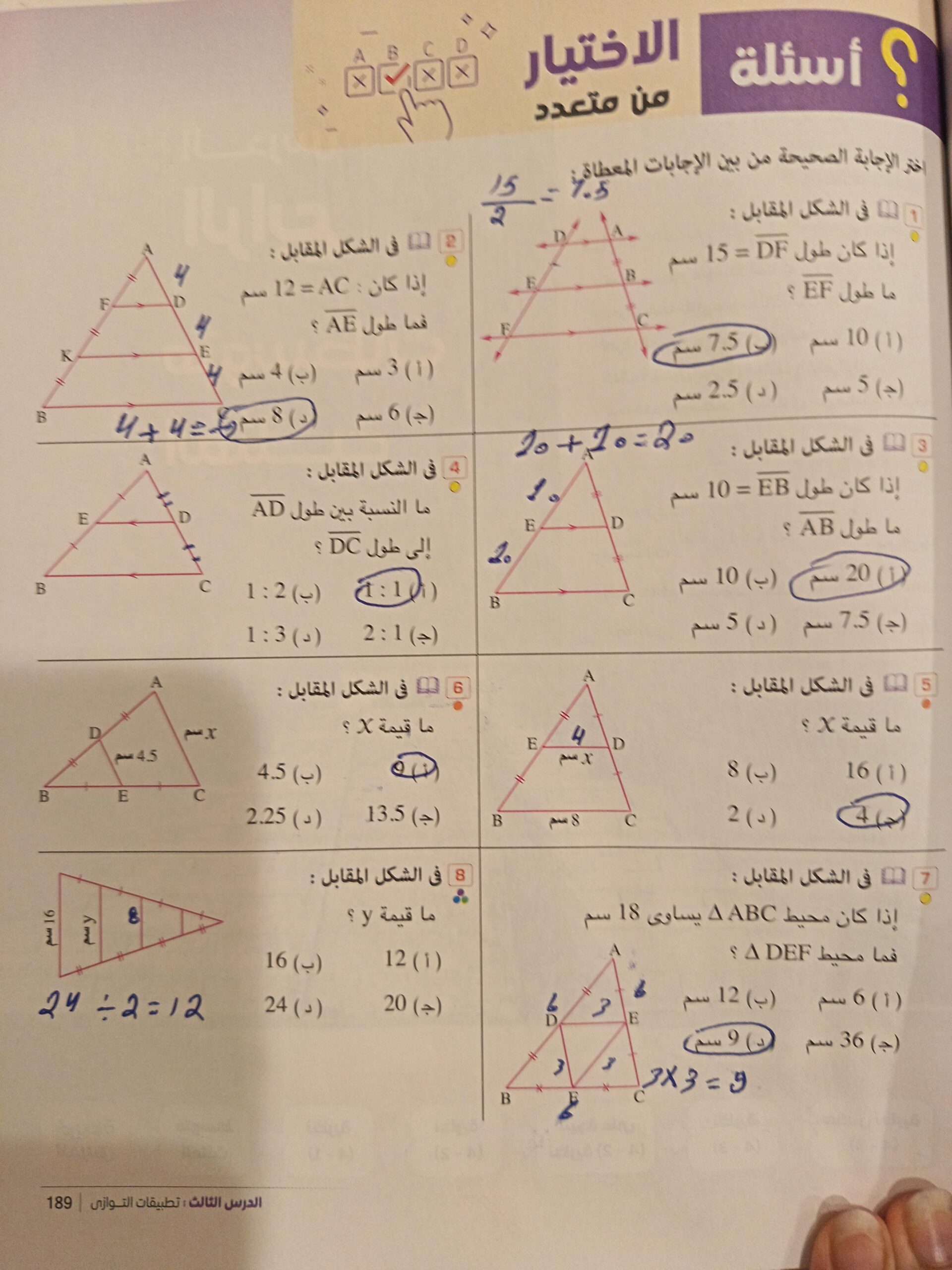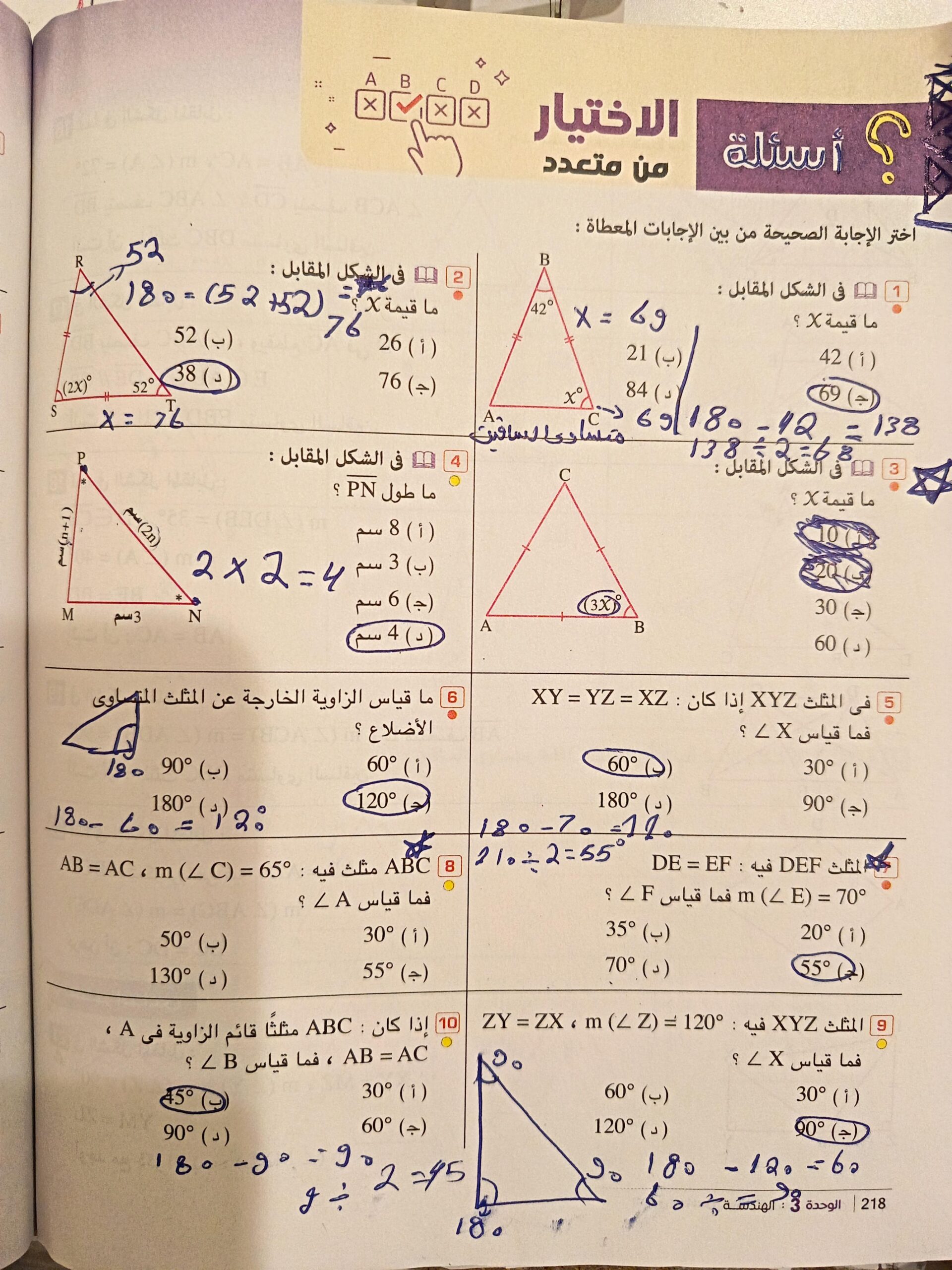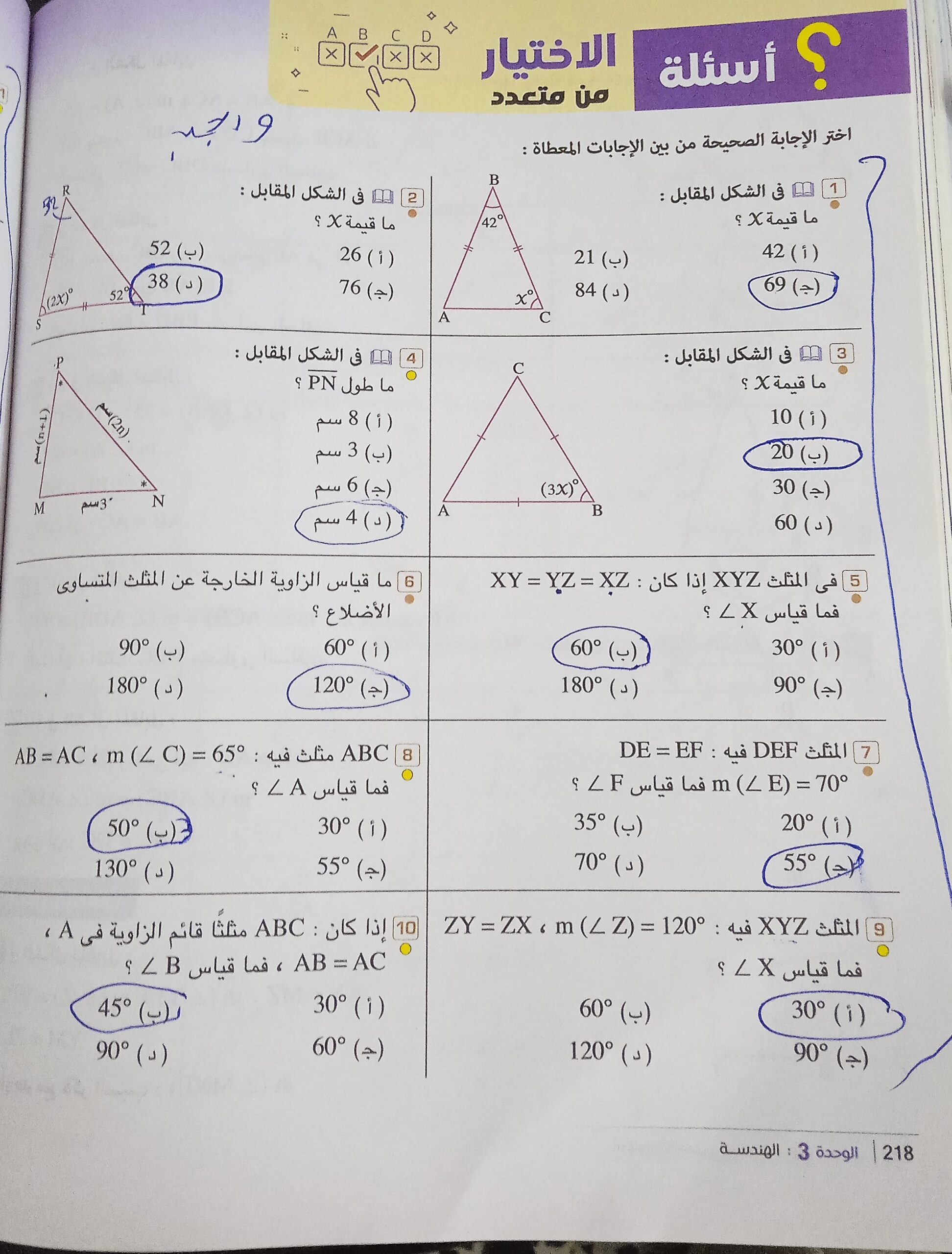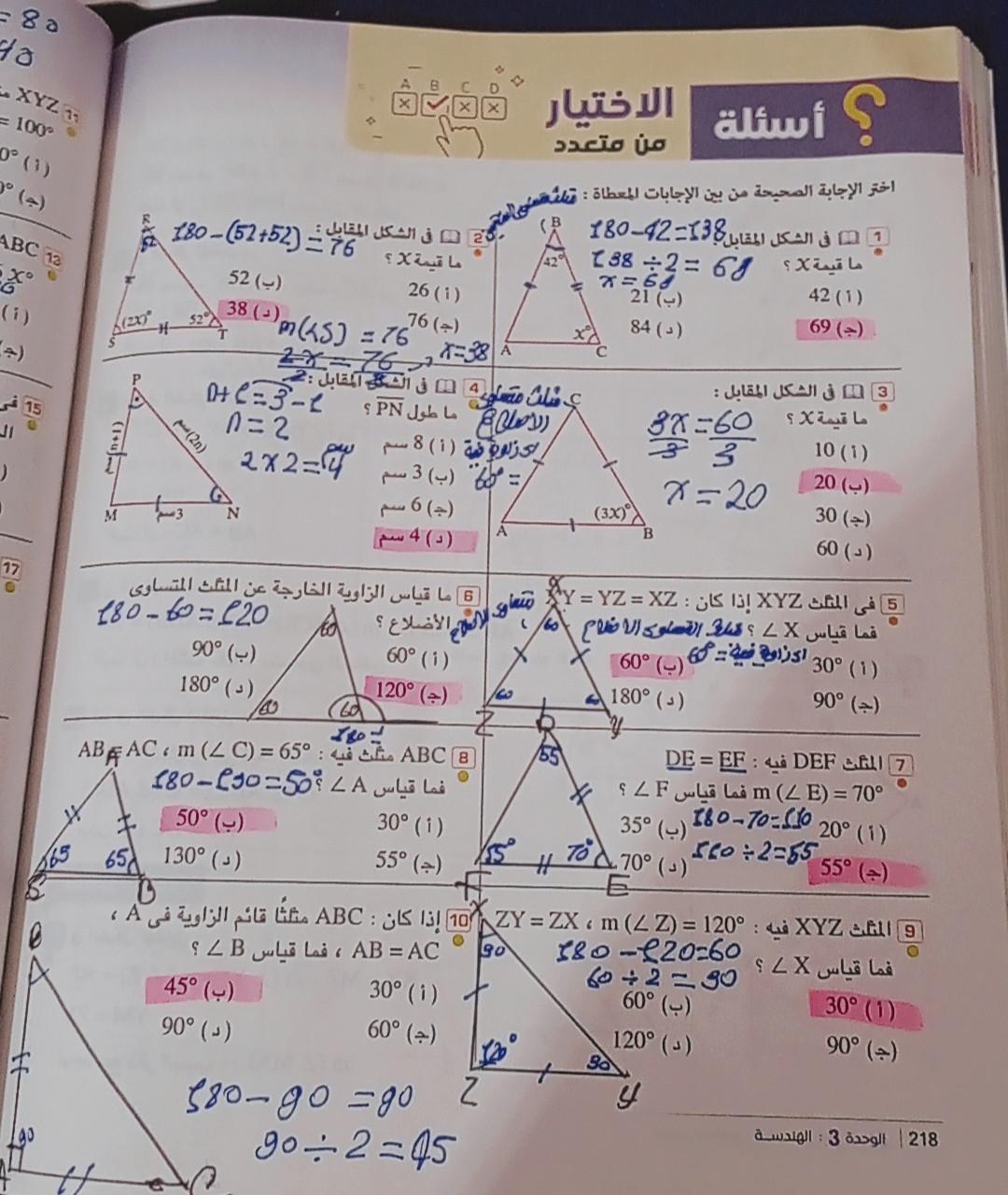 10 أوجد قيمت x