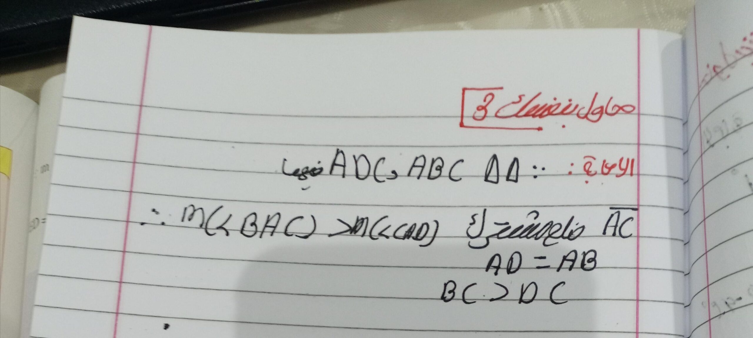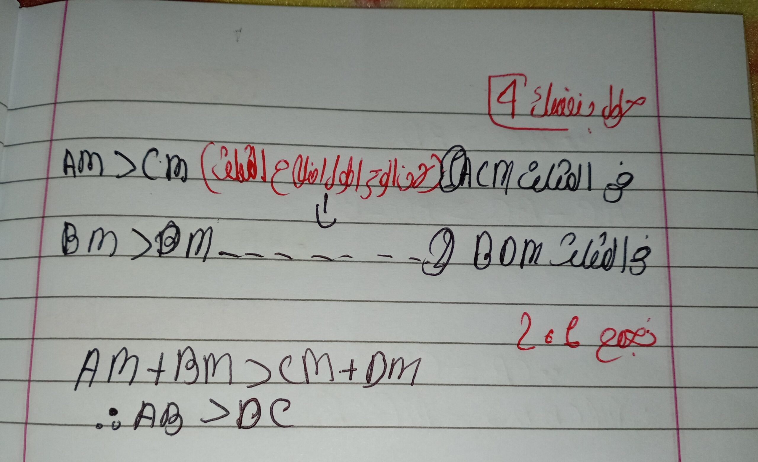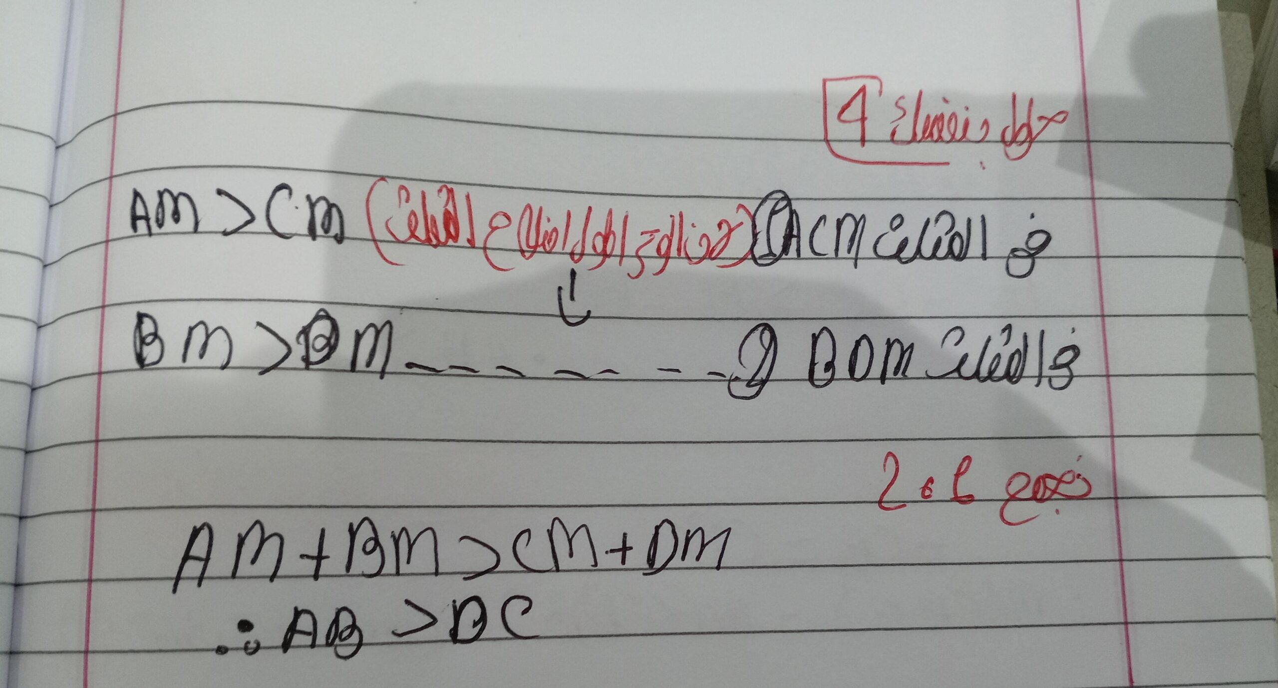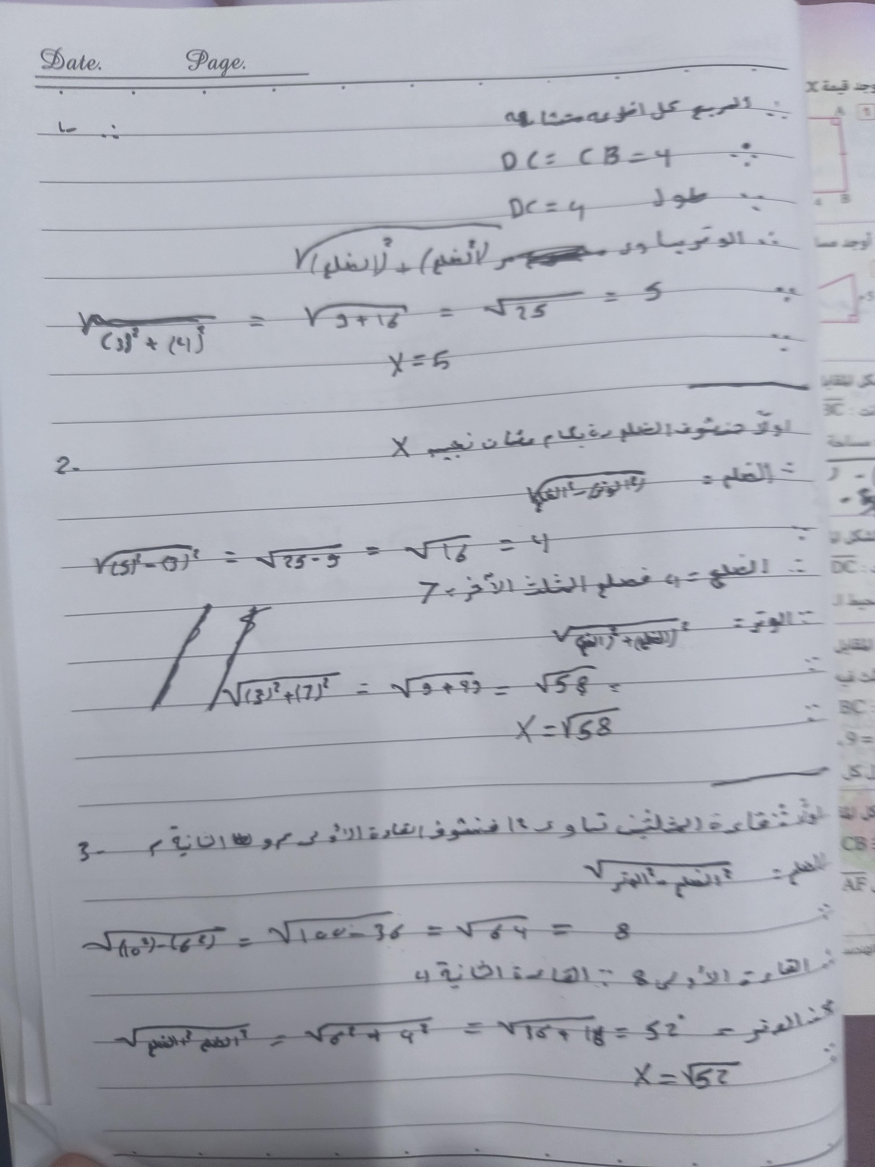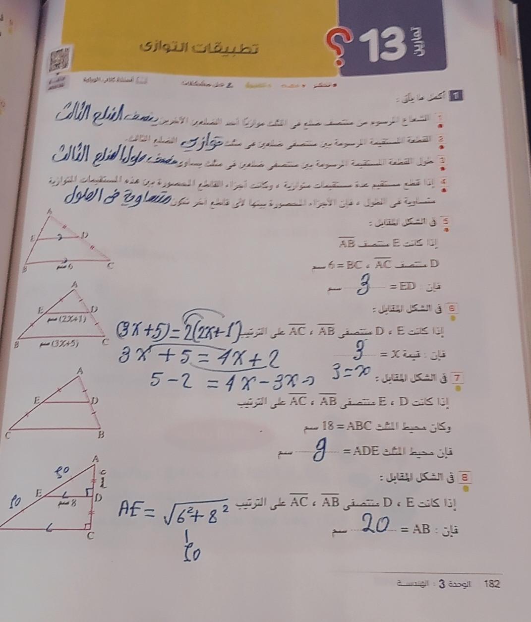 تم حل واجب الرياضيات الاختياري كامل لنظرية فيثاغورس وعكسها ومتباينتها