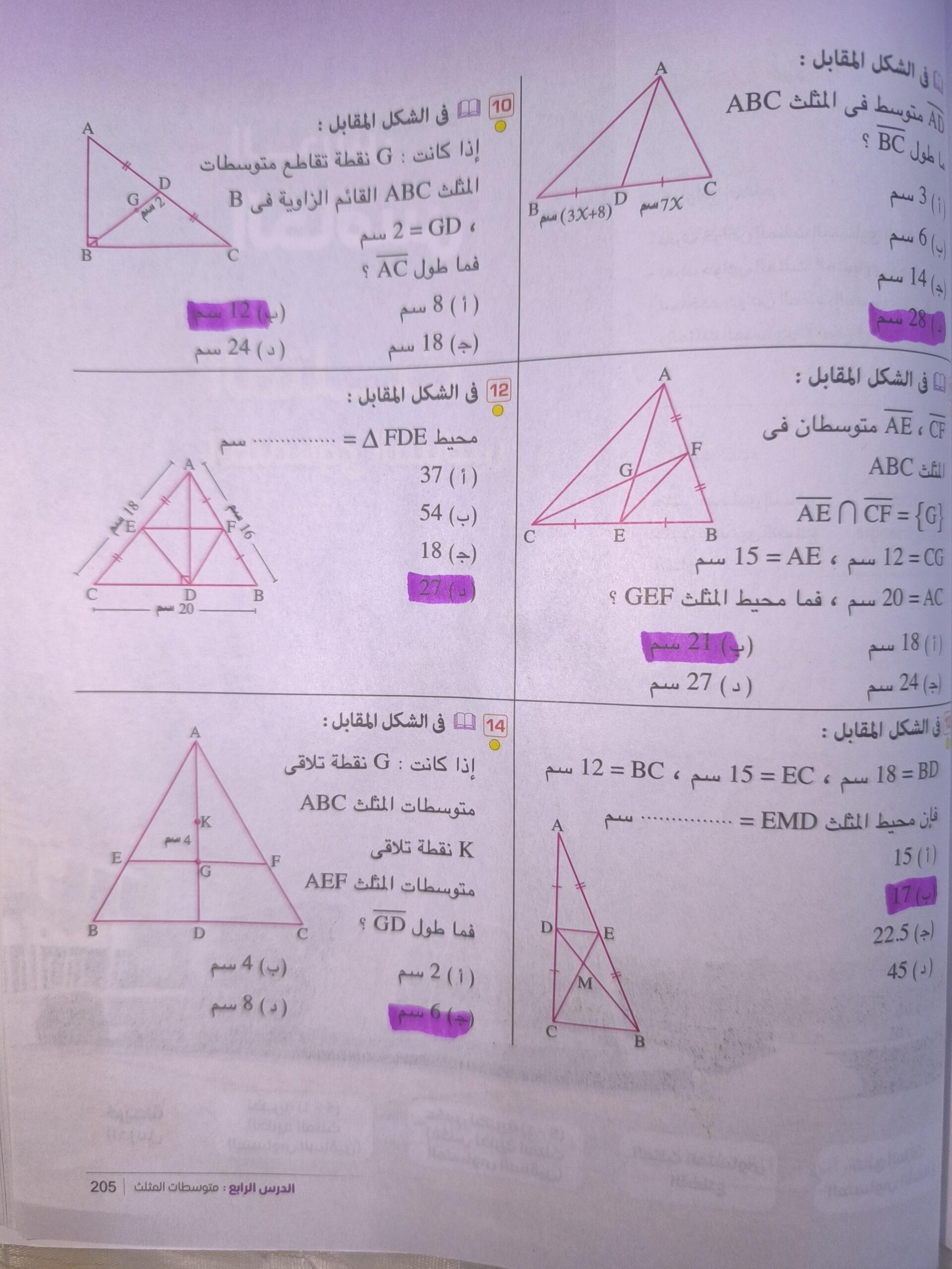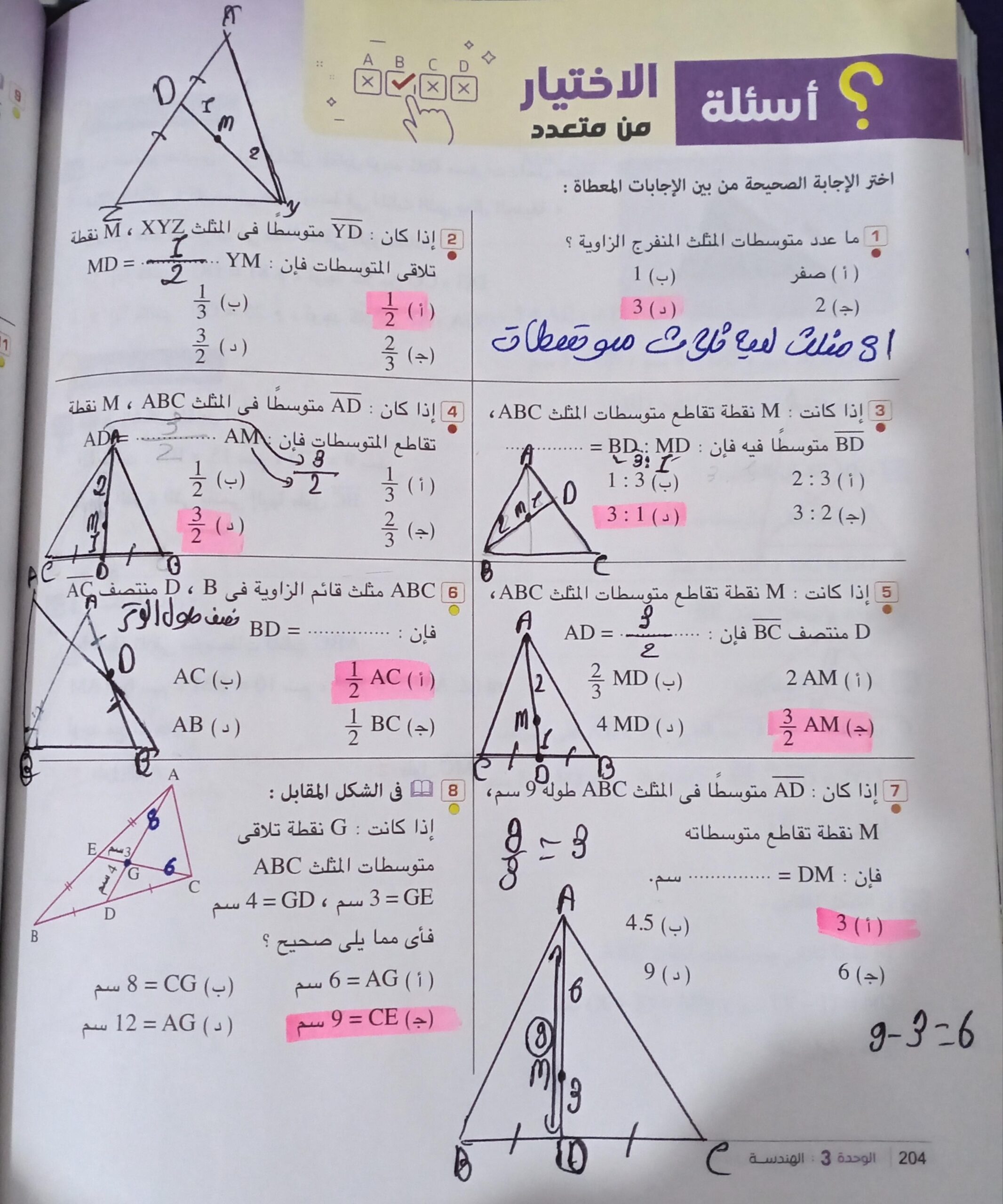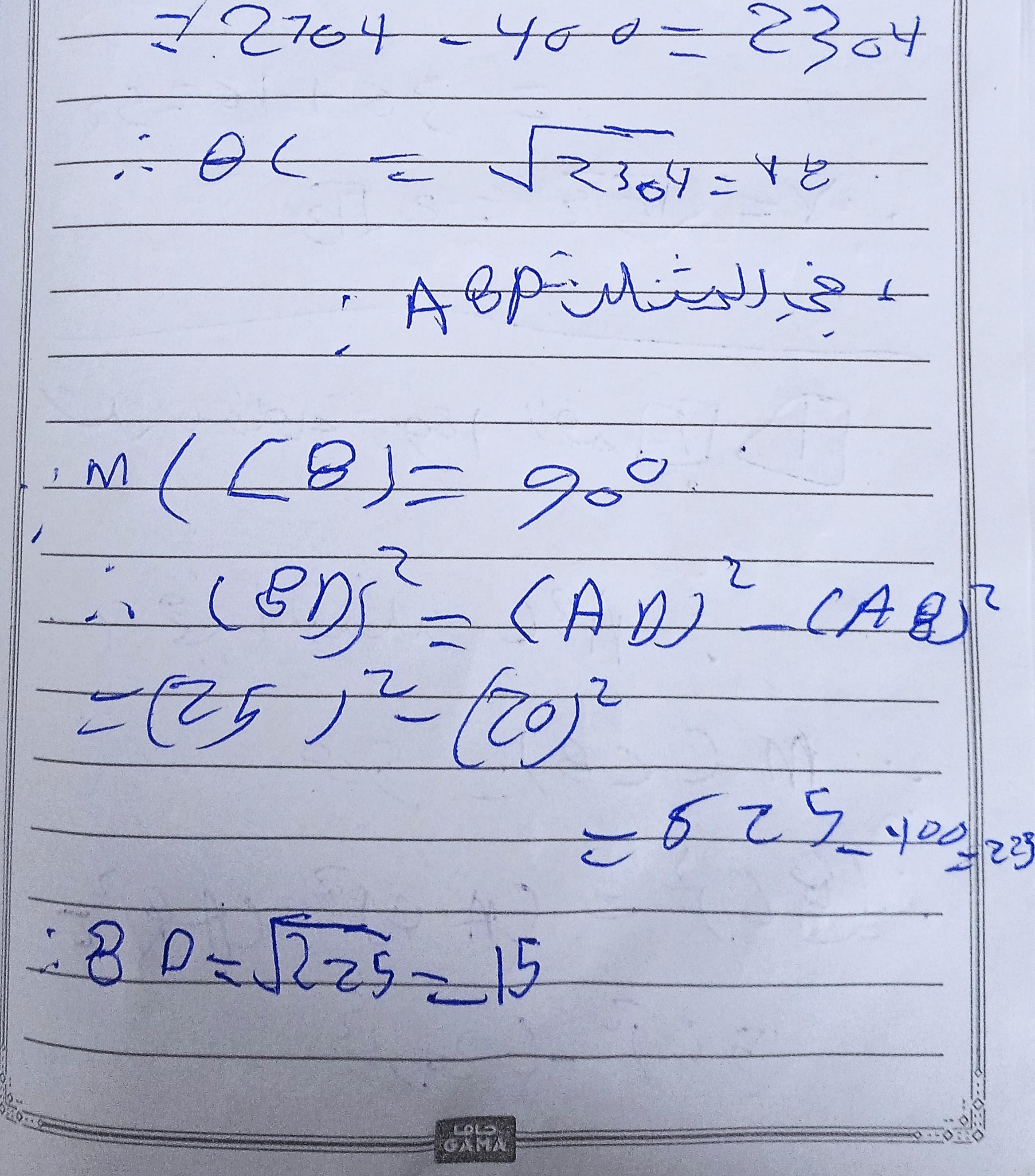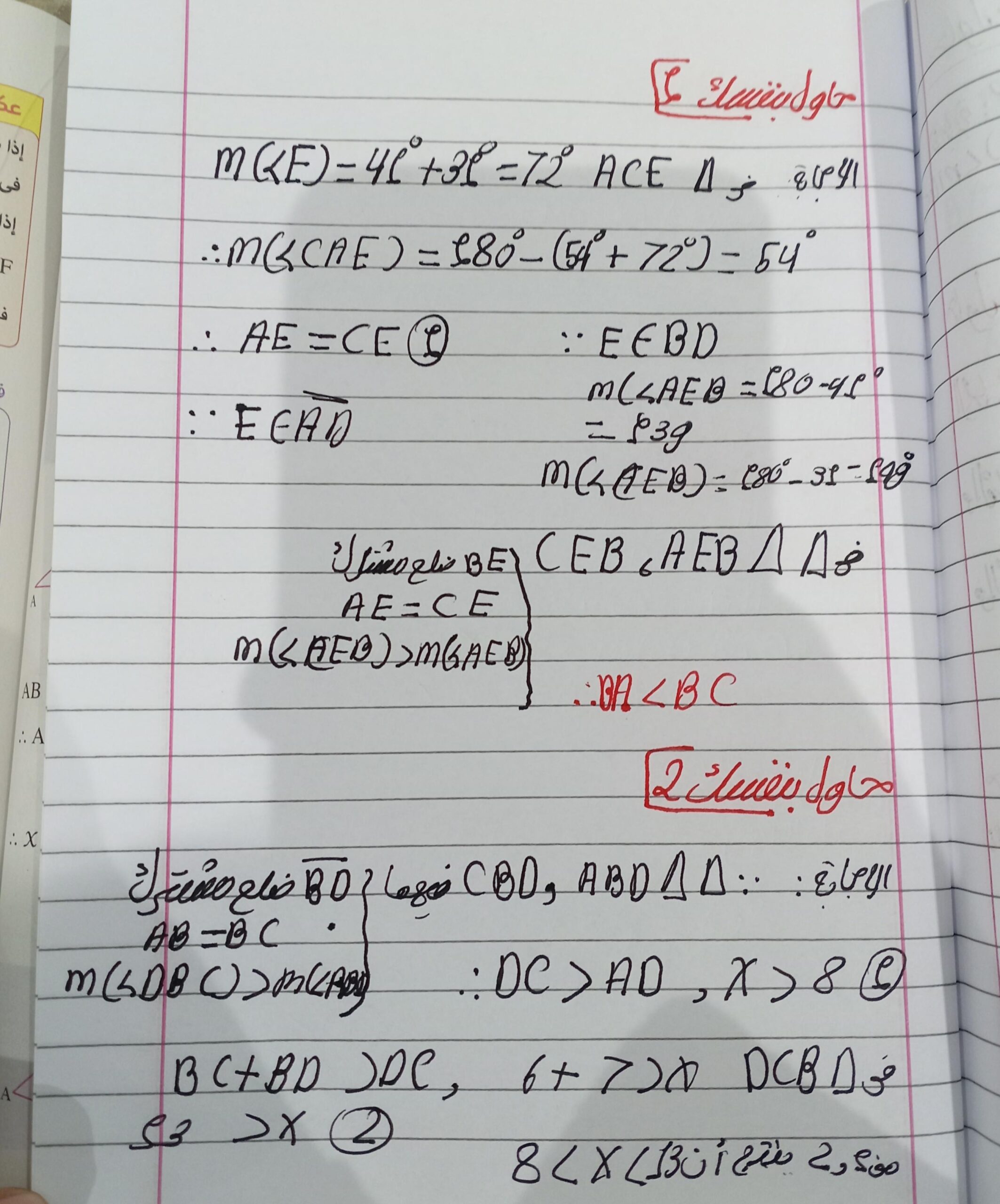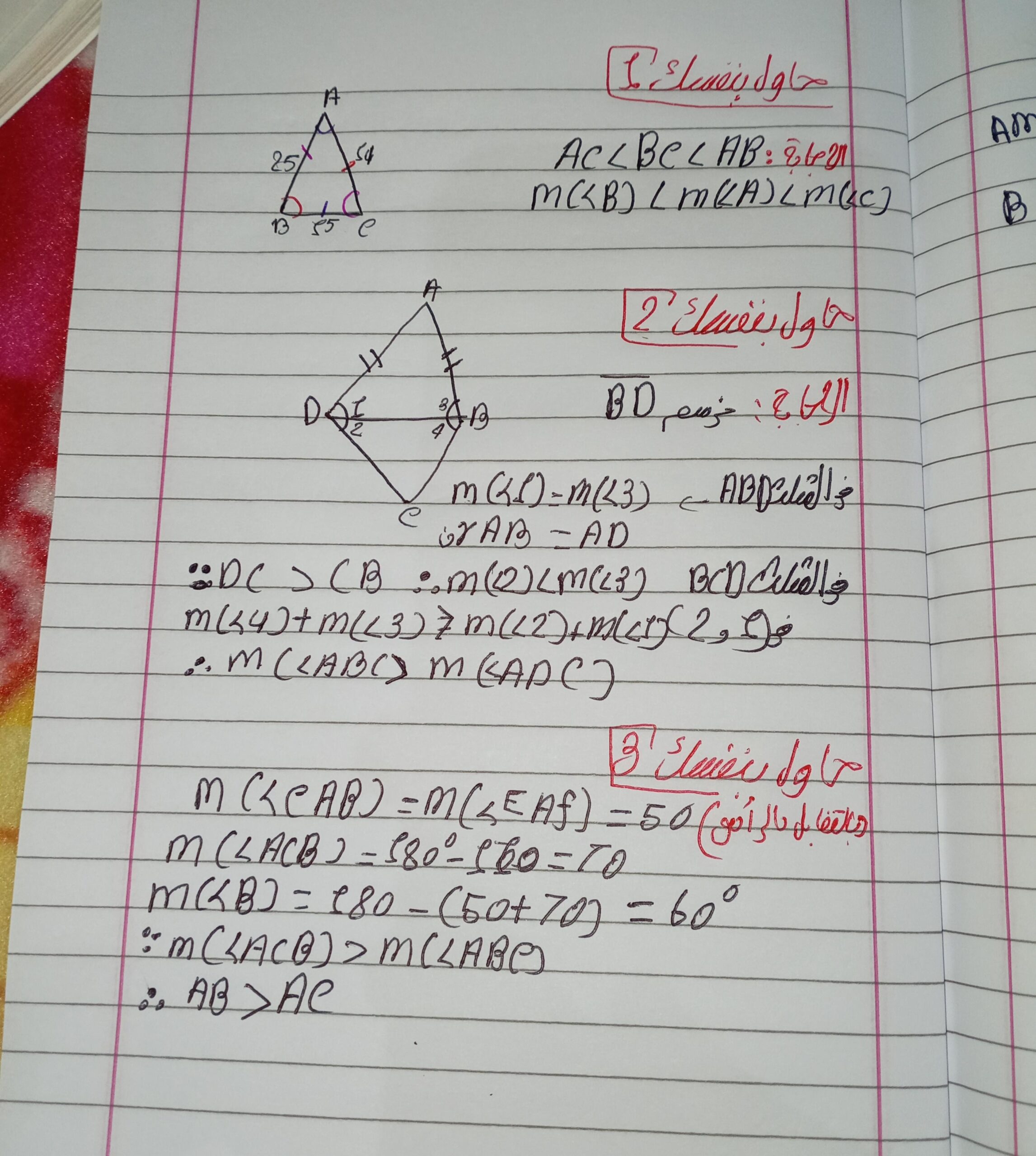 تم حل واجب الرياضيات الاختياري كامل لنظرية فيثاغورس وعكسها ومتباينتها