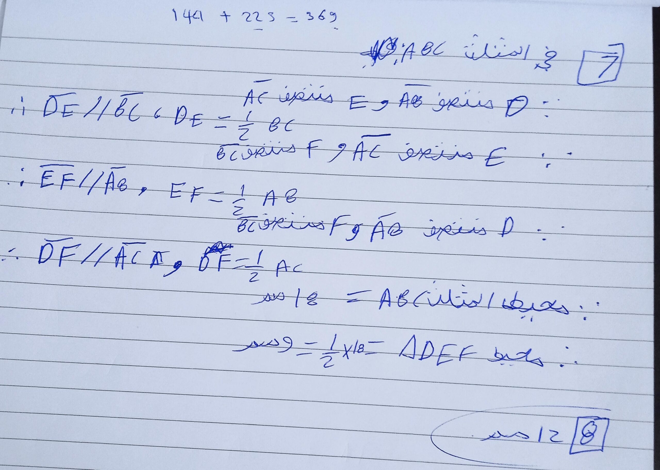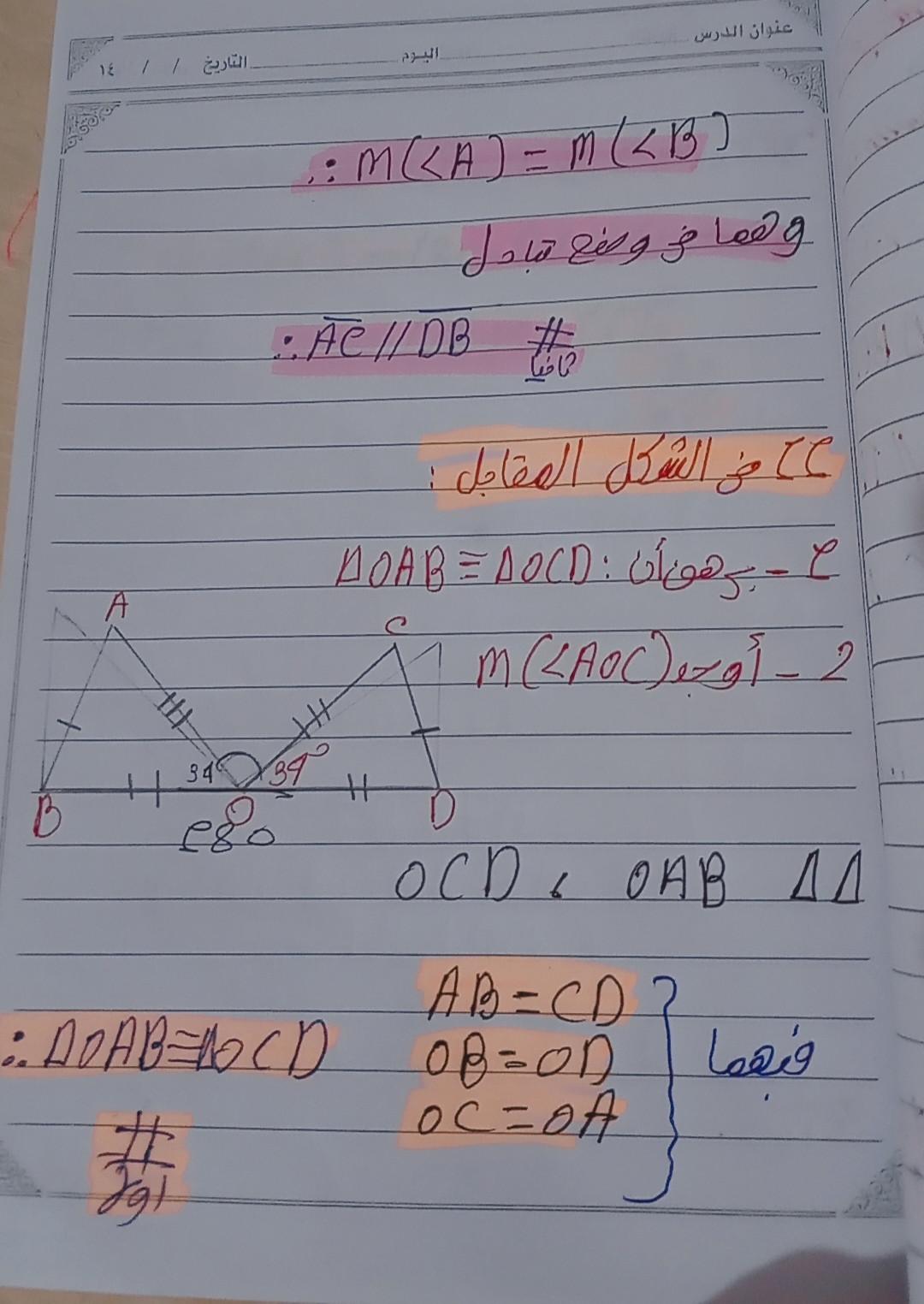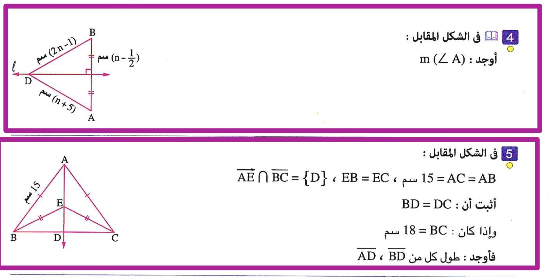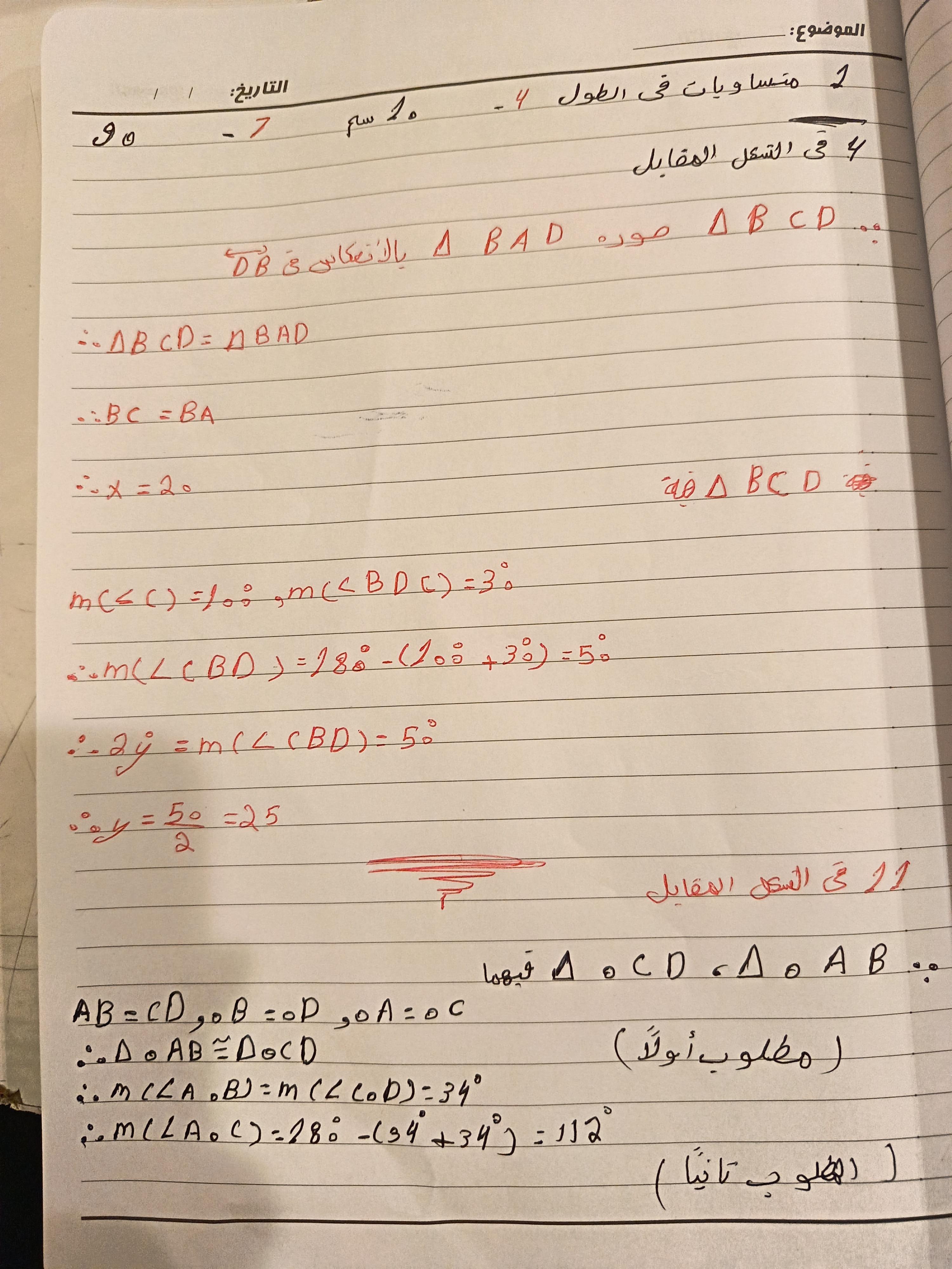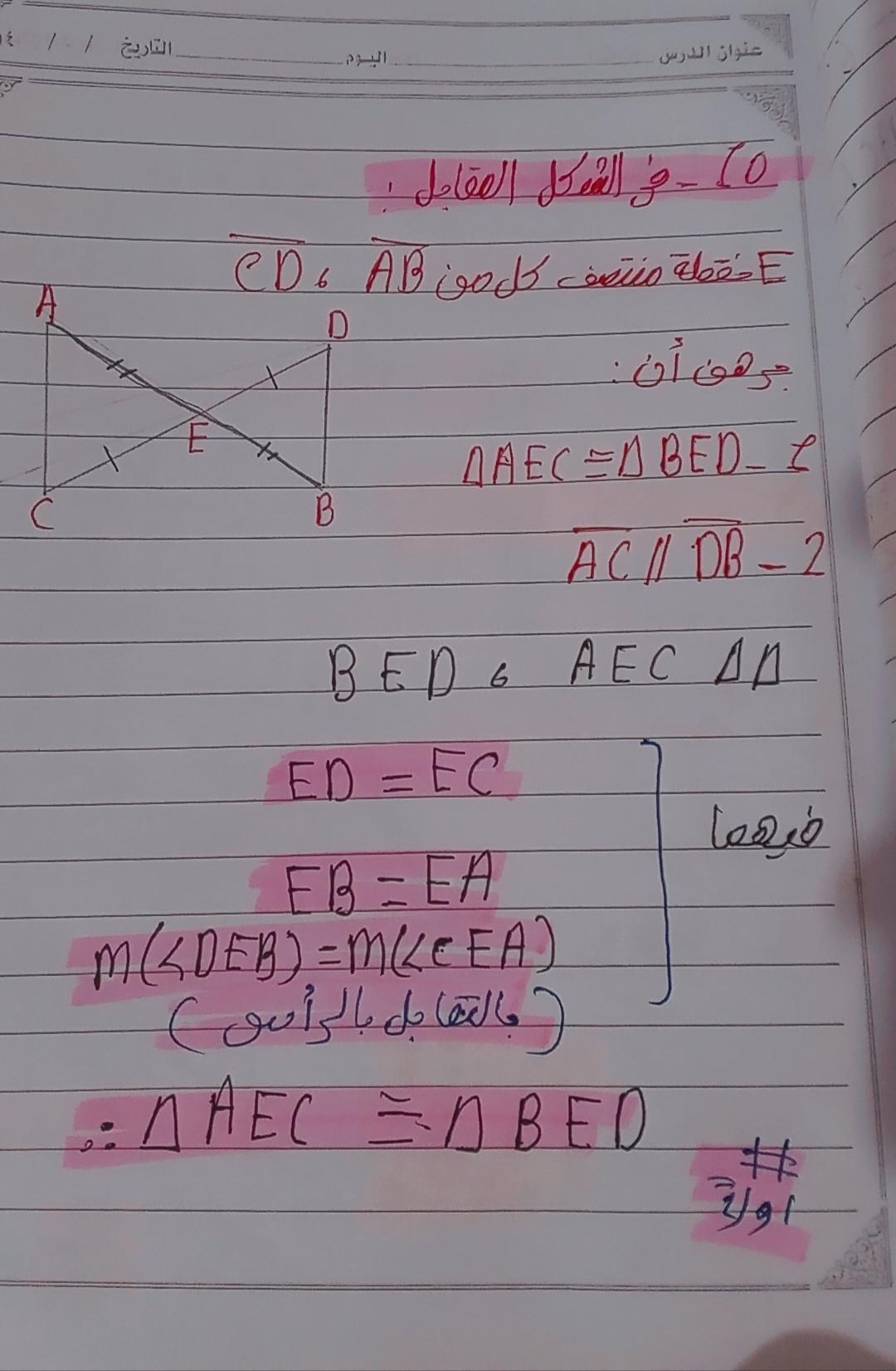 تم شرح حالات تطابق مثلثين والحل على اول حالتين ٣ اضلاع و وضلعان وزاويه محصوره و الواجب ص ١٥٣ رقم ٩و١٠ و١١