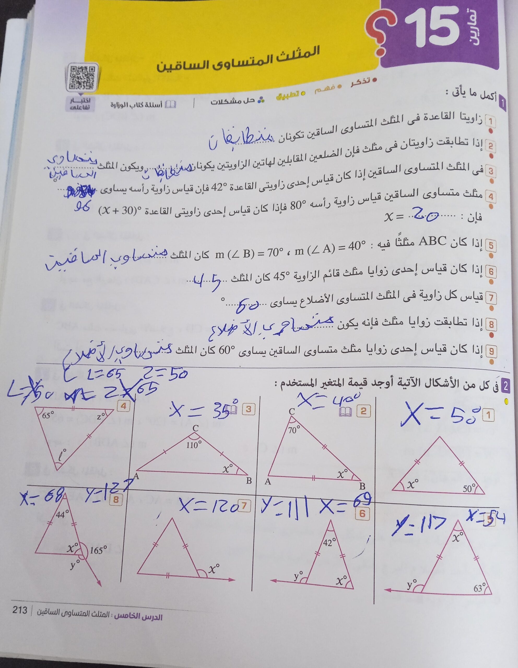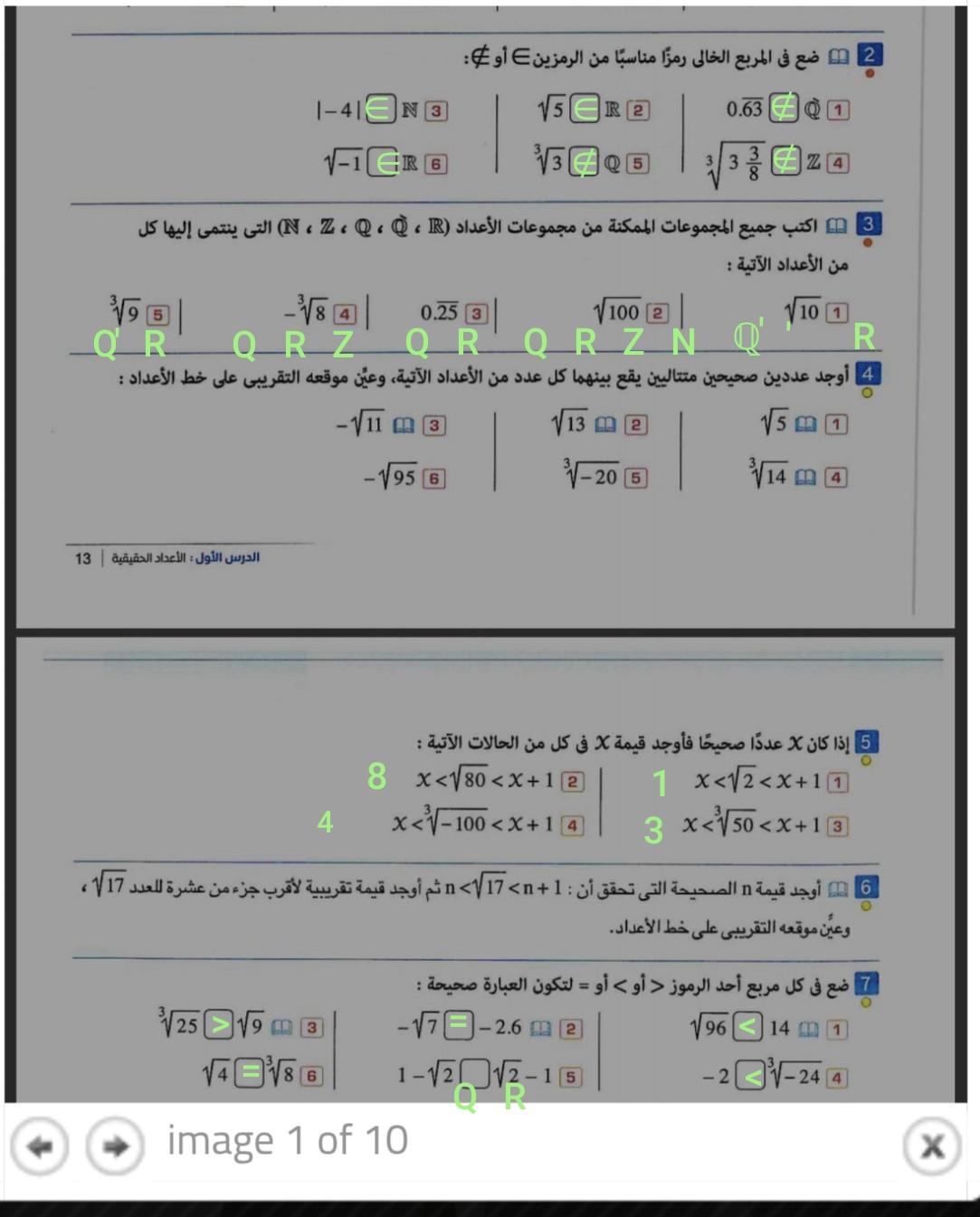 المسائل الفردية في كل صفحة
