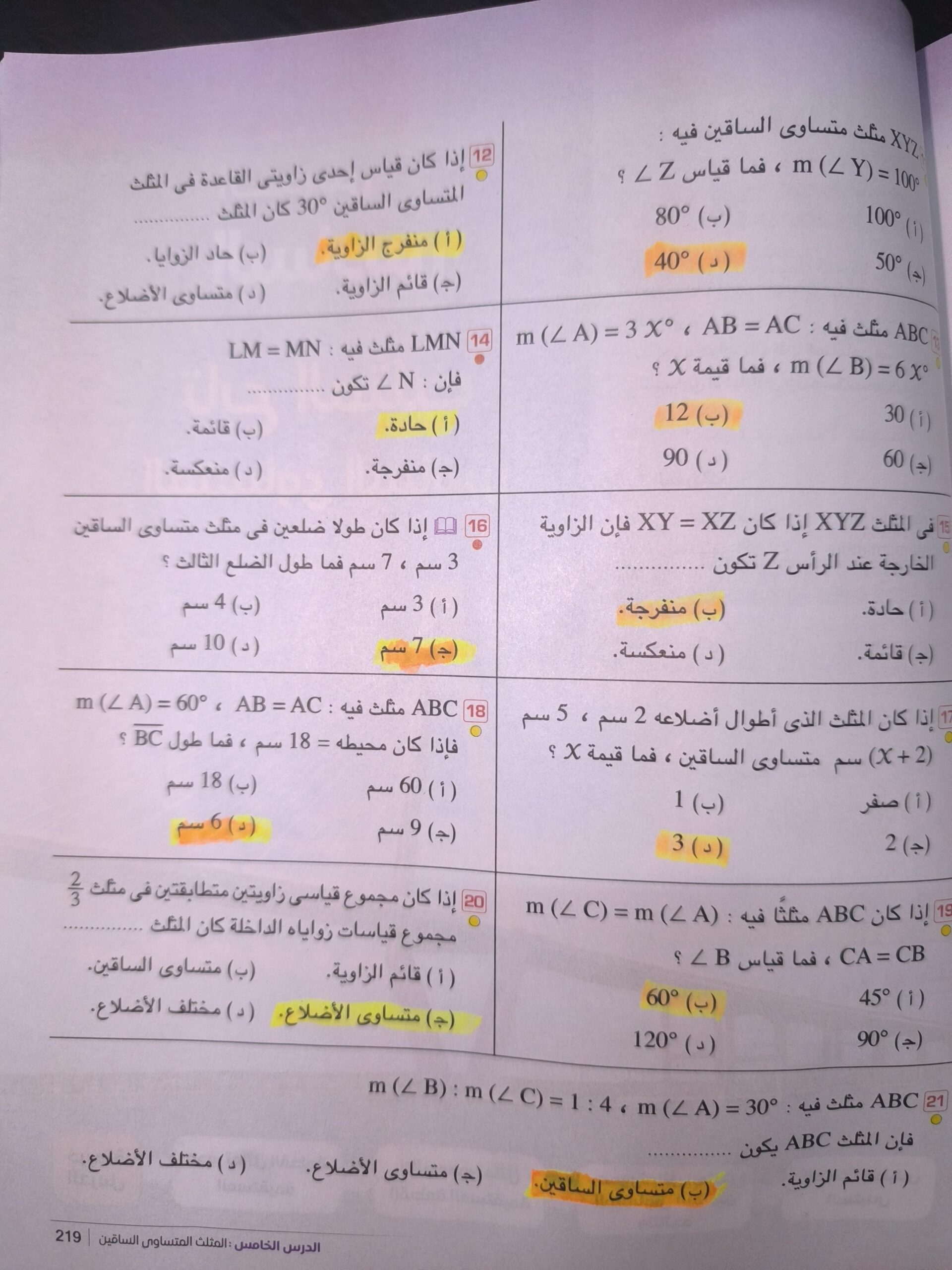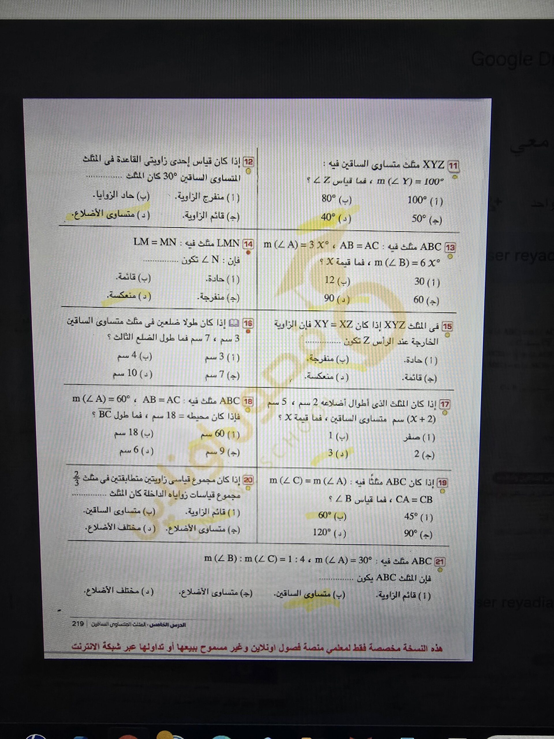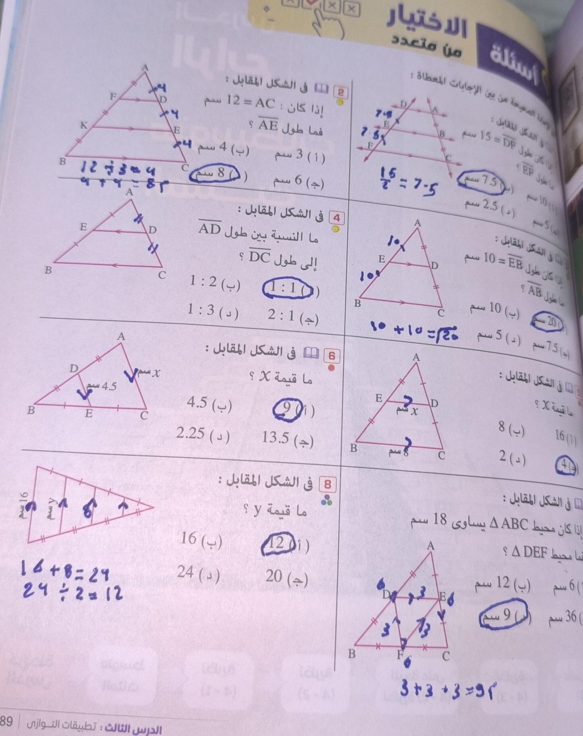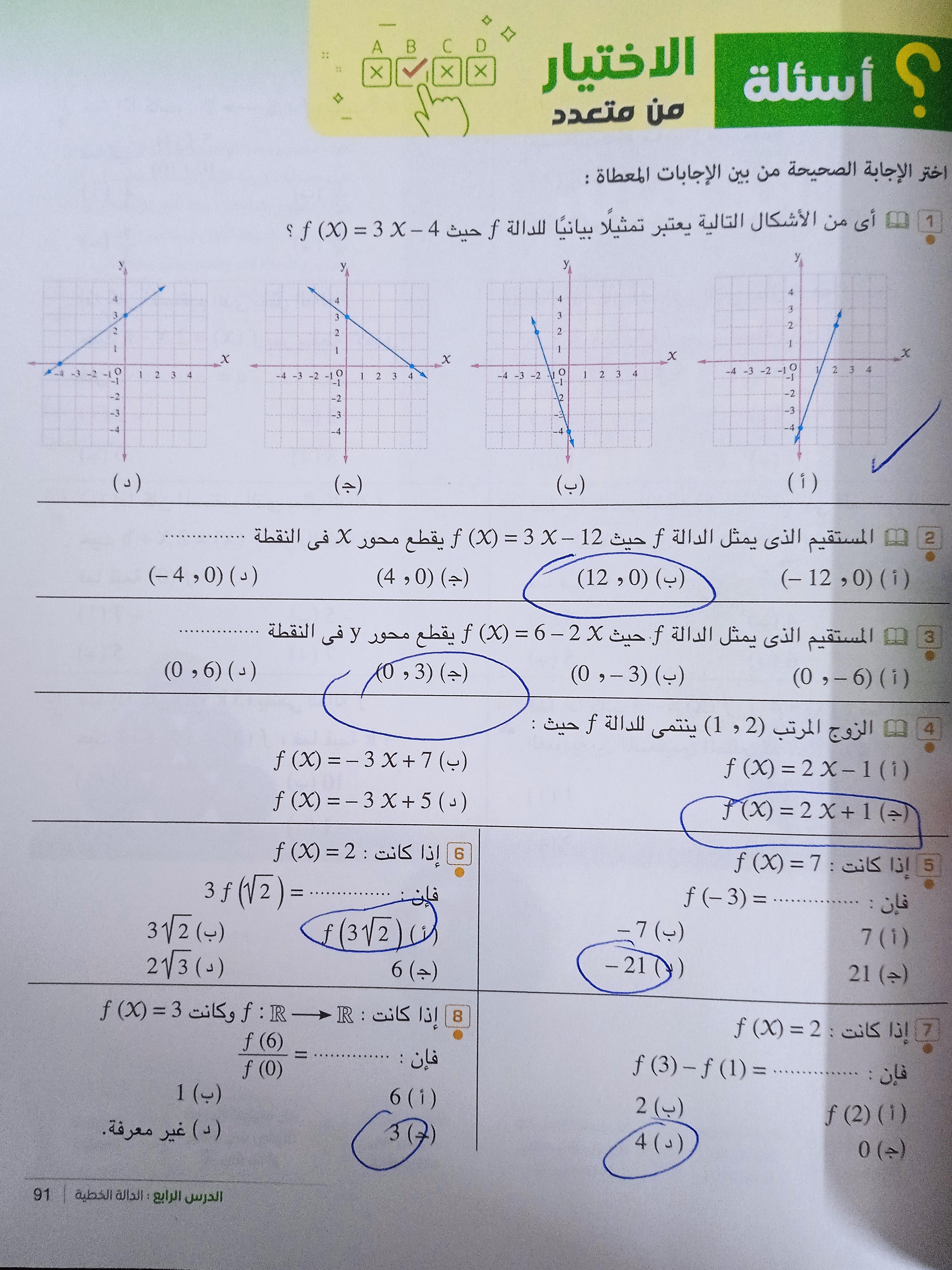 اسئلة الاختيار من متعدد صفخة 91