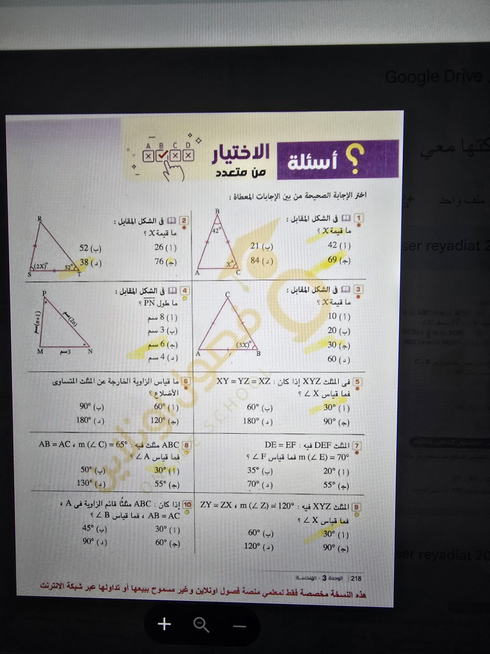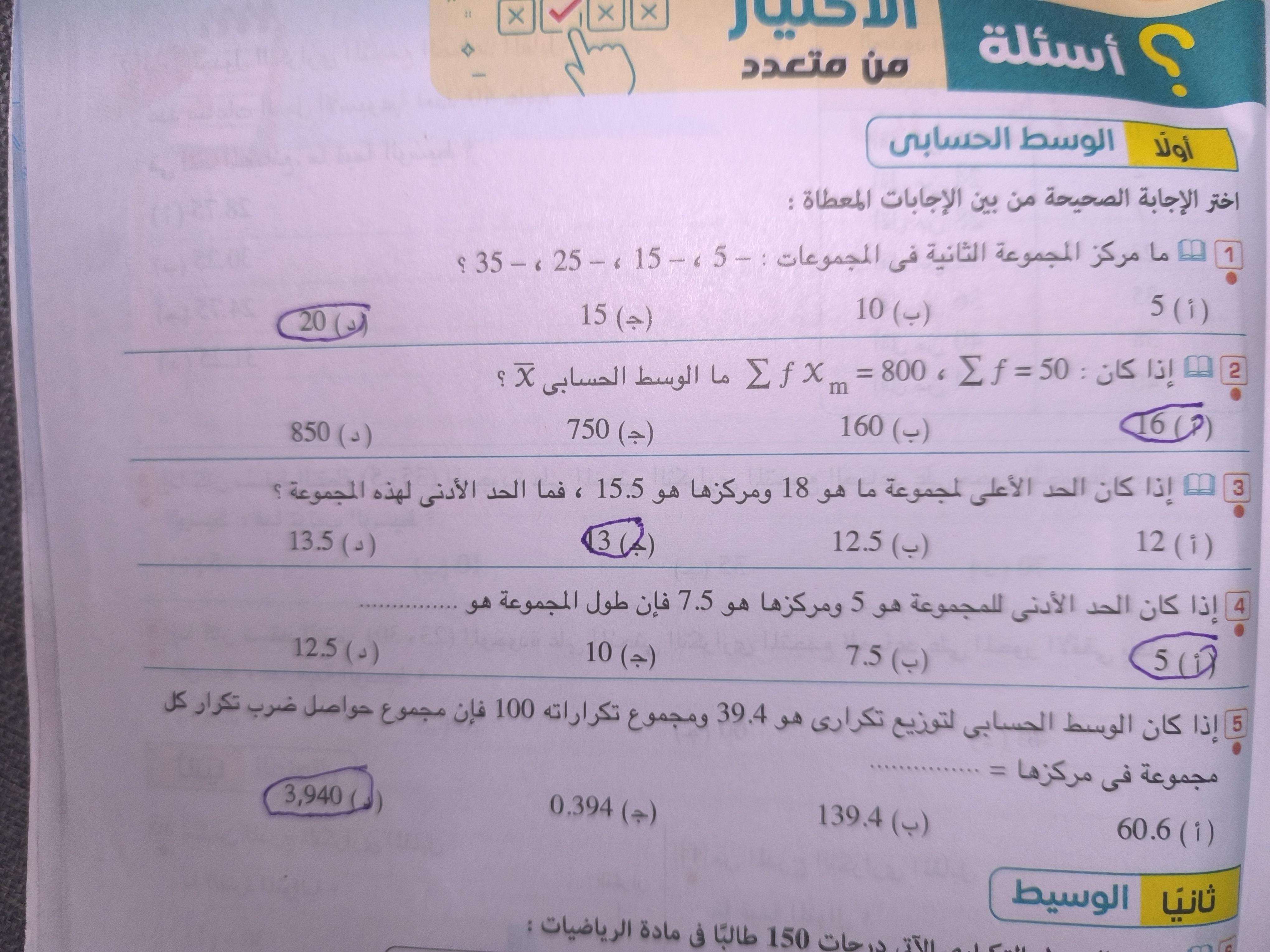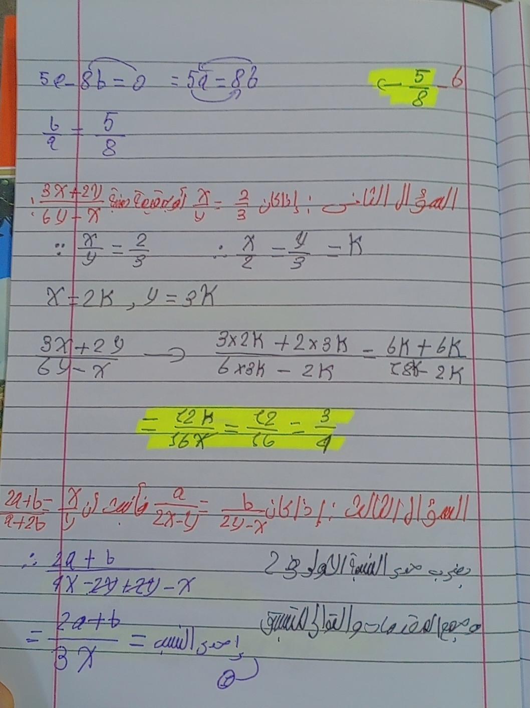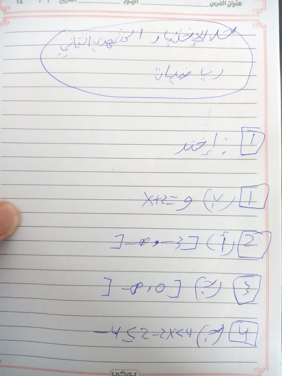 واجب الرياضيات.💧
