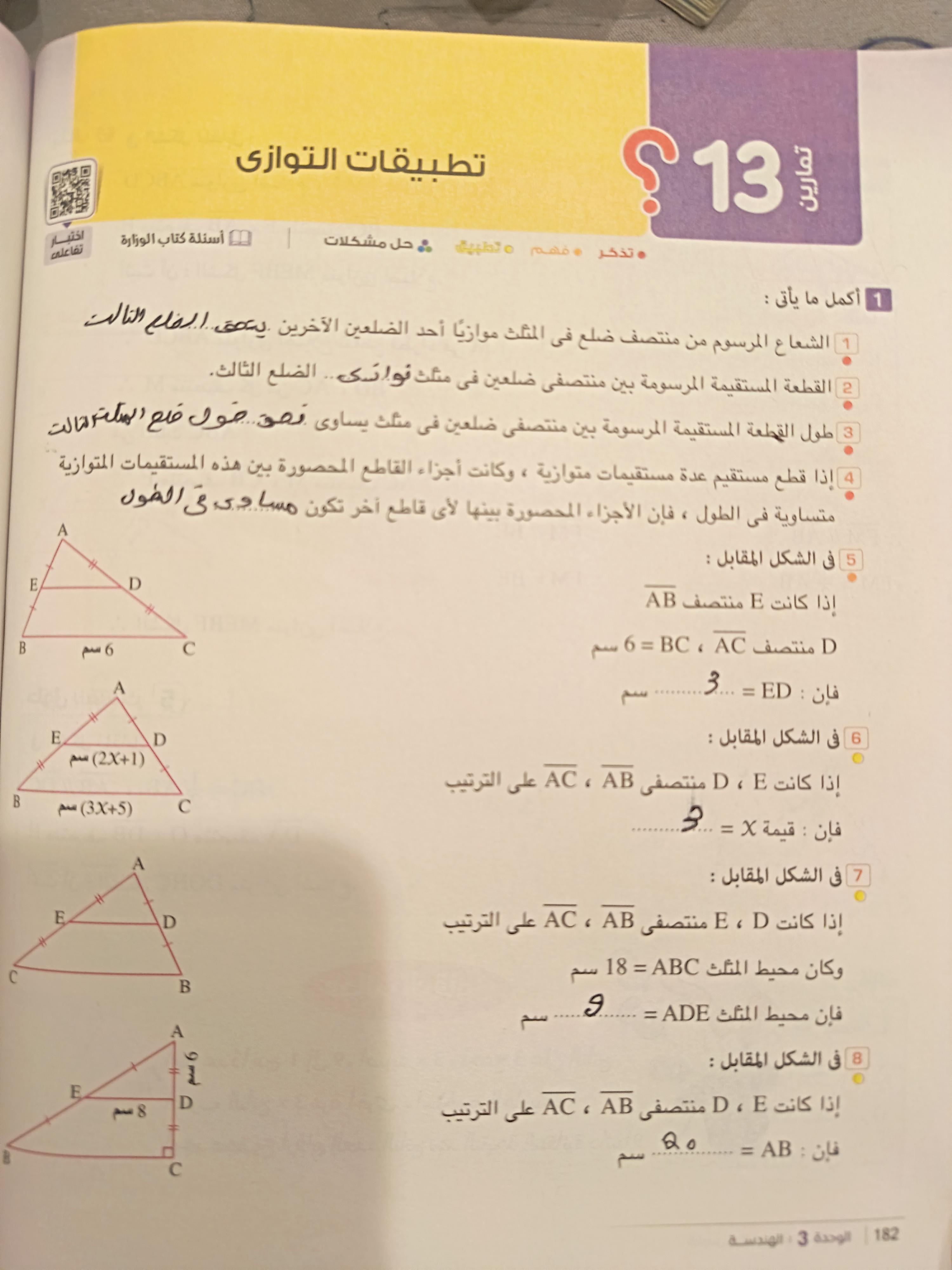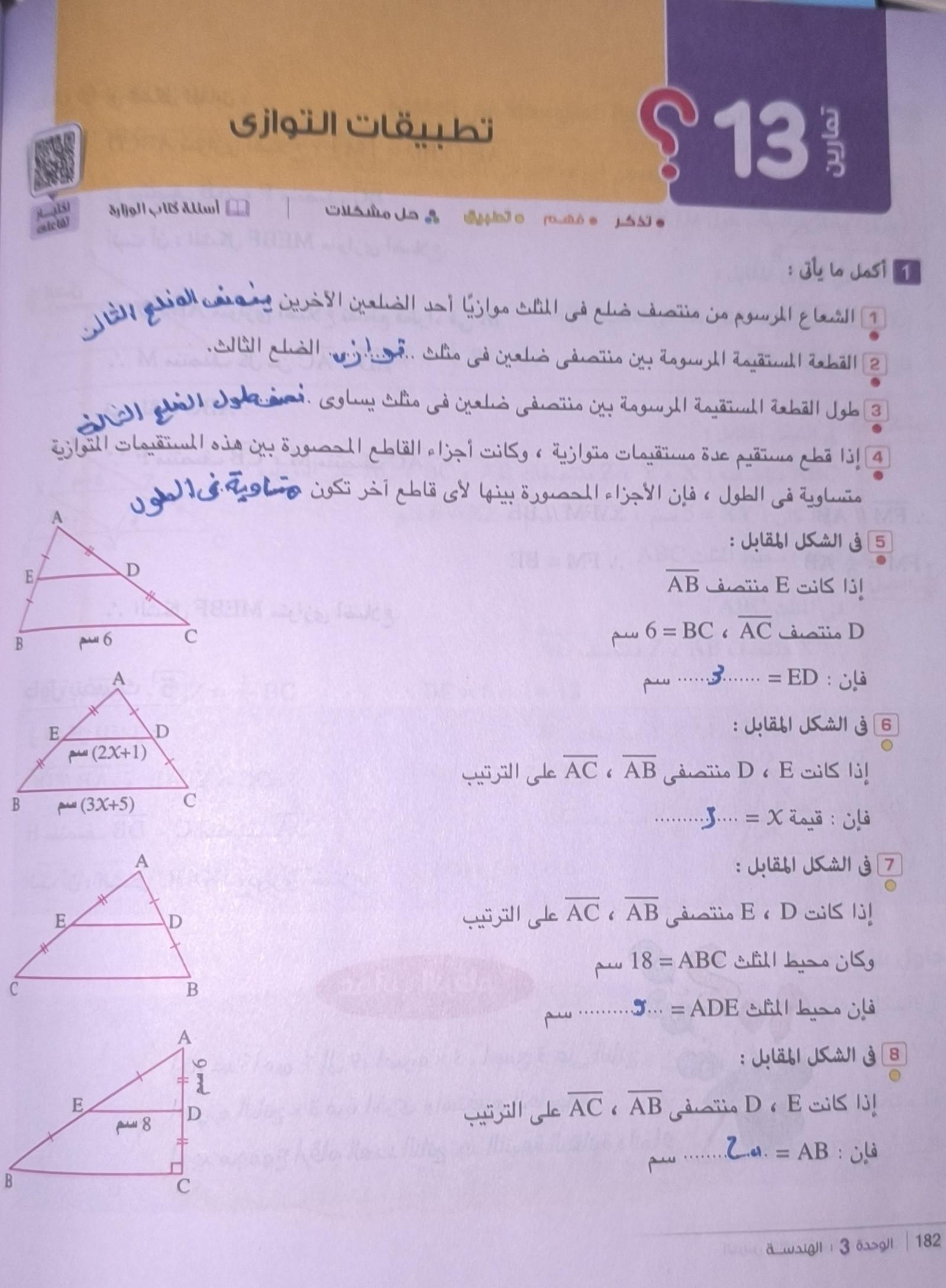 تم حل الواجب بس رقم تامنيه انا مش متاكد من حلها