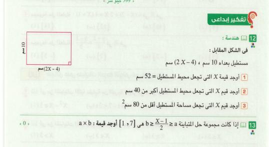 علي درس المتباينات :الدرس الاول بالوحدة الثانية