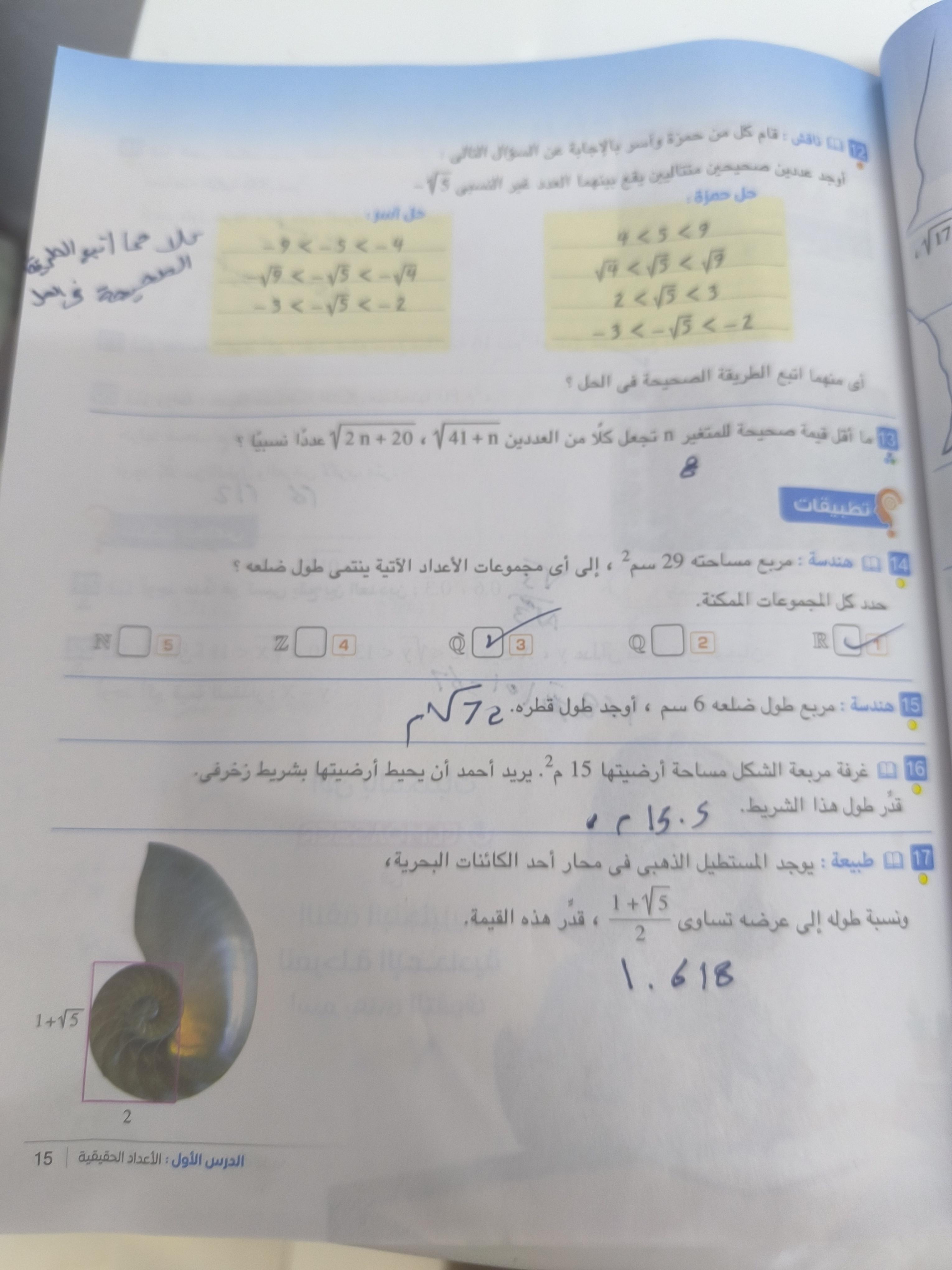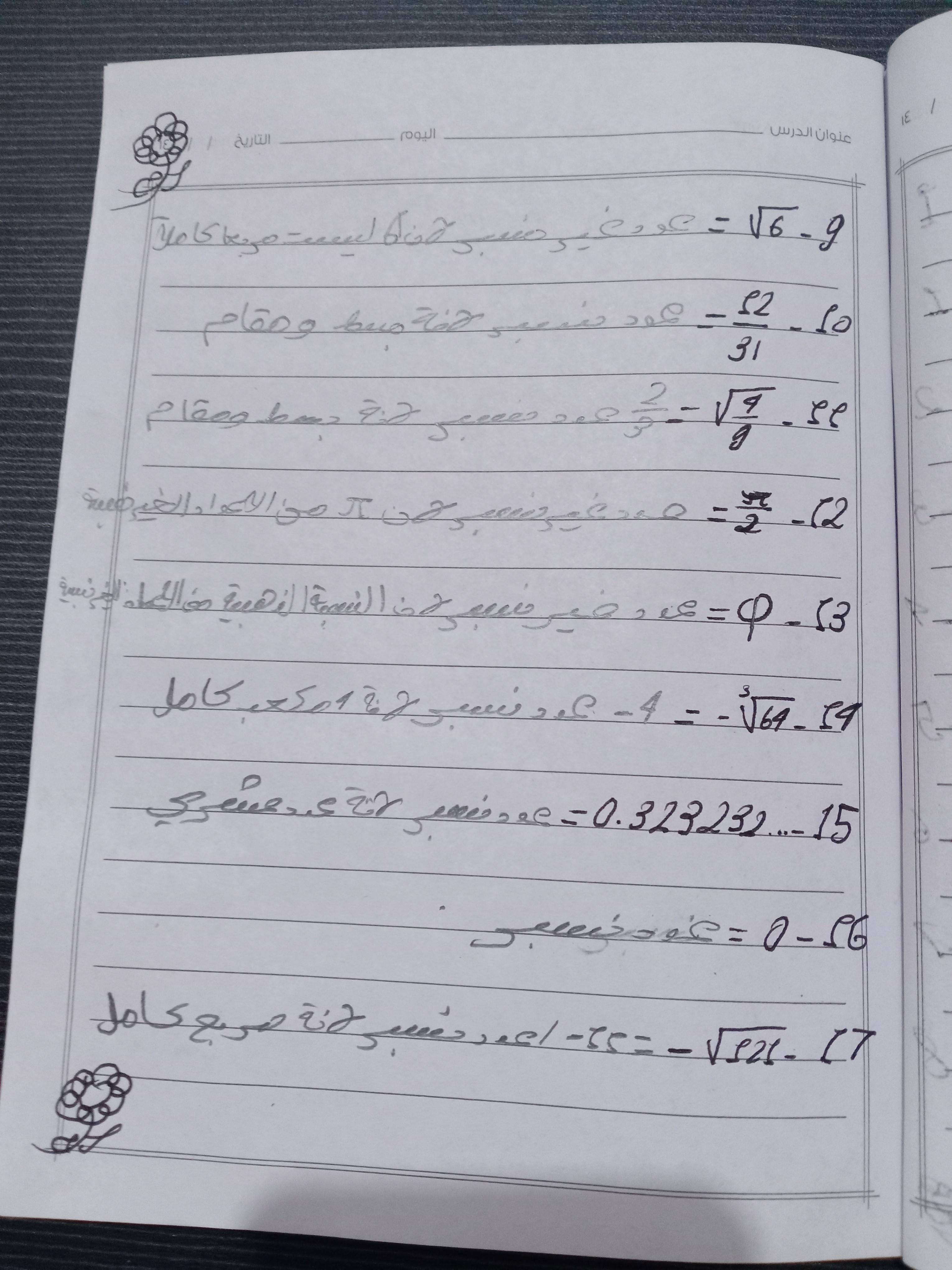 تم اليوم شرح الاعداد الغير نسبية