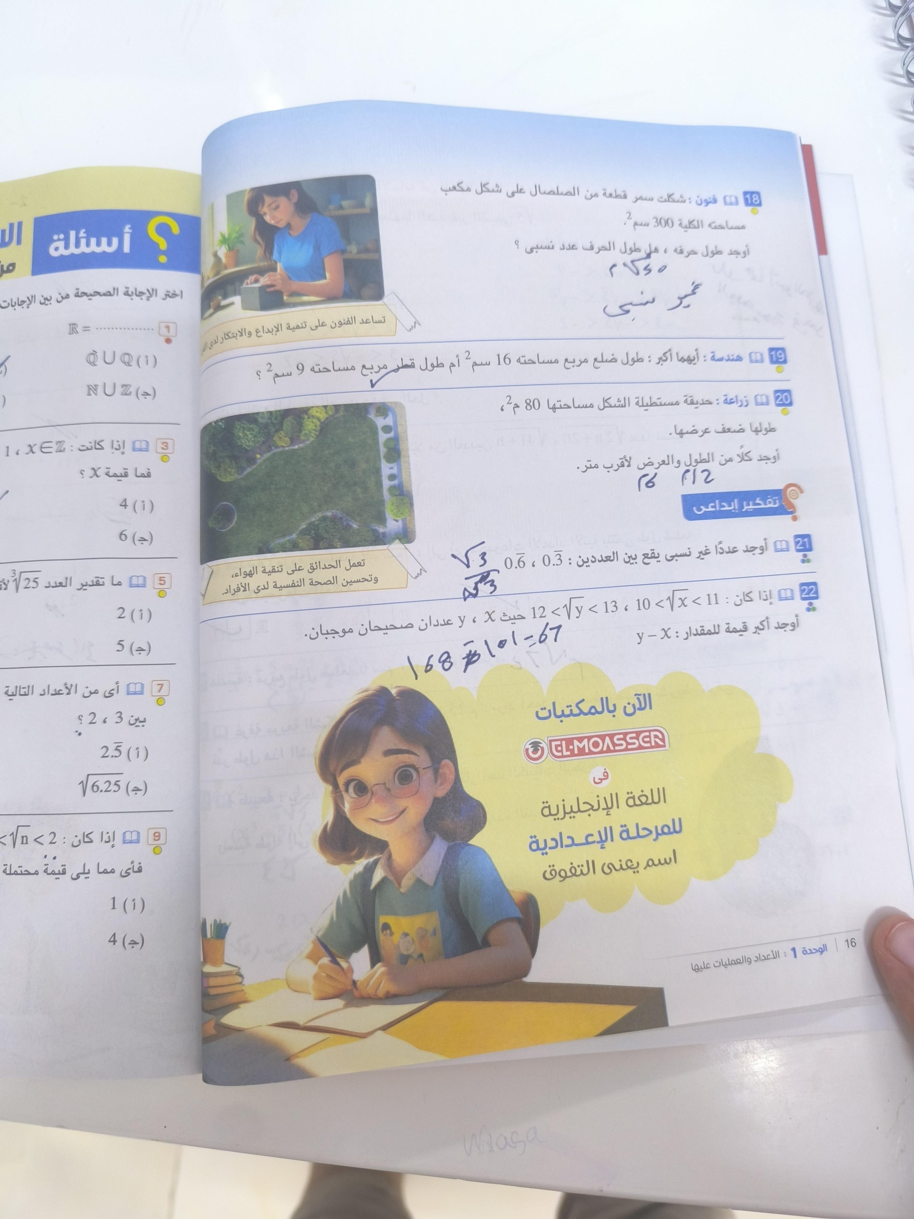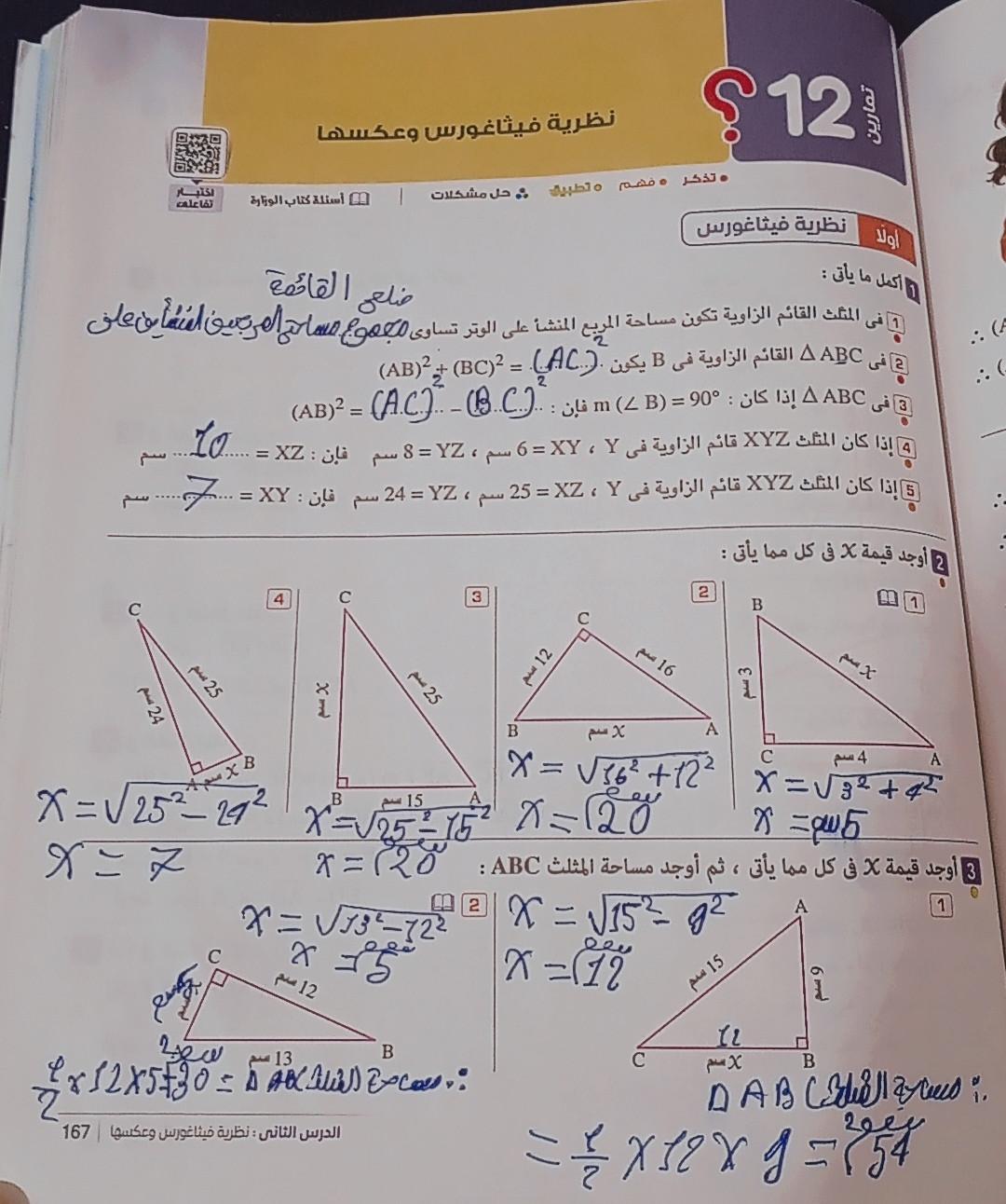 تم حل واجب الرياضيات لليوم ص 167 كاملة وسؤالين من ص 168 واللي هما سؤال رقم 6 و7