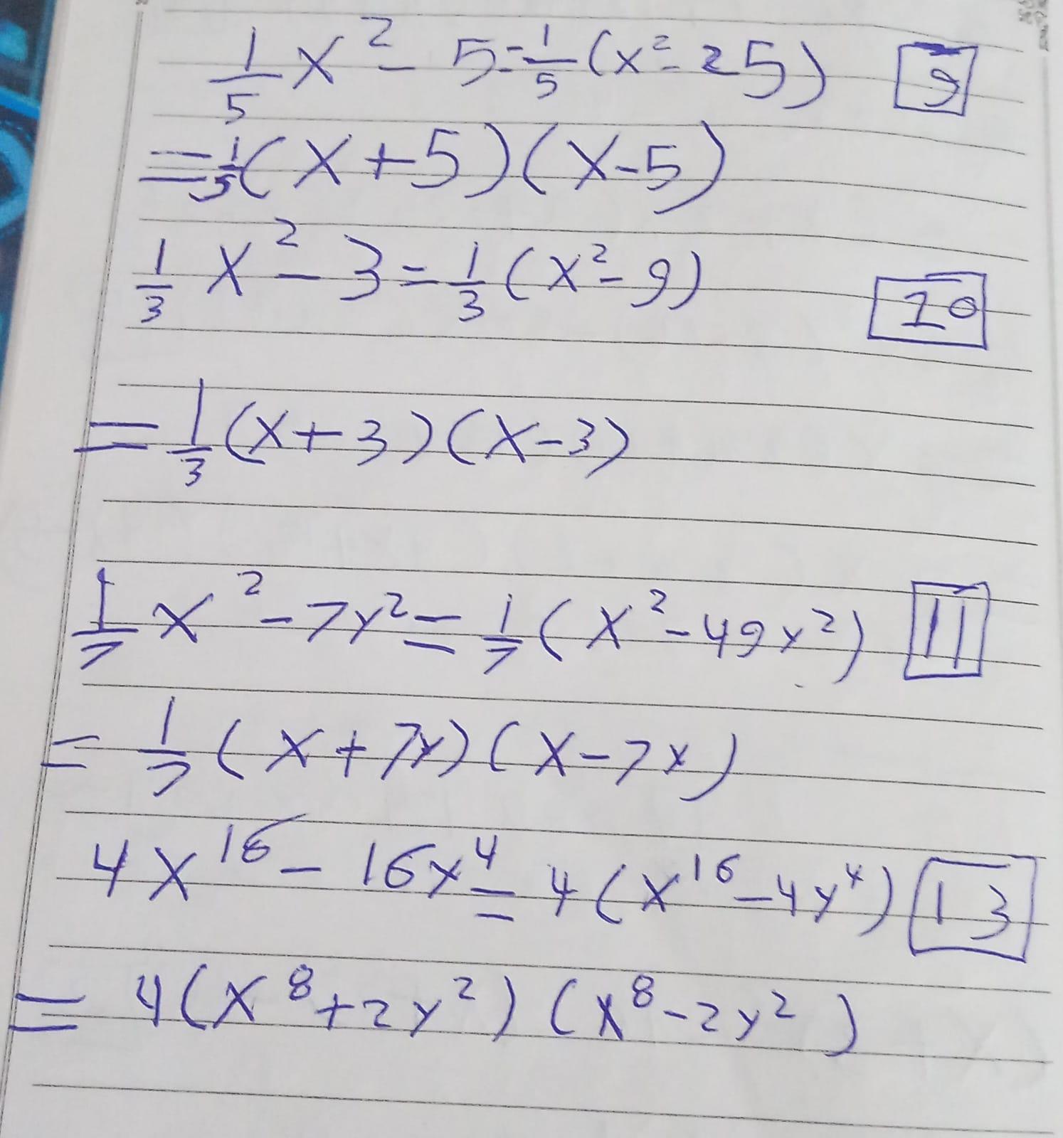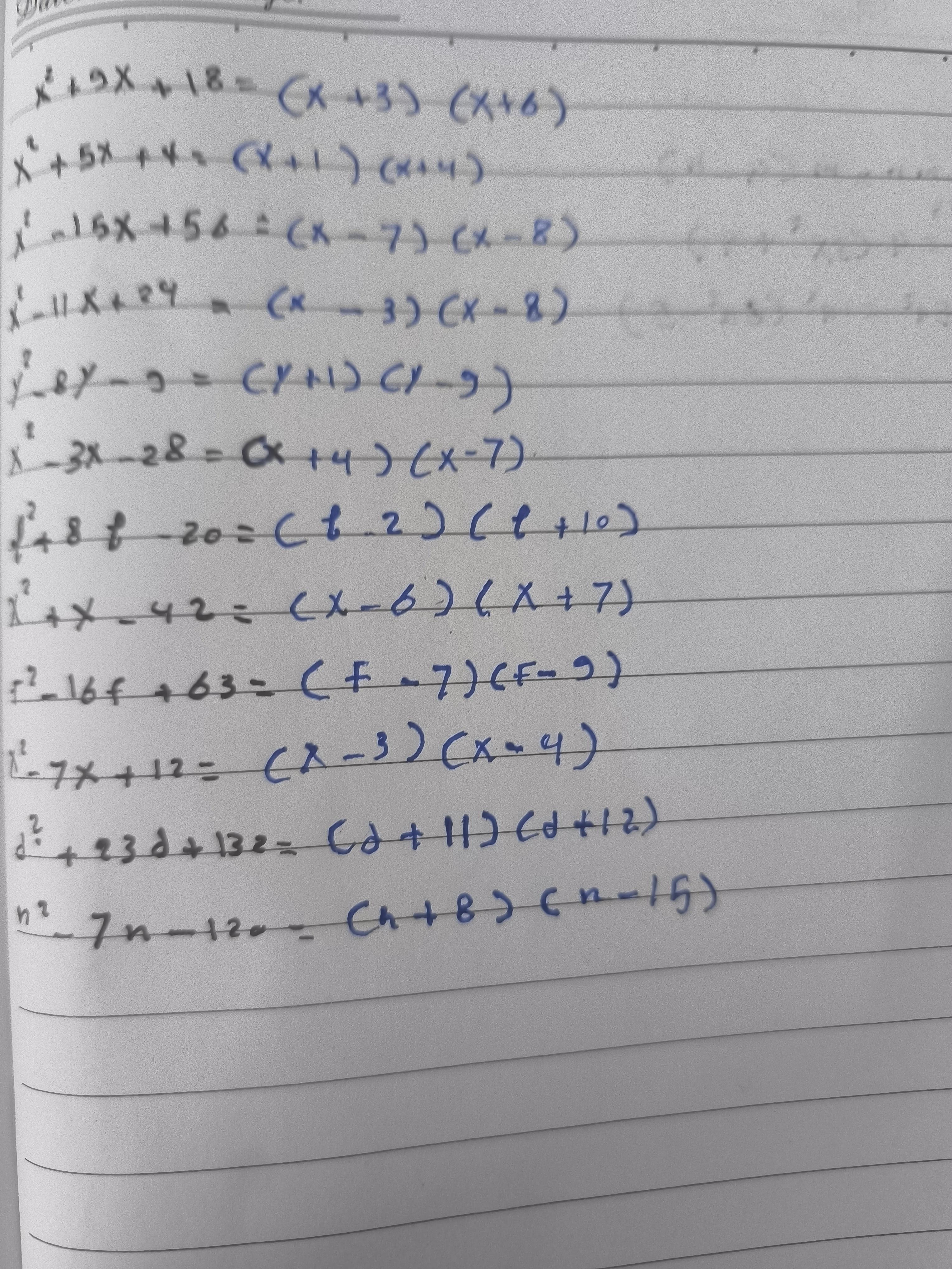 9. *$f^2 – 16f + 63$*: $(f – 9)(f – 7)$