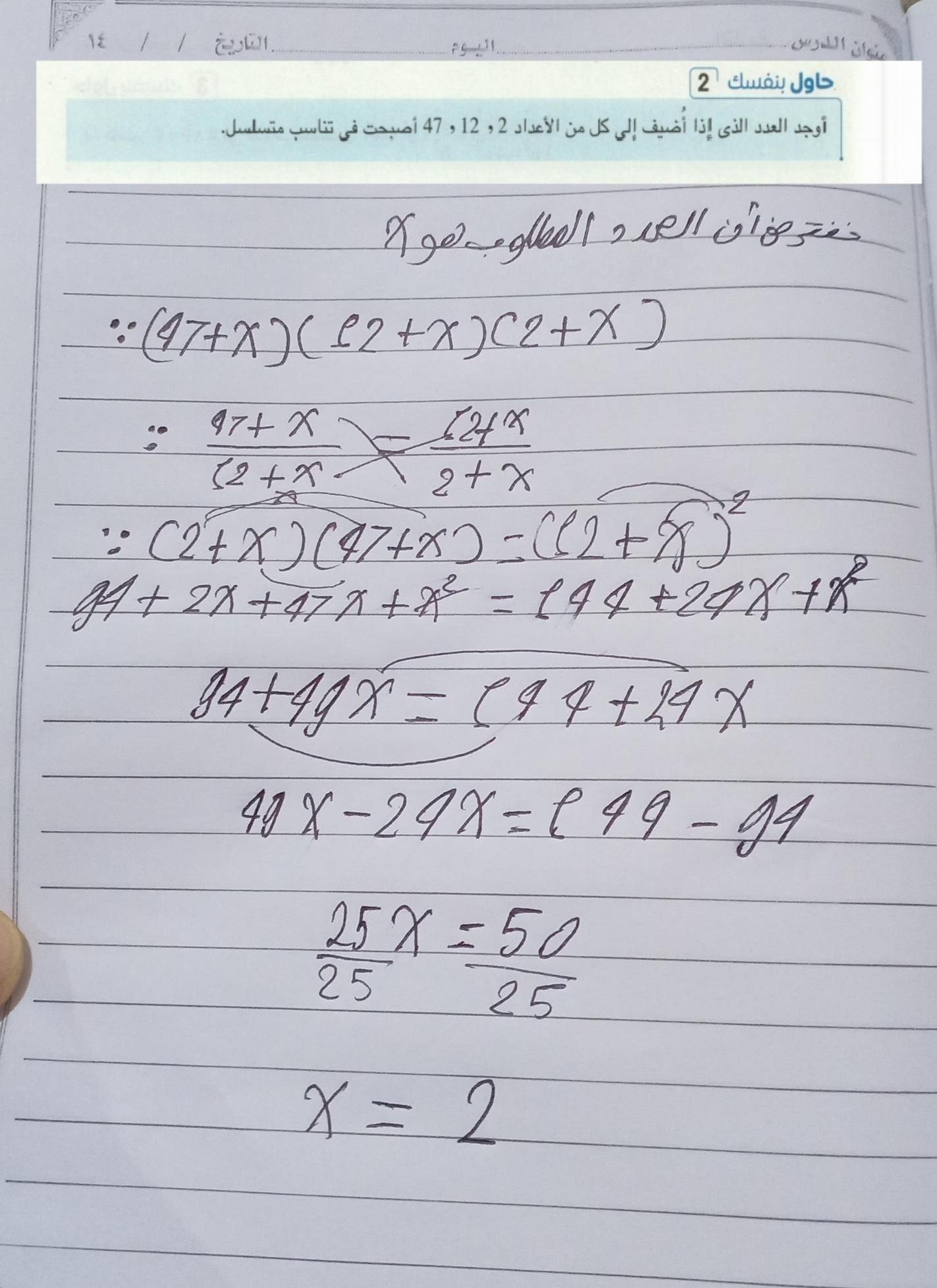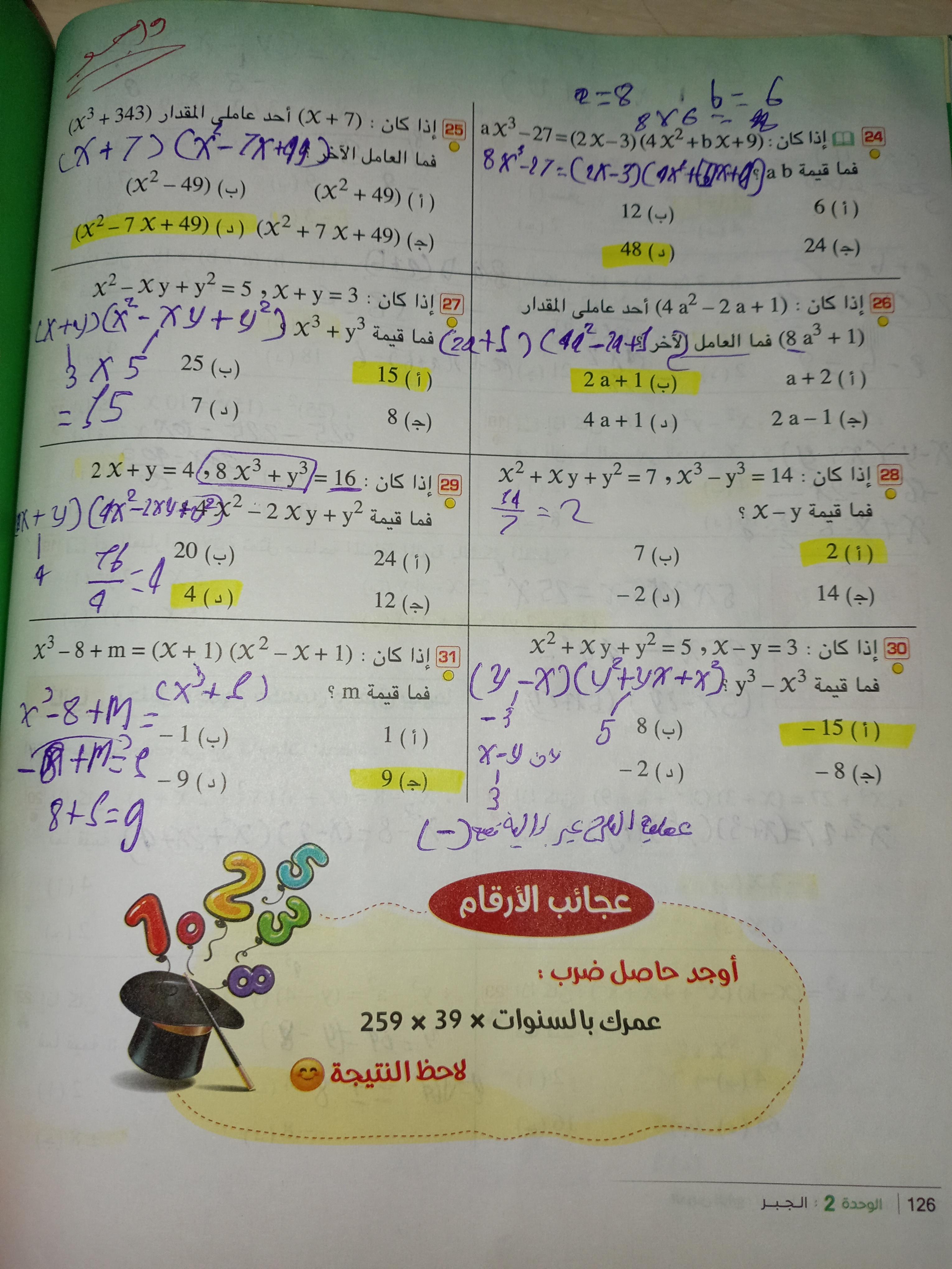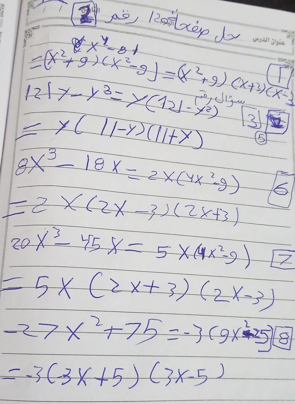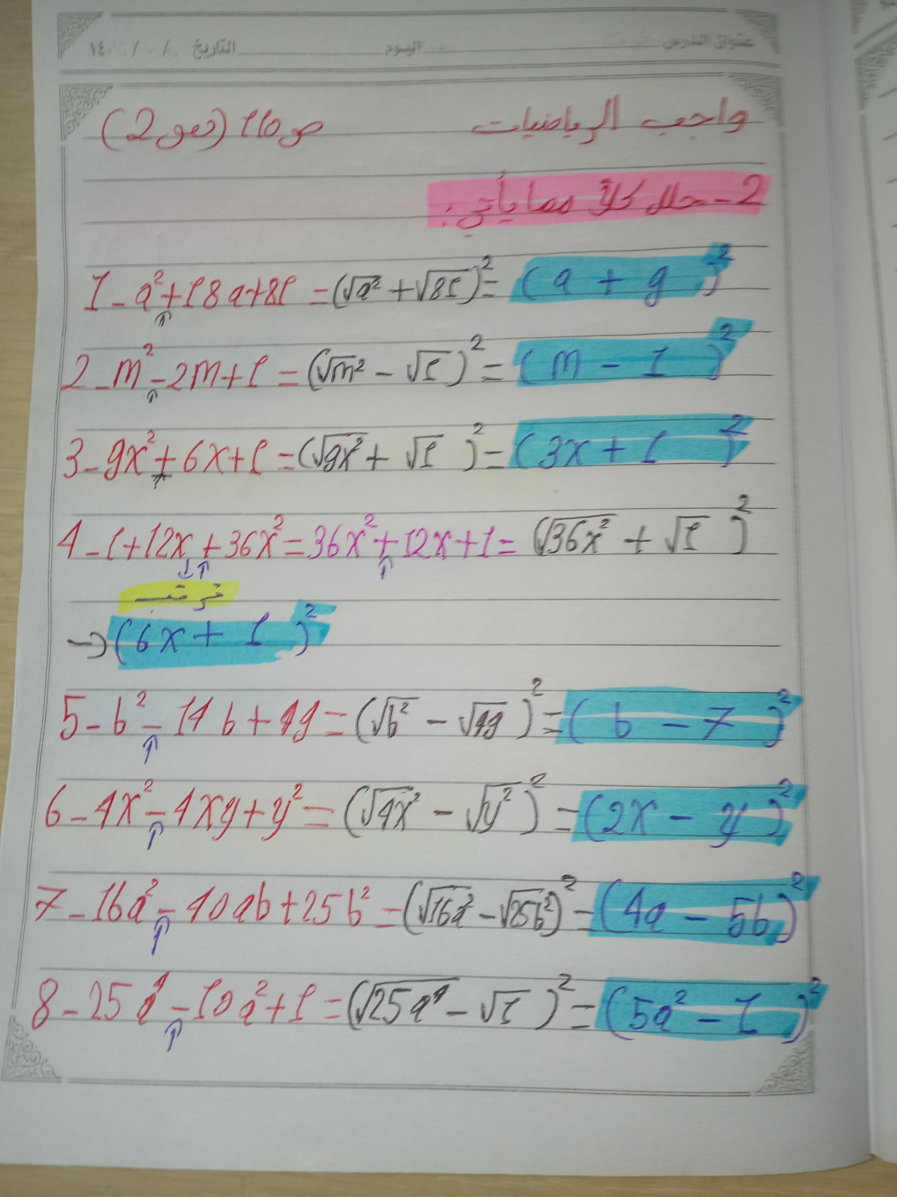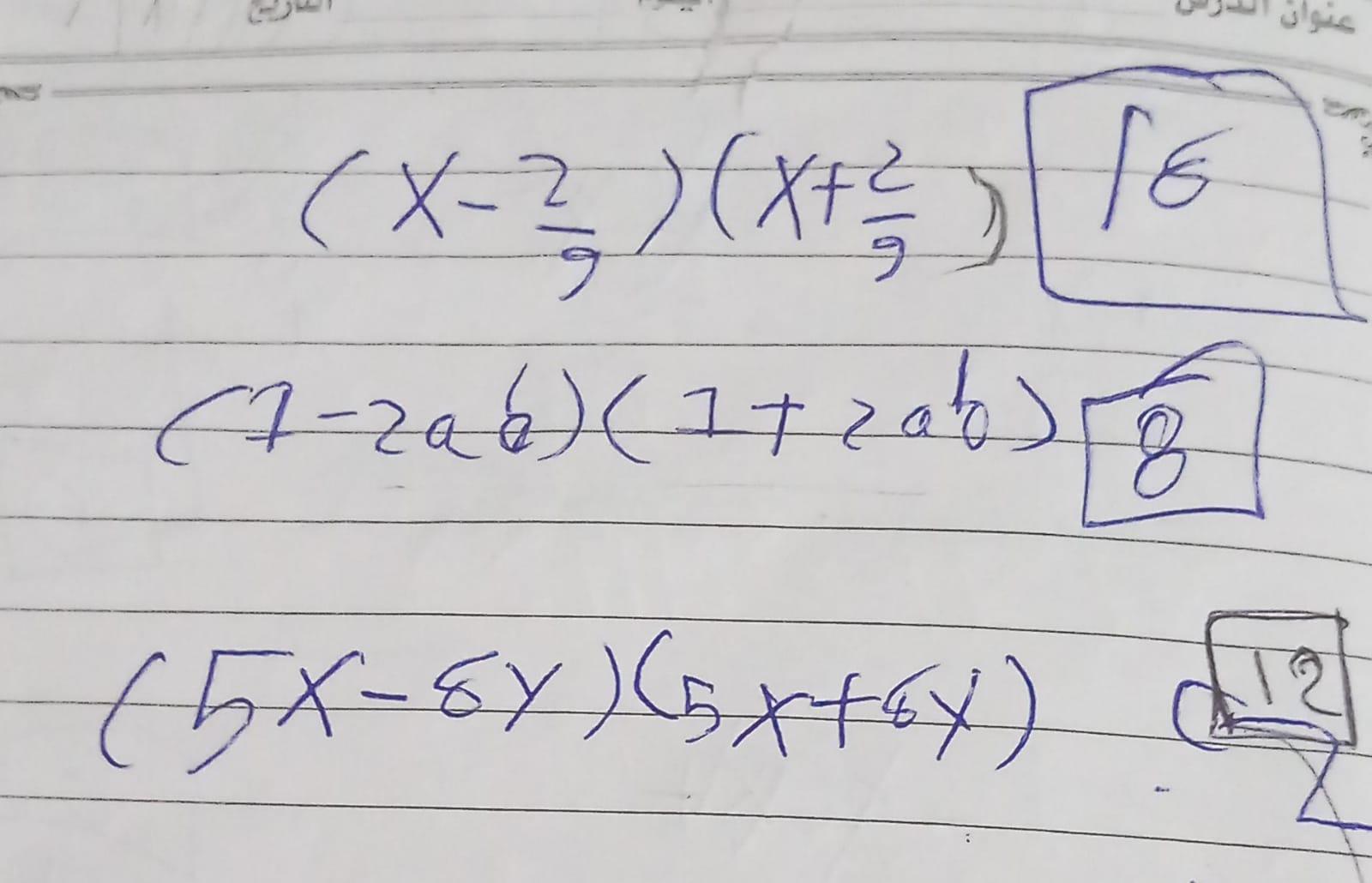 تم حل واجب الرياضيات للليوم