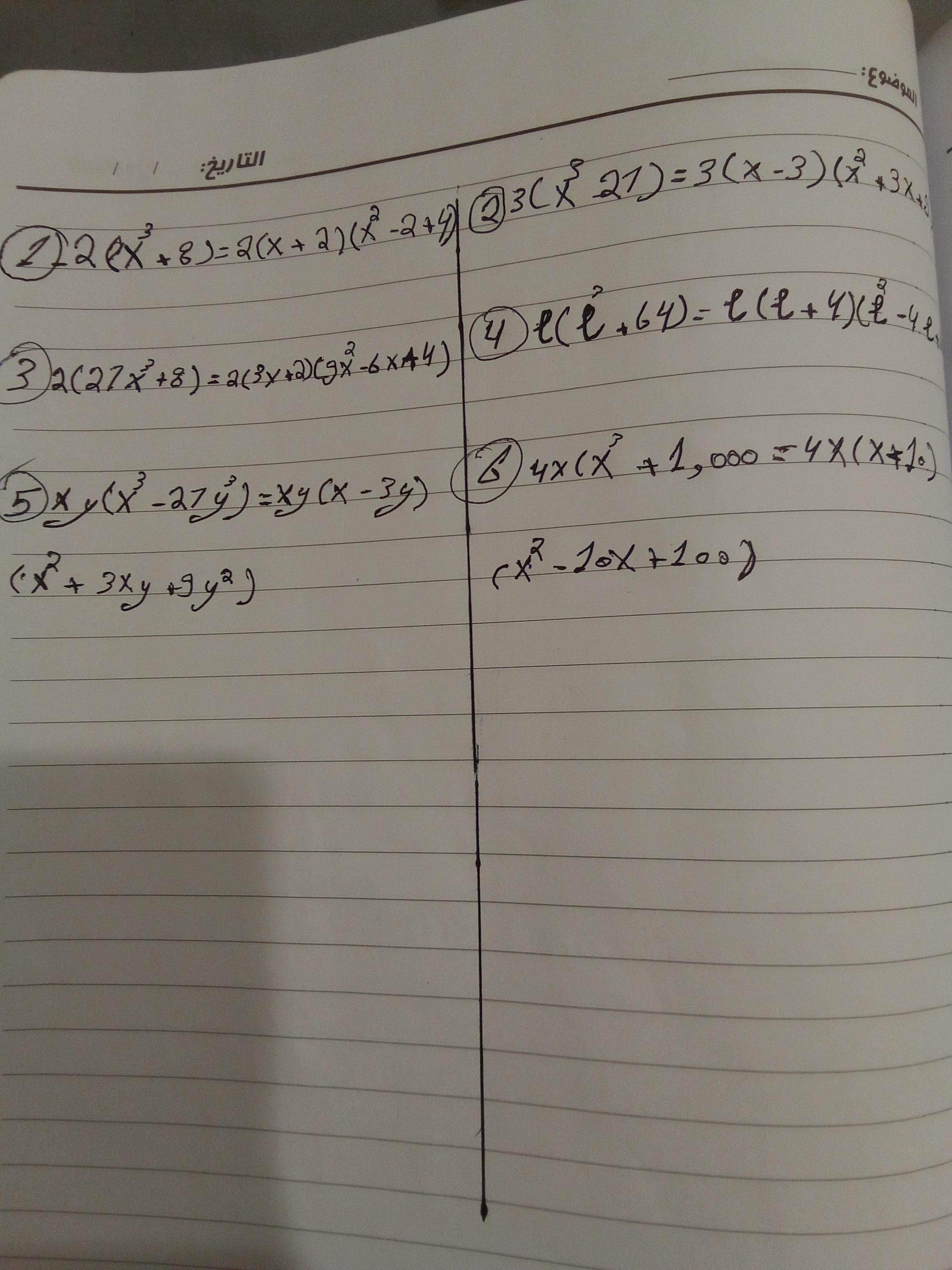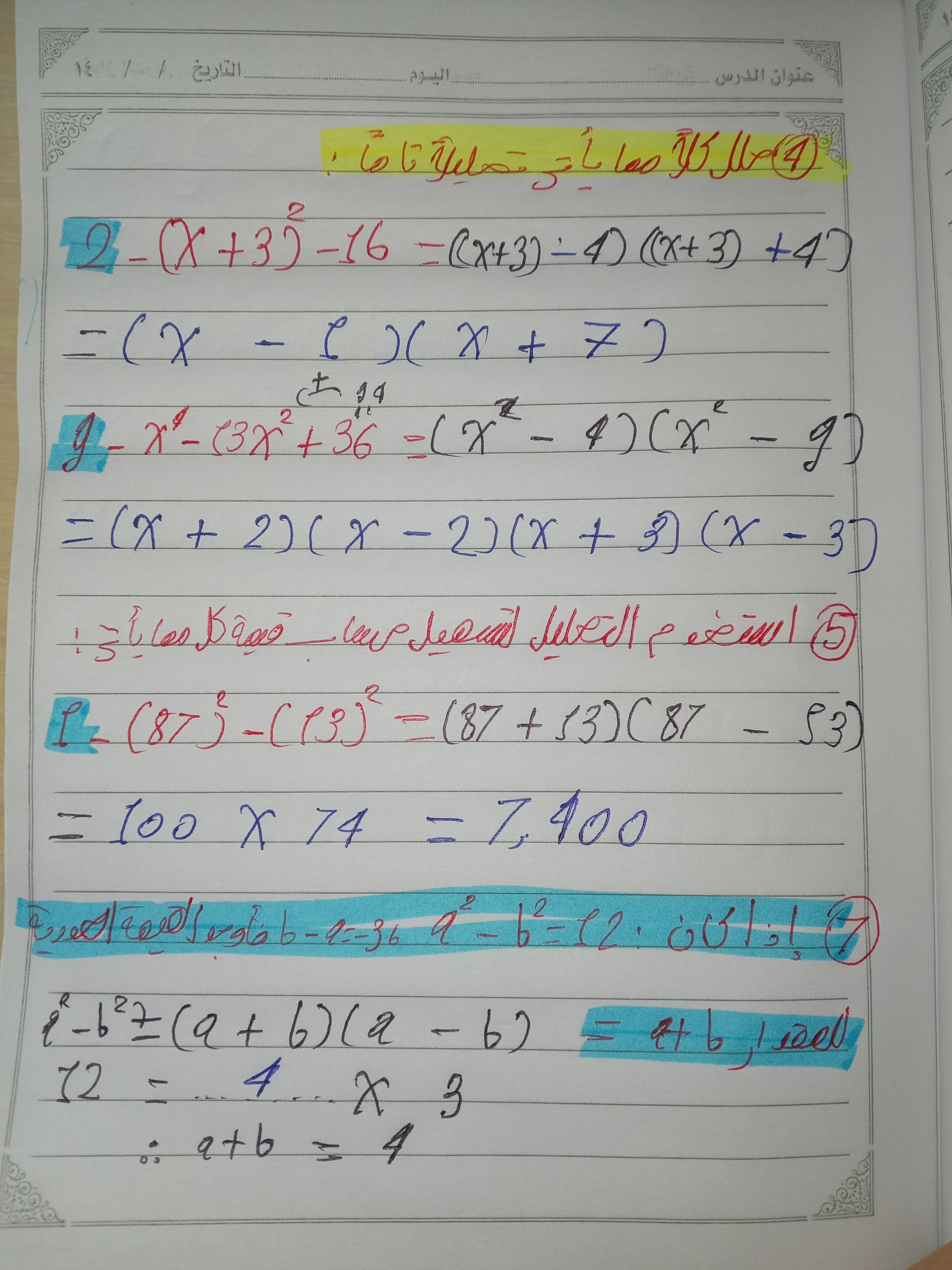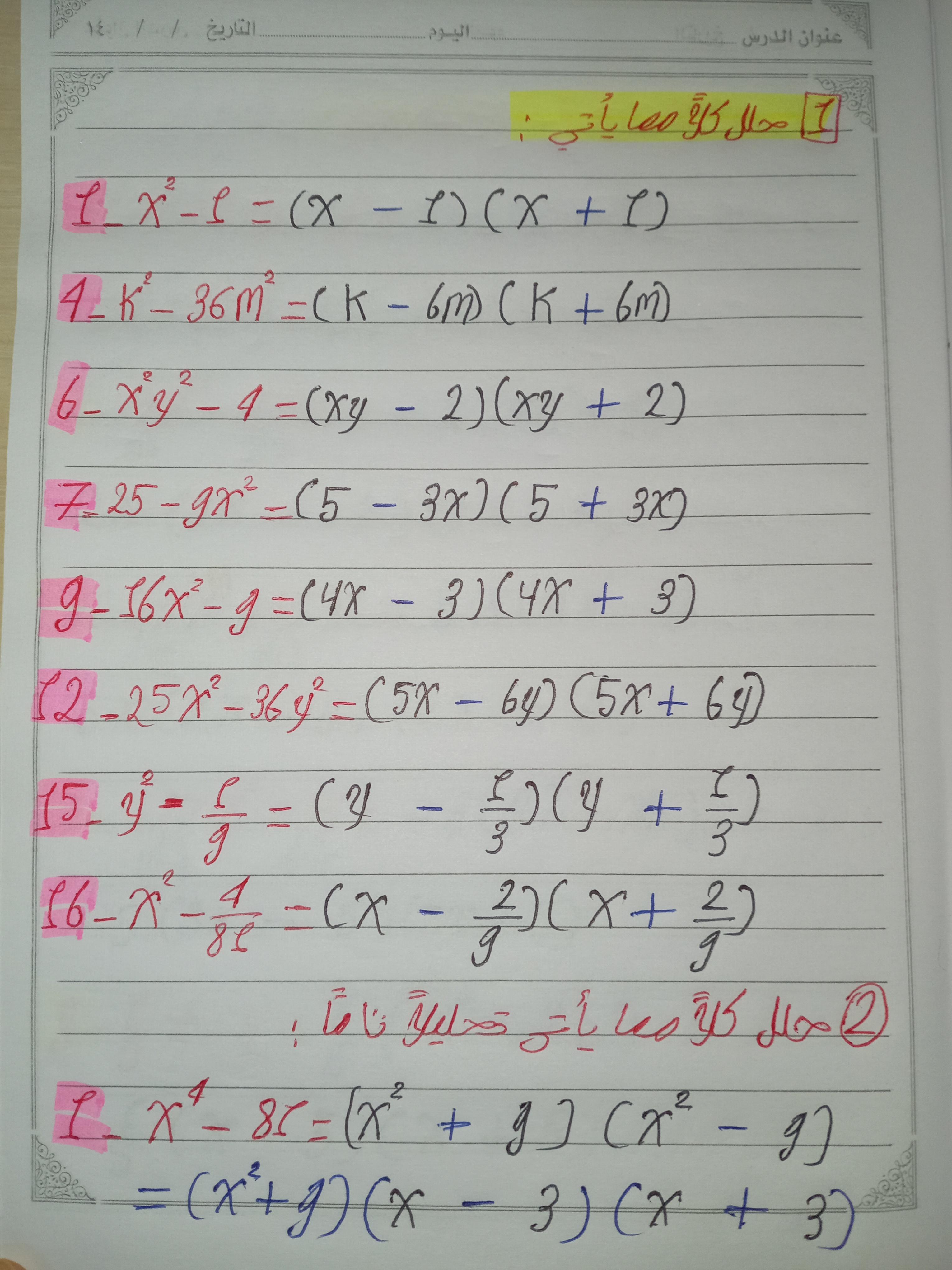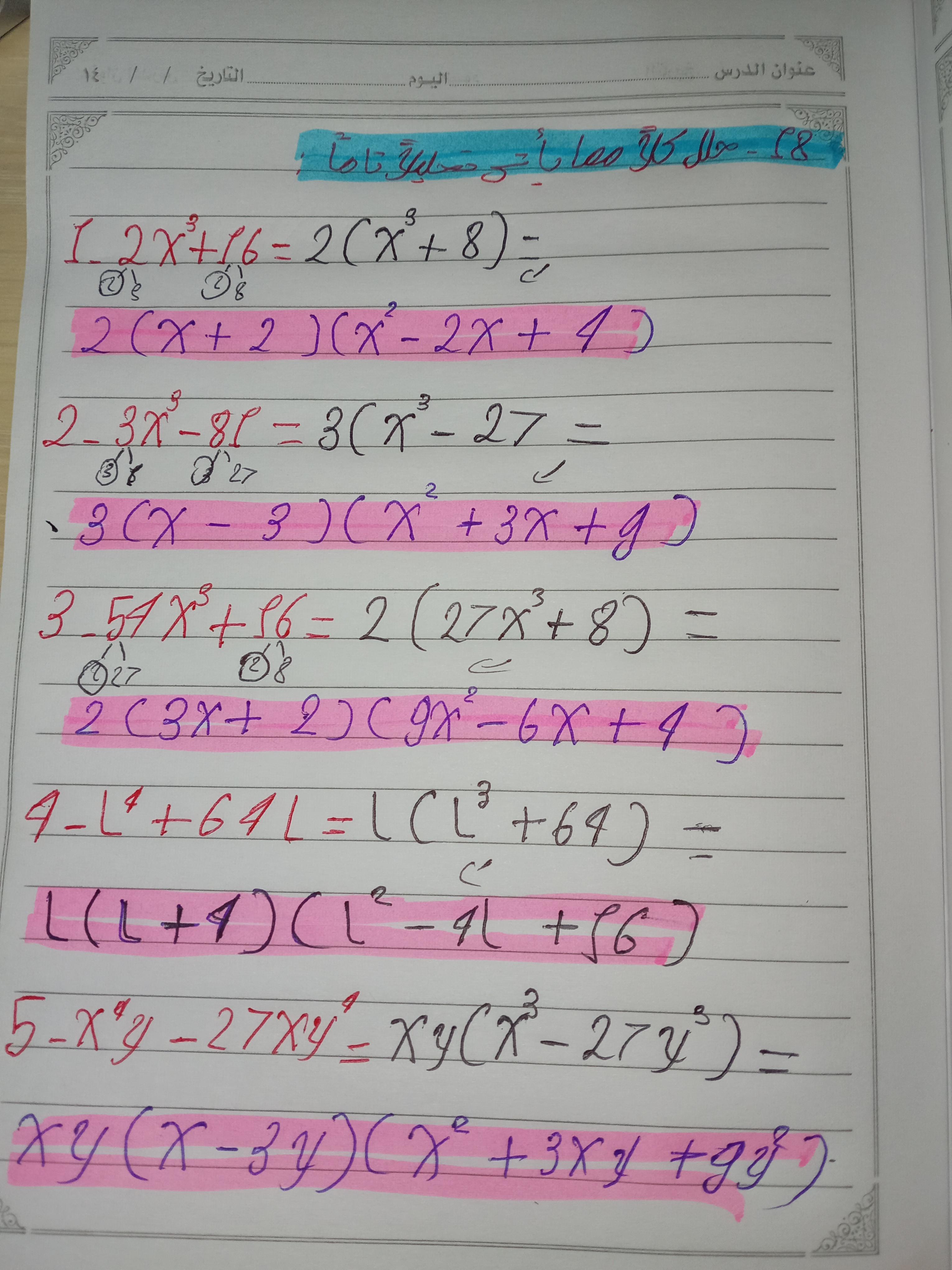 تم اليوم شرح تحليل الفرق ومجموع بين مكعبين