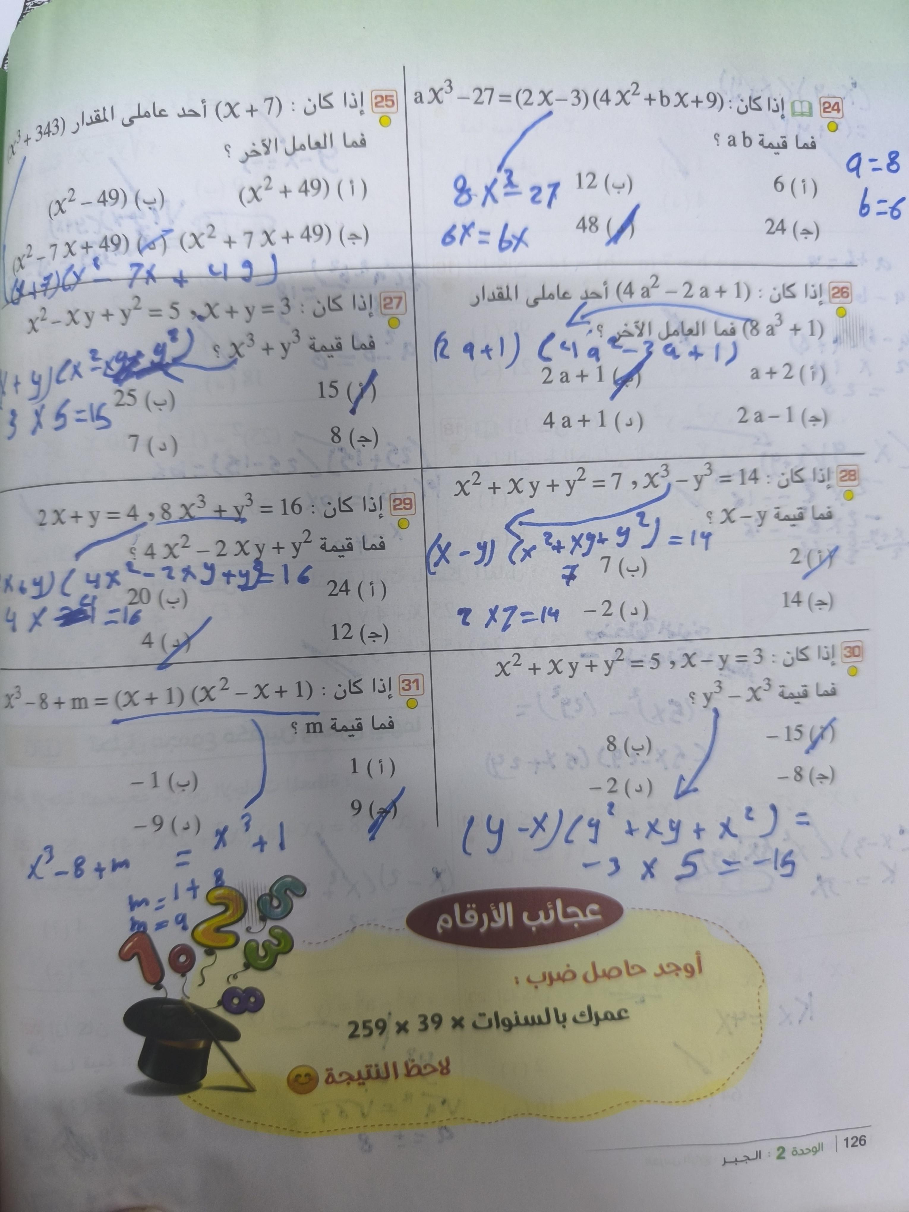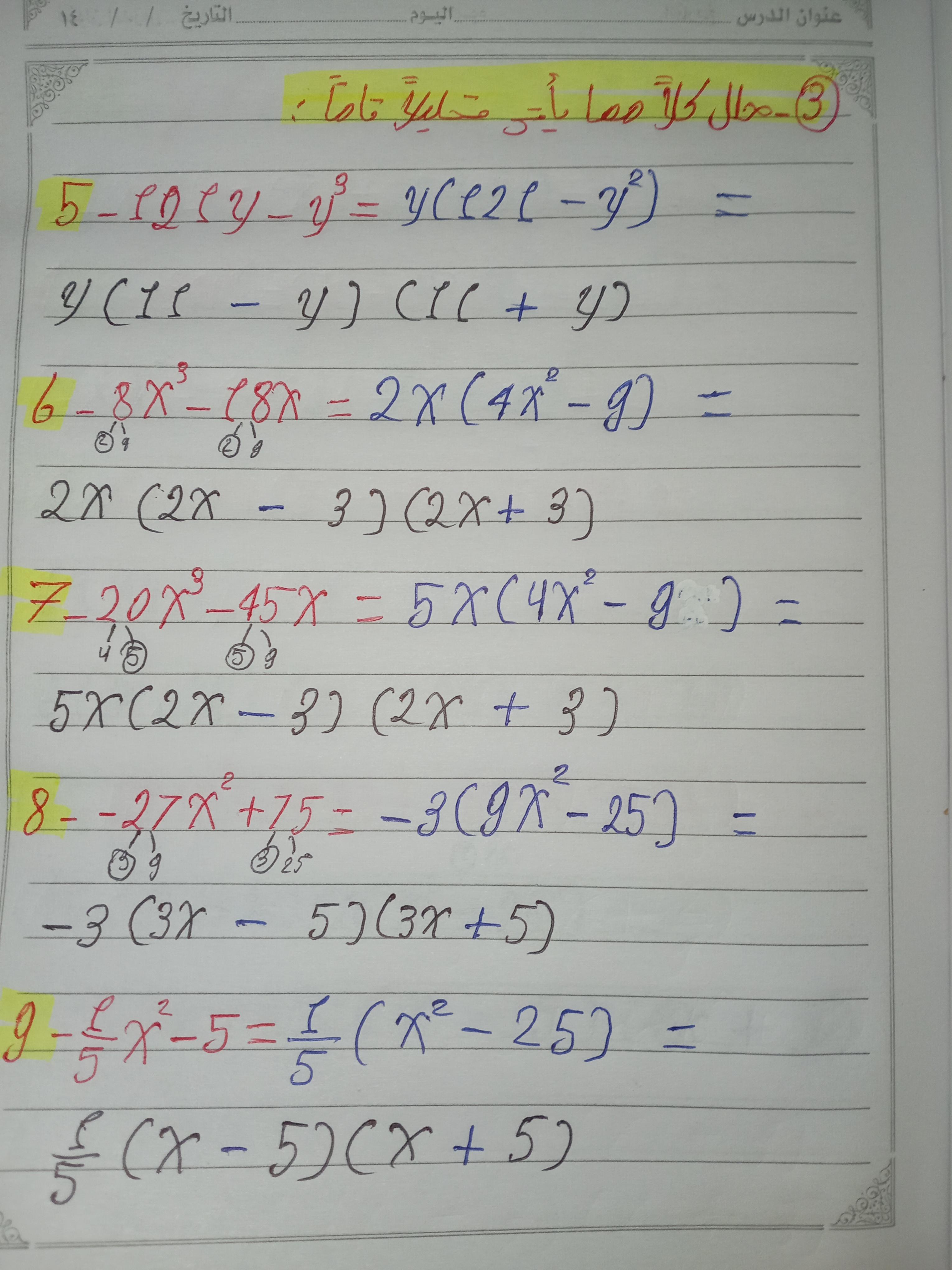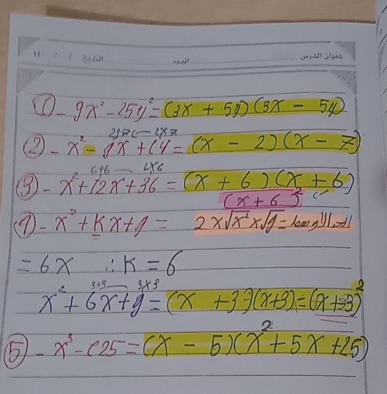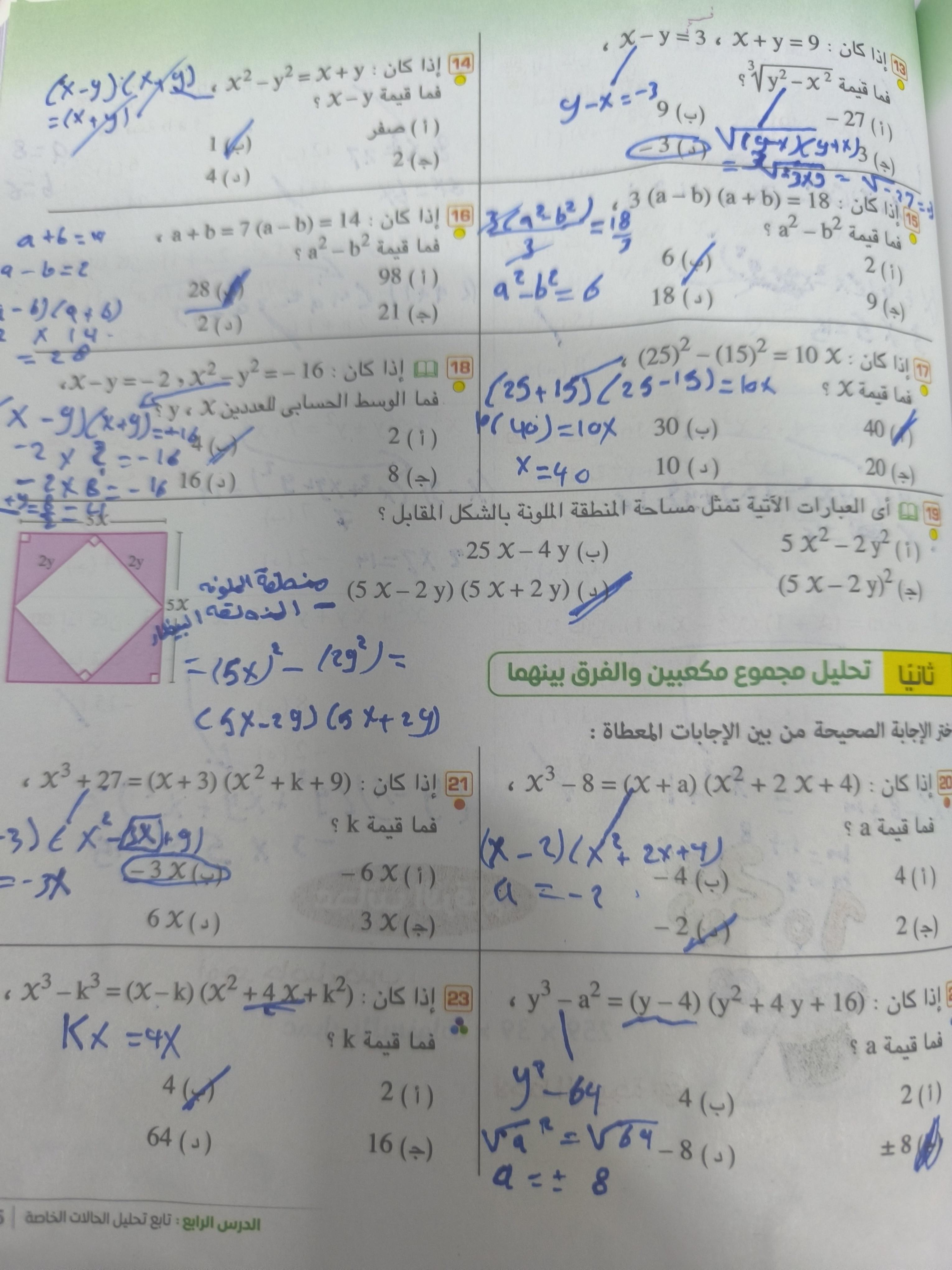 تم اليوم شرح تحليل الفرق ومجموع بين مكعبين