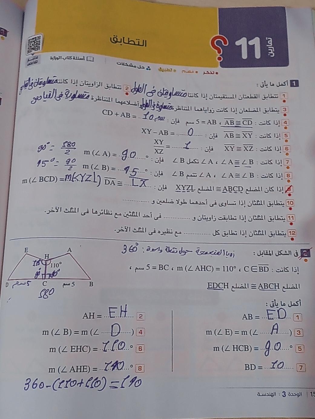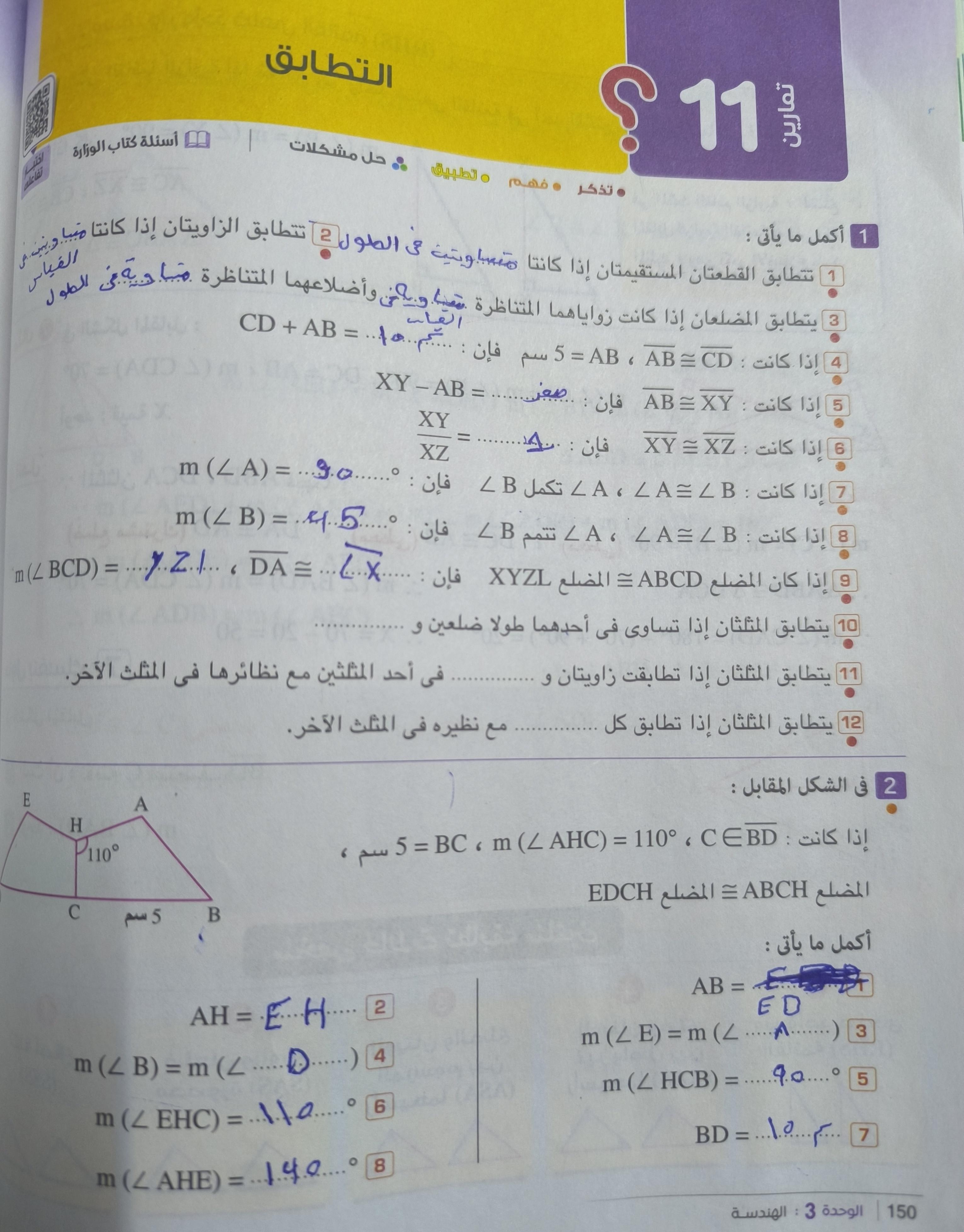 انهاردة خدنا التطابق جزء اول من الدرس ودا الواجب