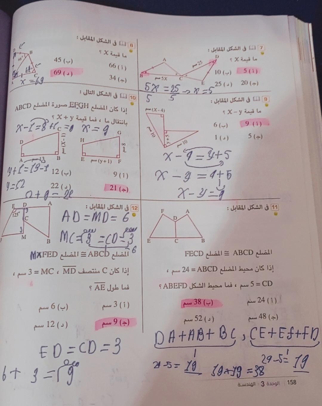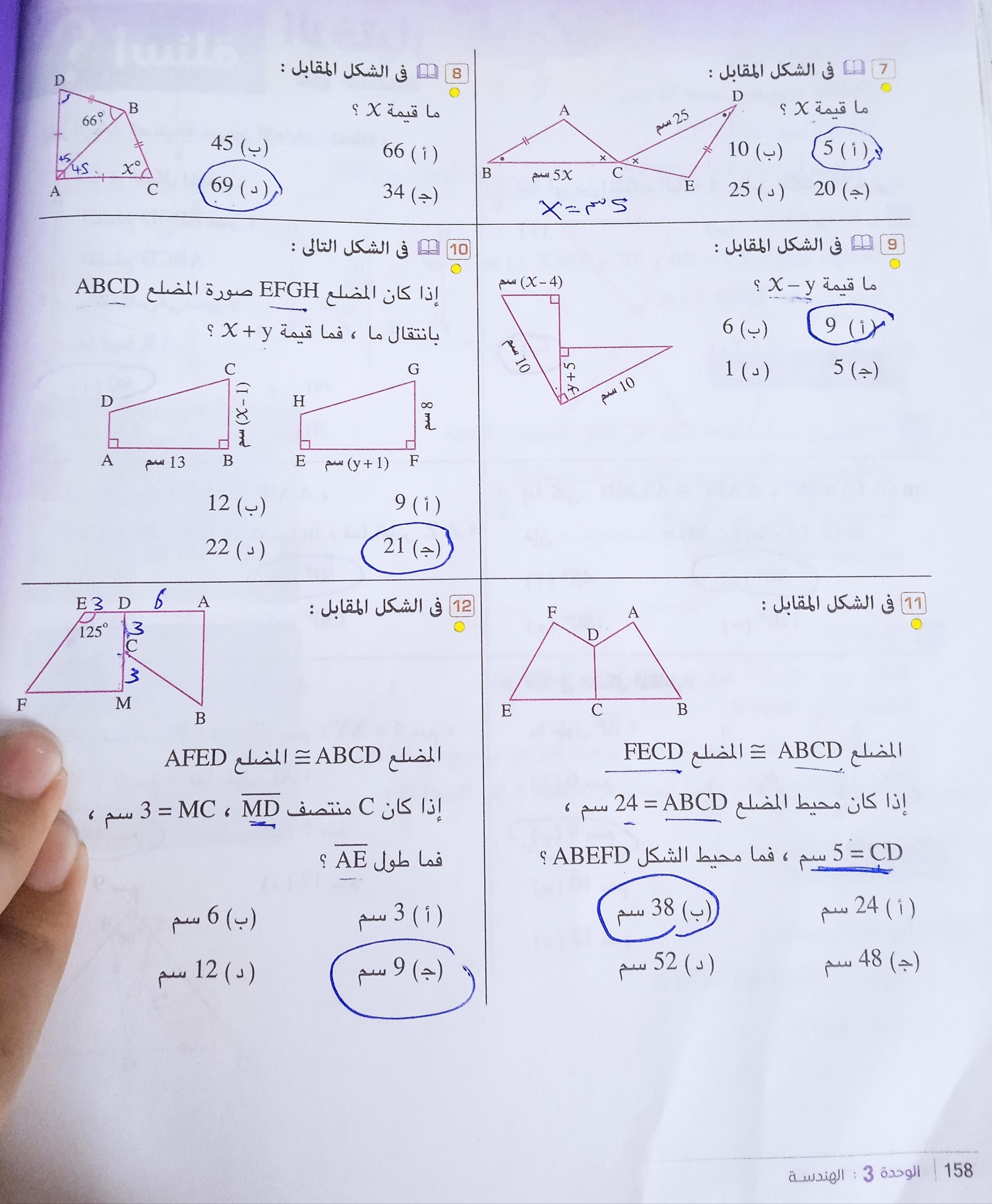 تم حل الواجب القديم الإختياري ص 157 و 158