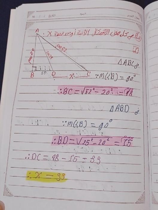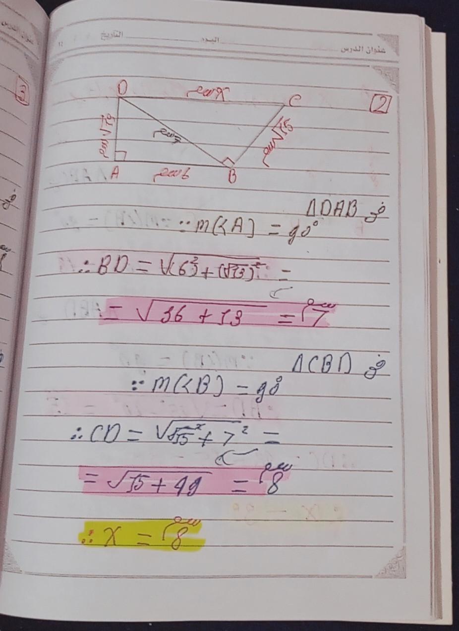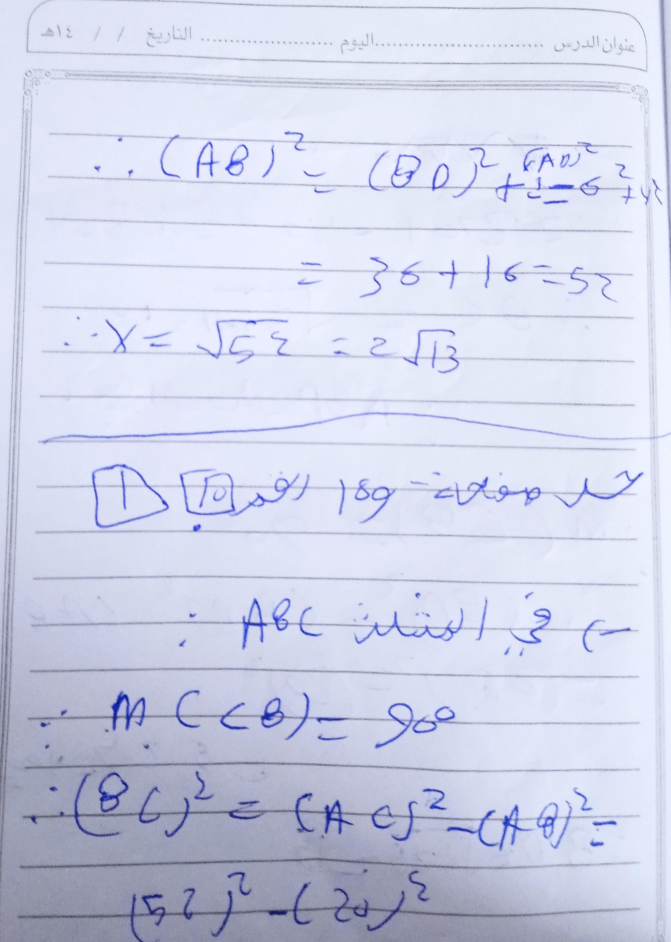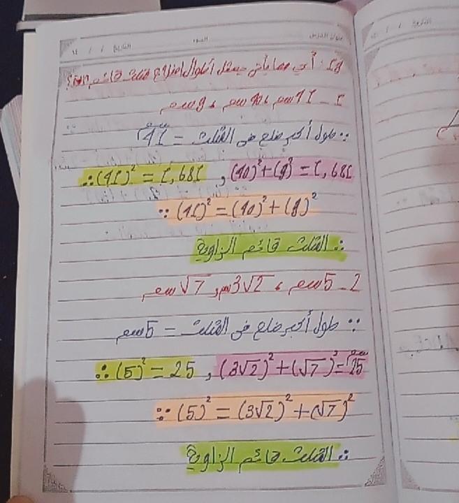 تم شرح نظريه فيثاغورث و حل تدريبات عليها