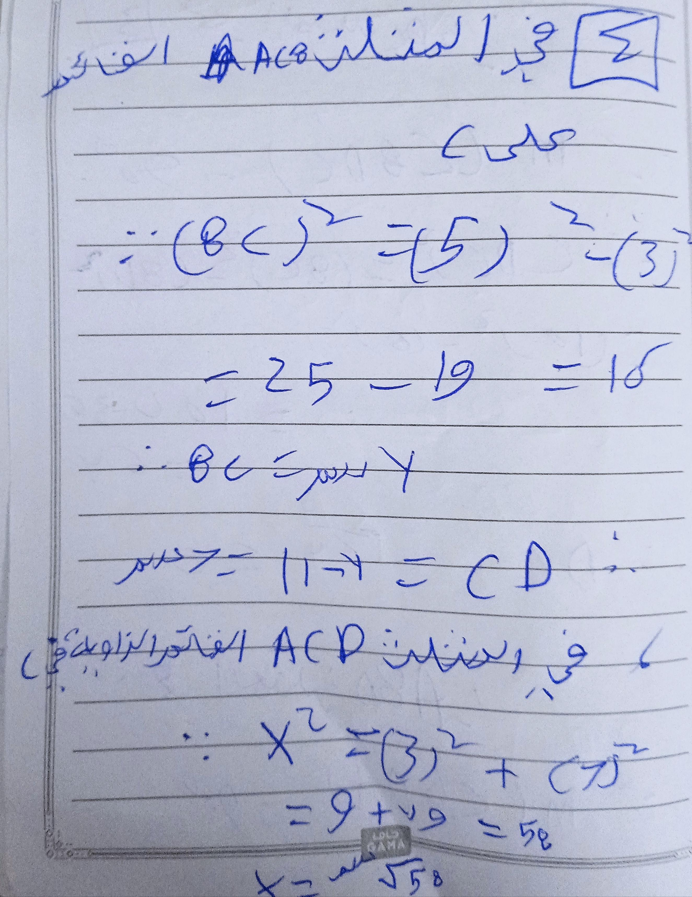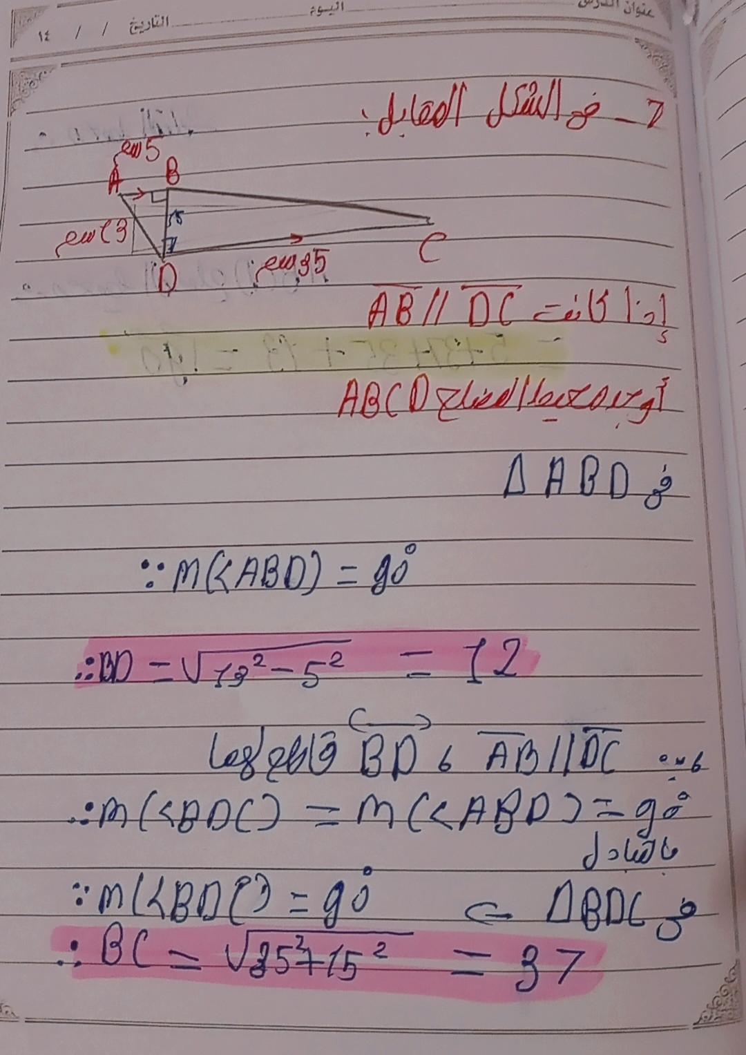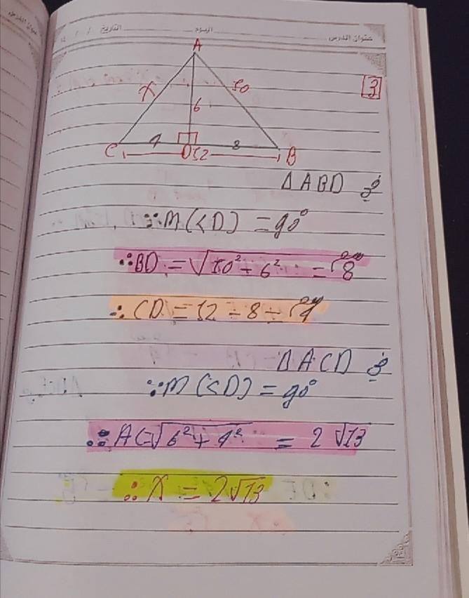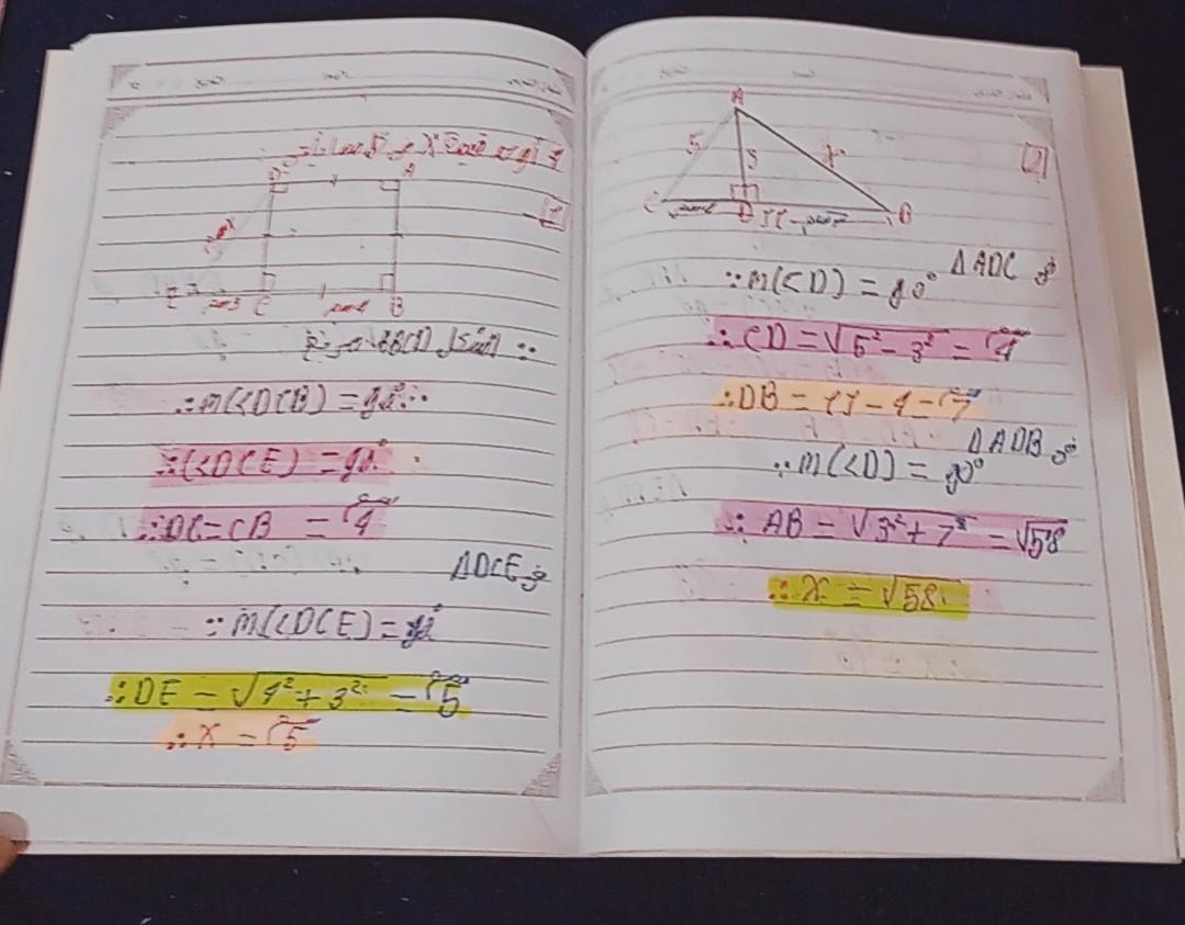 تم شرح نظريه فيثاغورث و حل تدريبات عليها