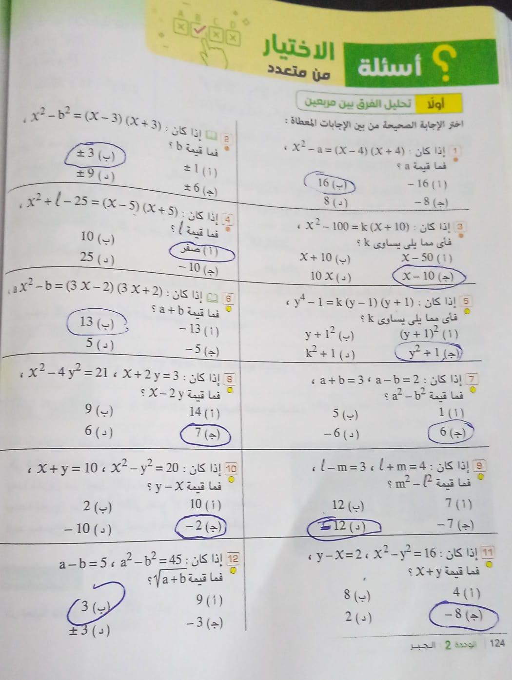 مسائل ص 124