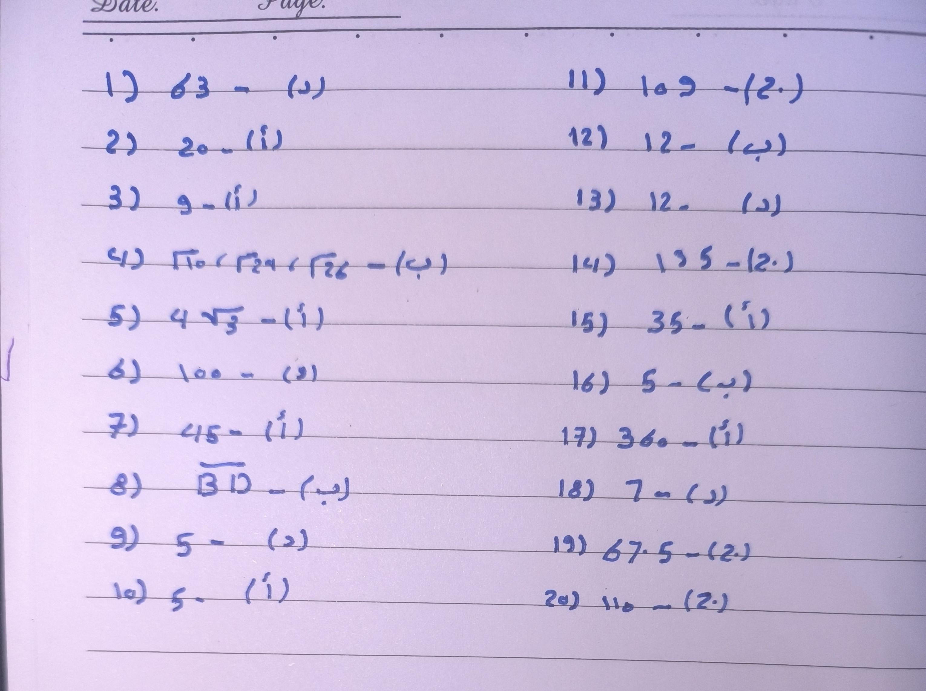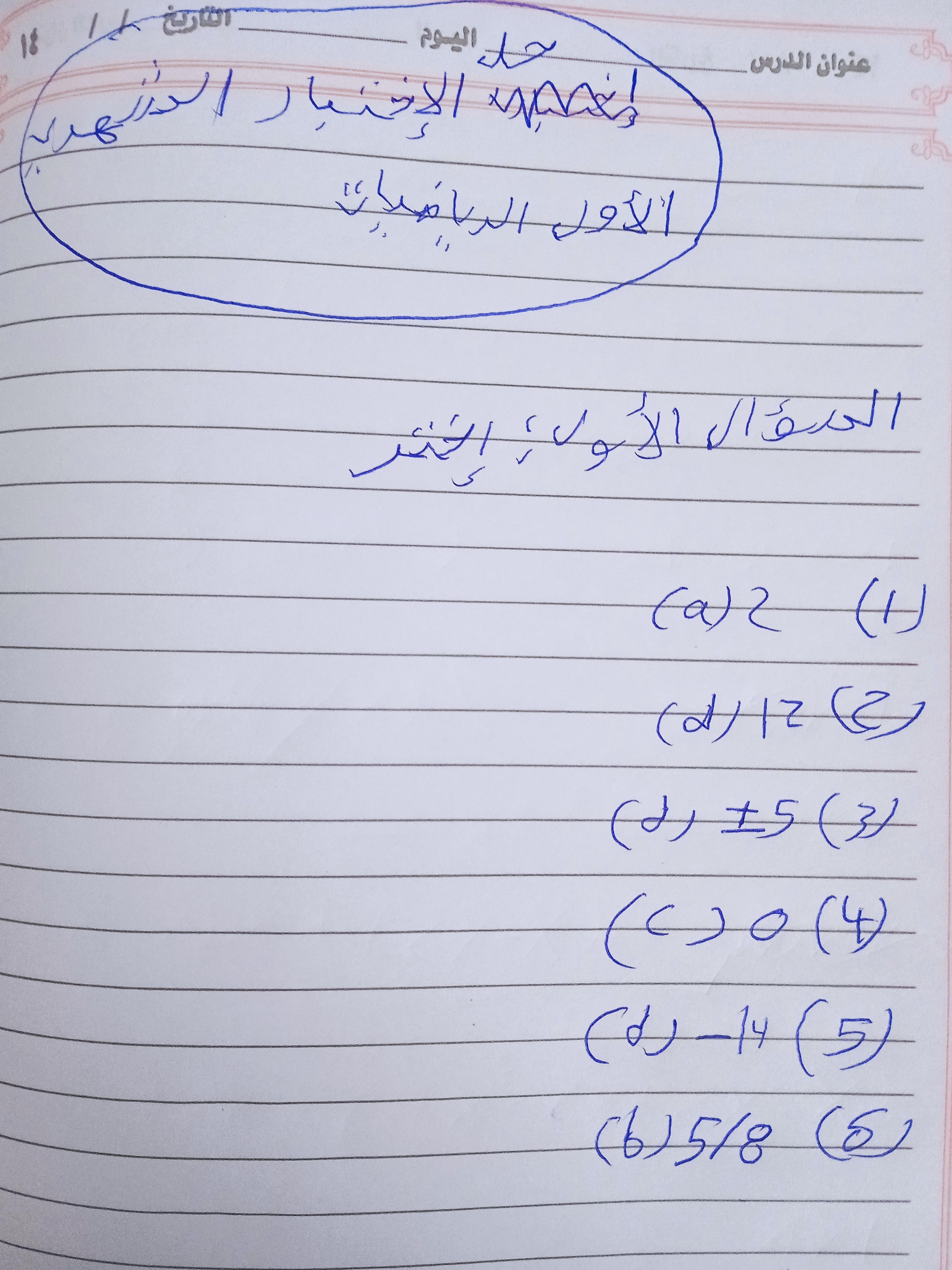 تم حل واجب الاختياري للرياضيات اليوم