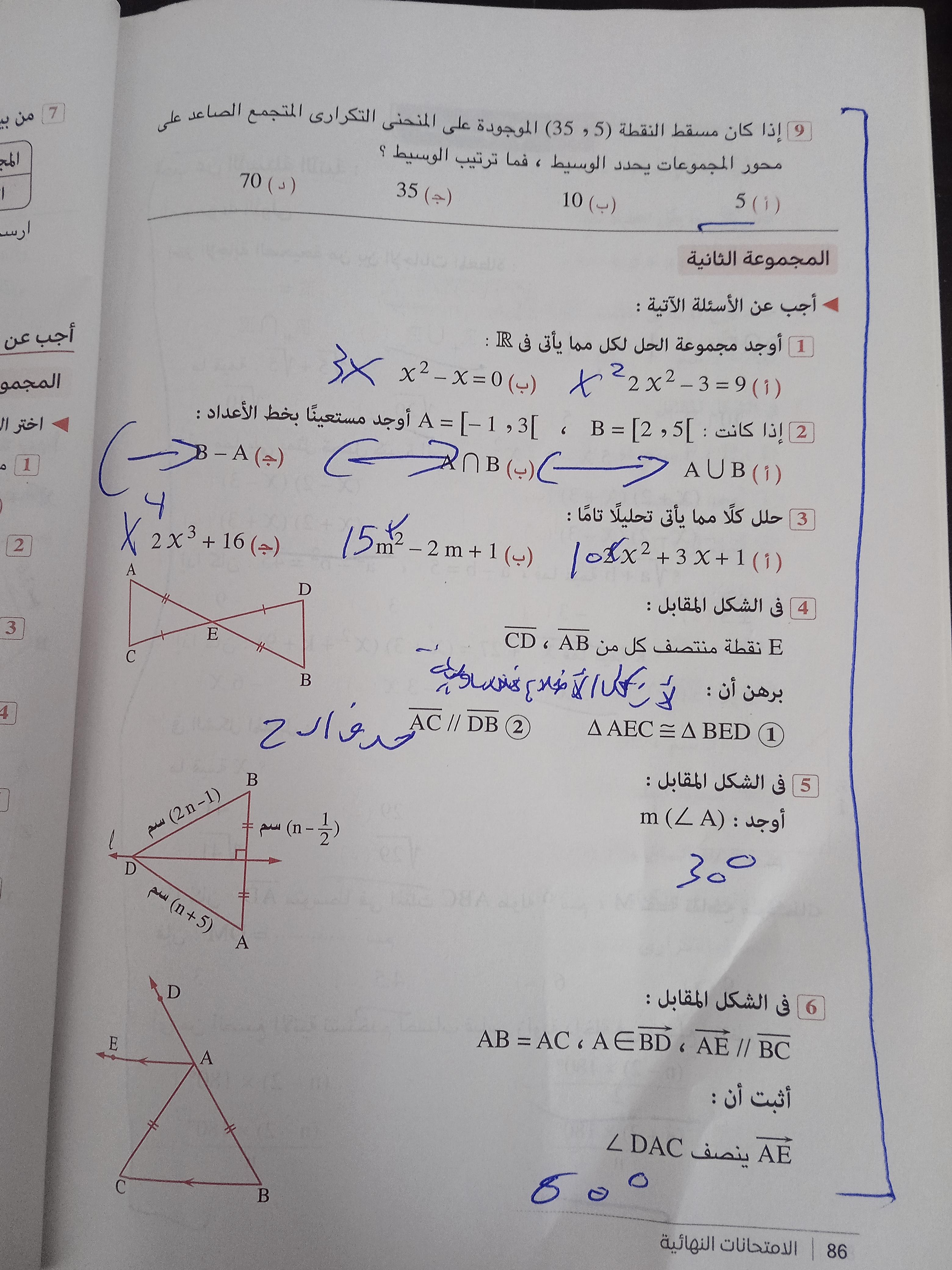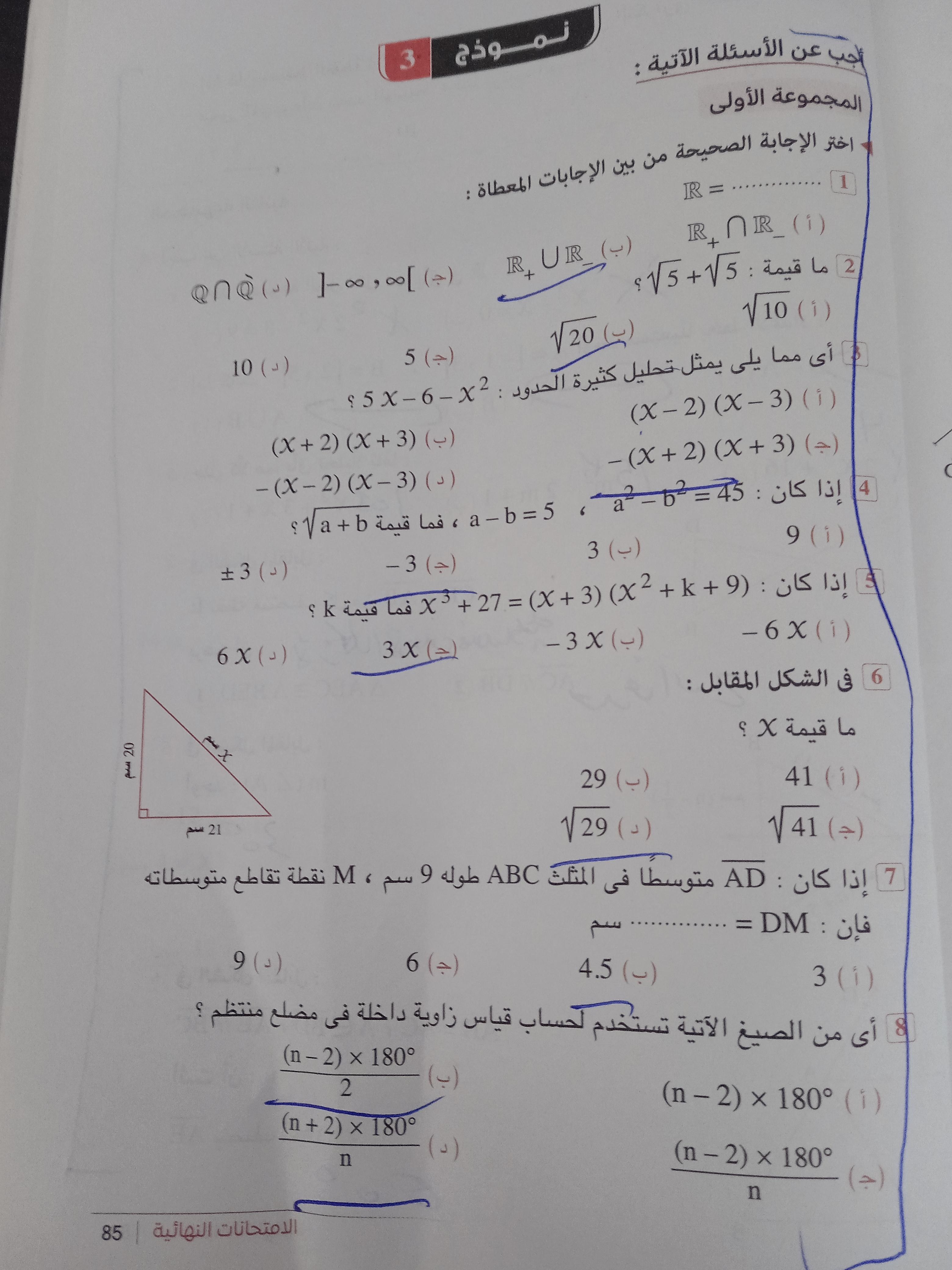 تم حل الإمتحان الشهري الثالث رياضيات