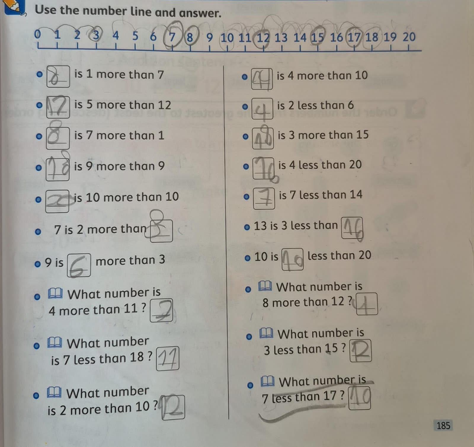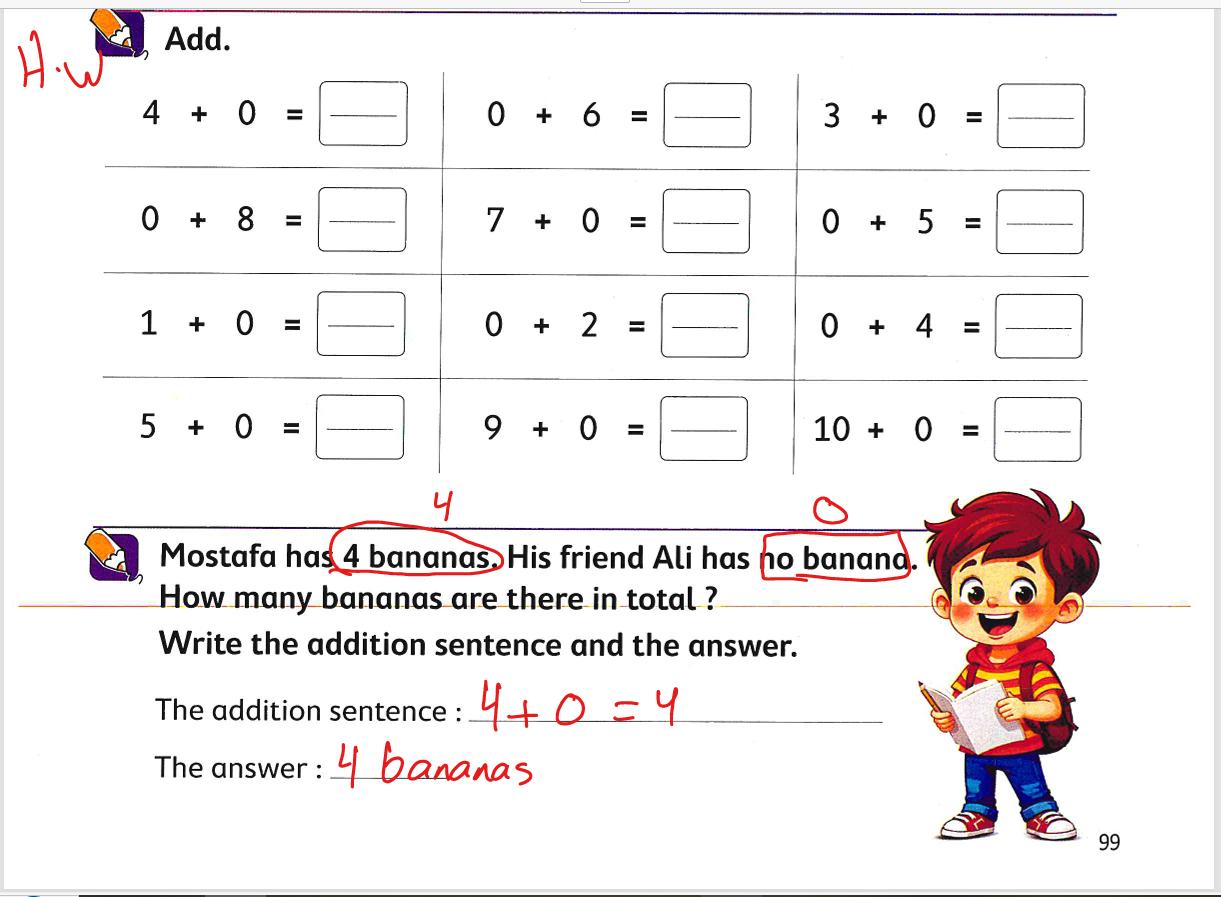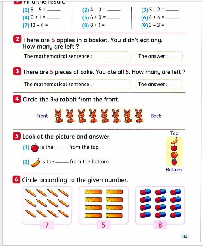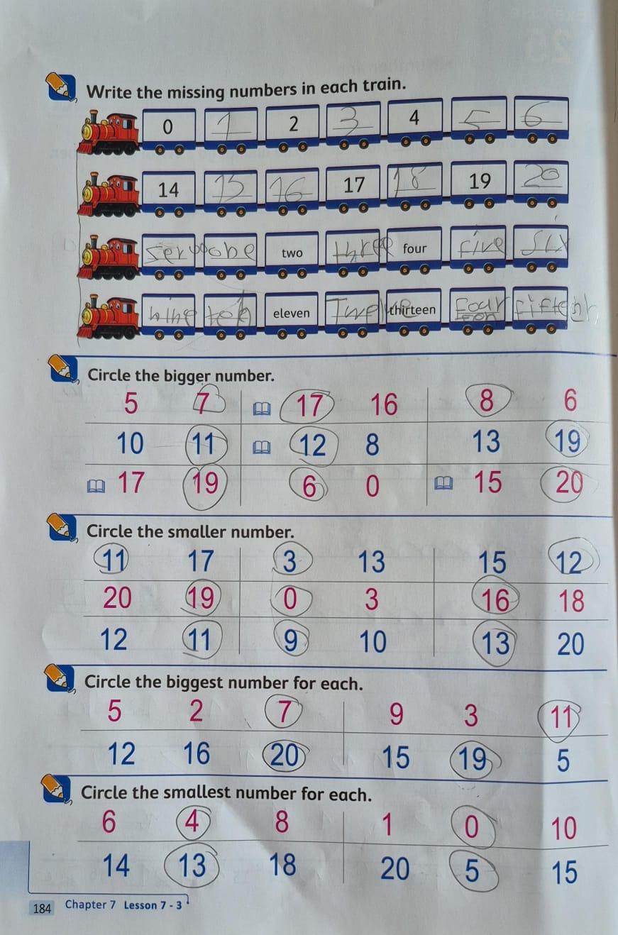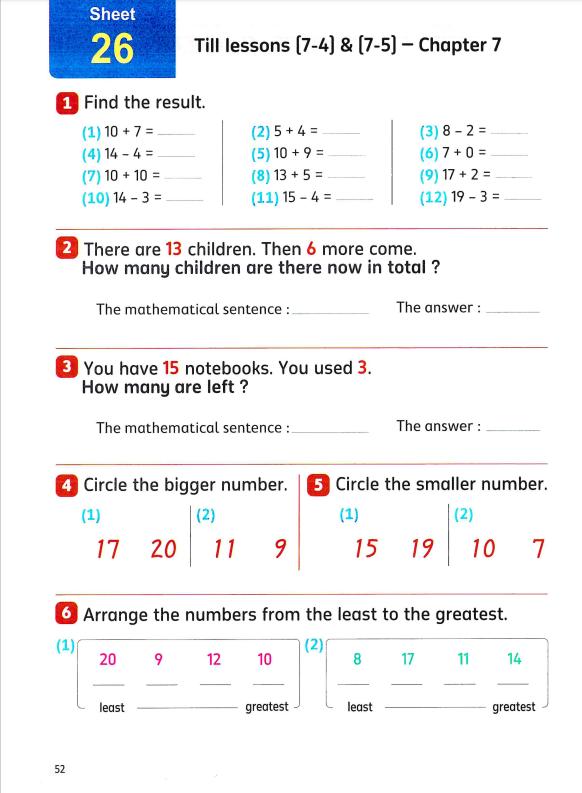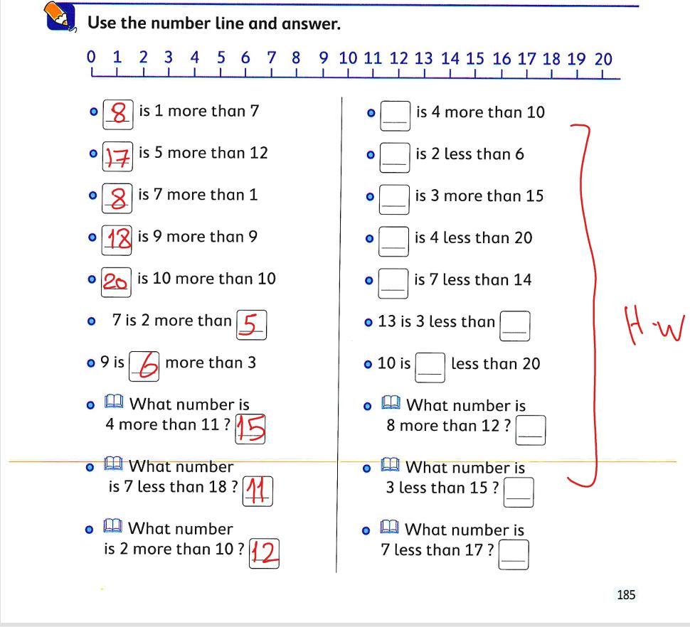 Revision on adding and subtracting memorize the numbers from 1 to 20 in words H.W p. 31 in the small book