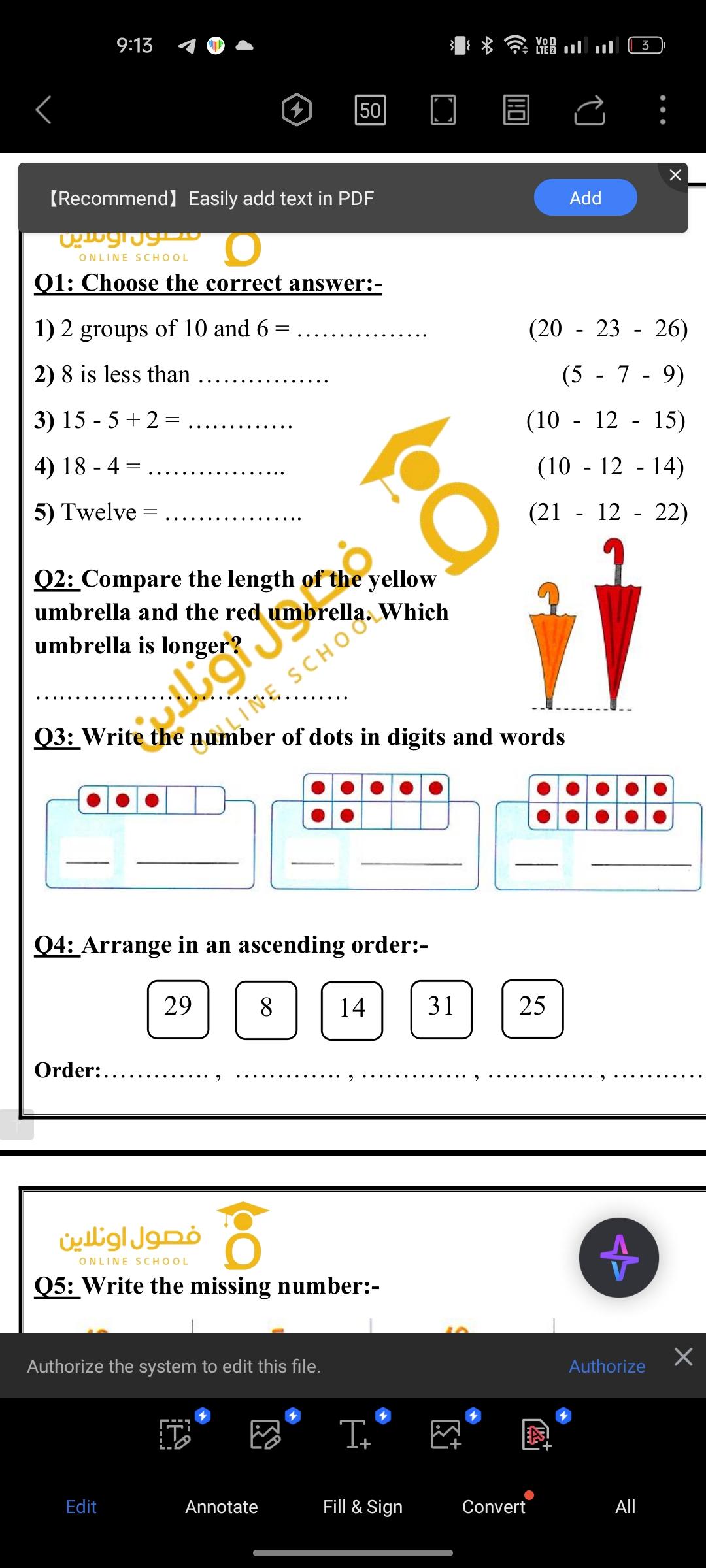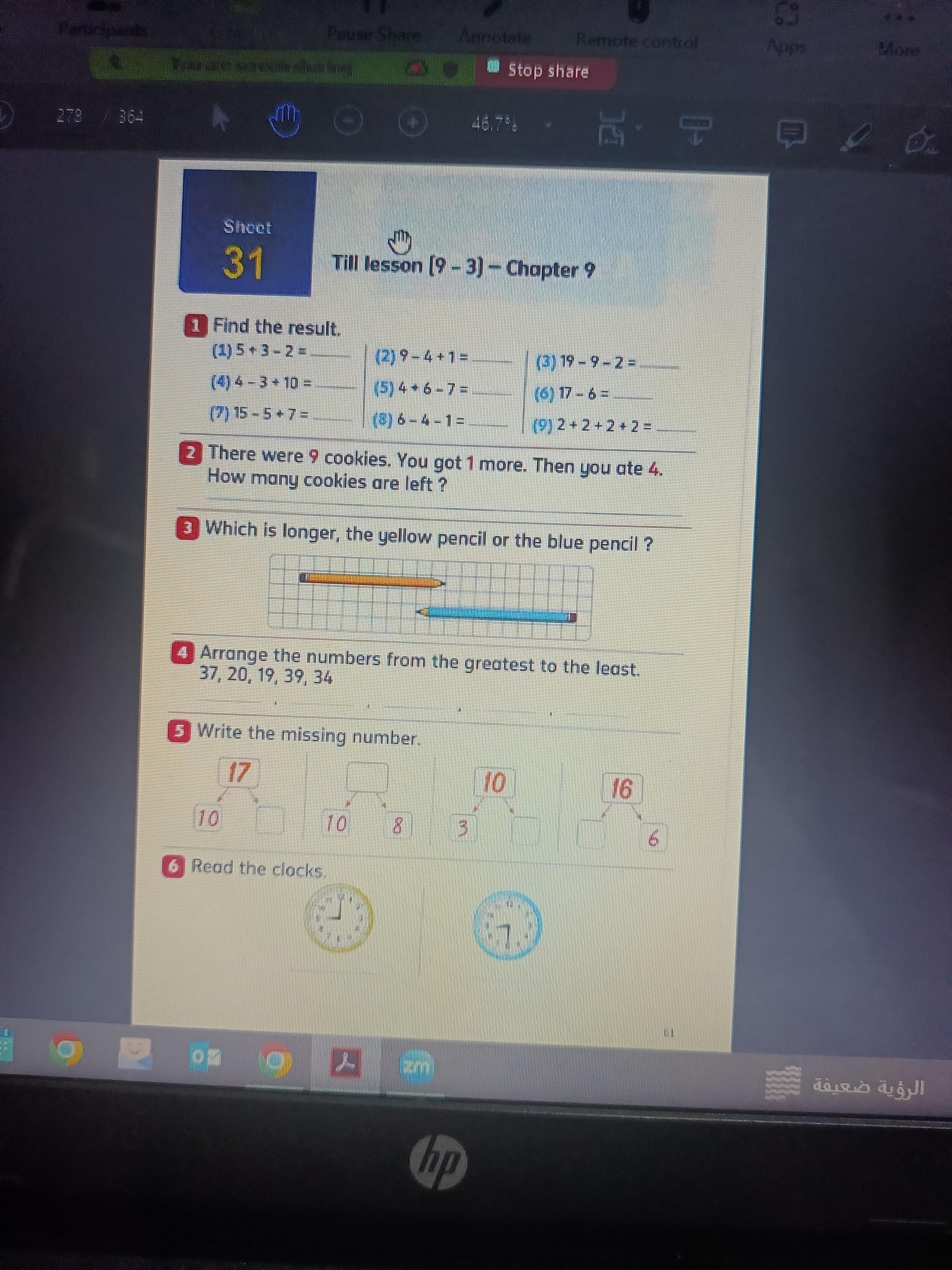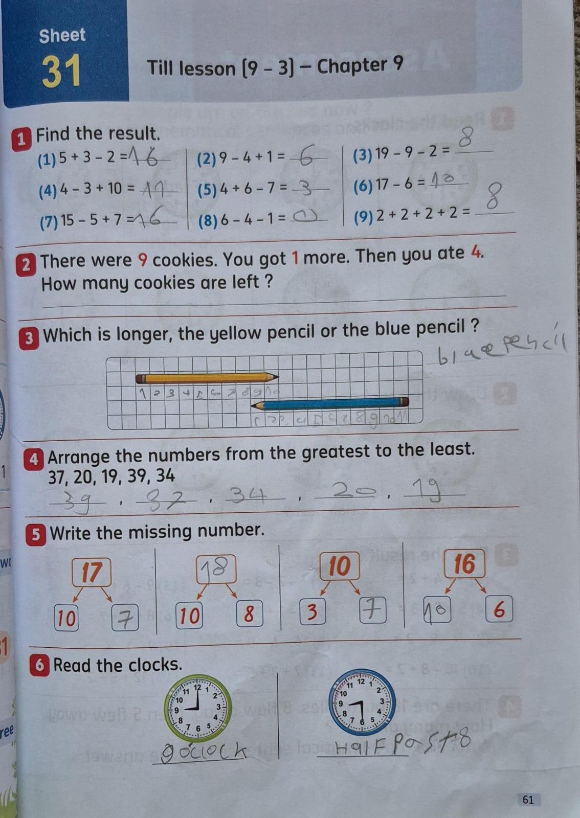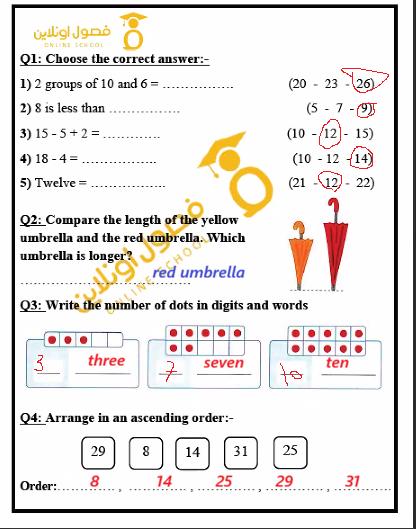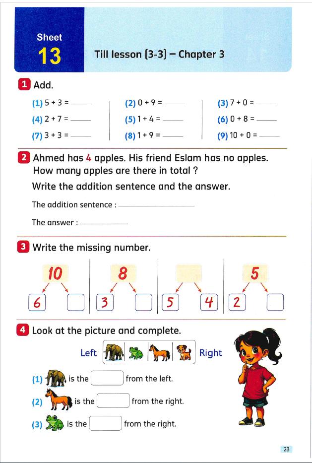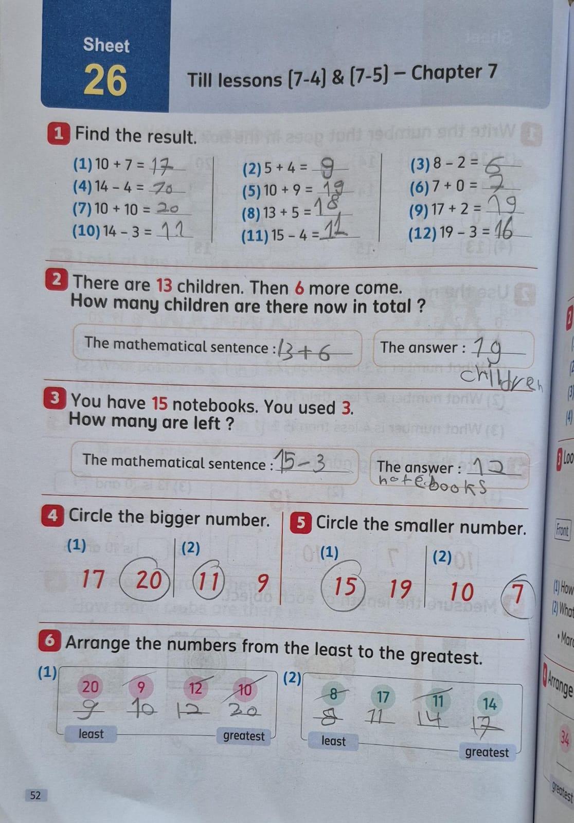 Revision on adding and subtracting memorize the numbers from 1 to 20 in words H.W p. 31 in the small book