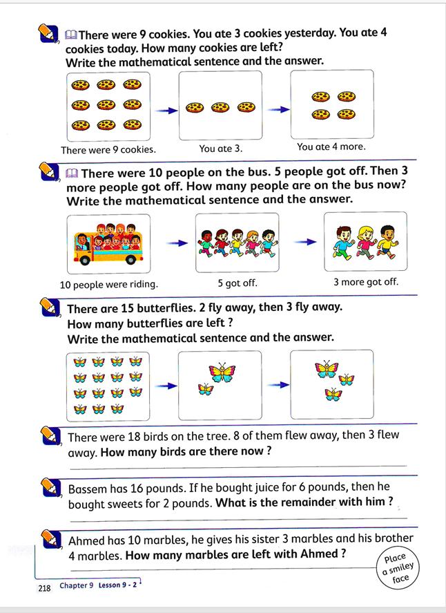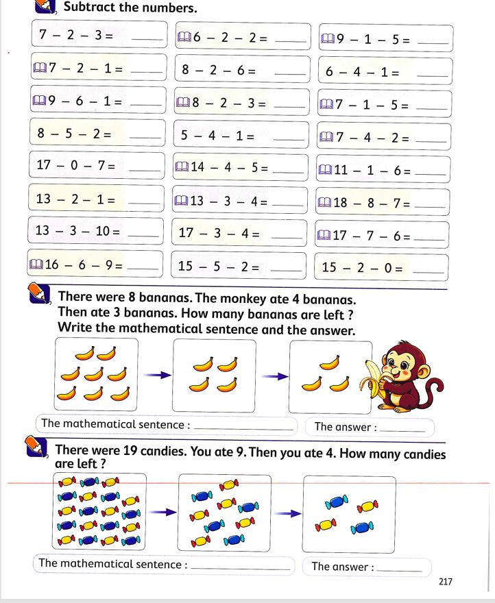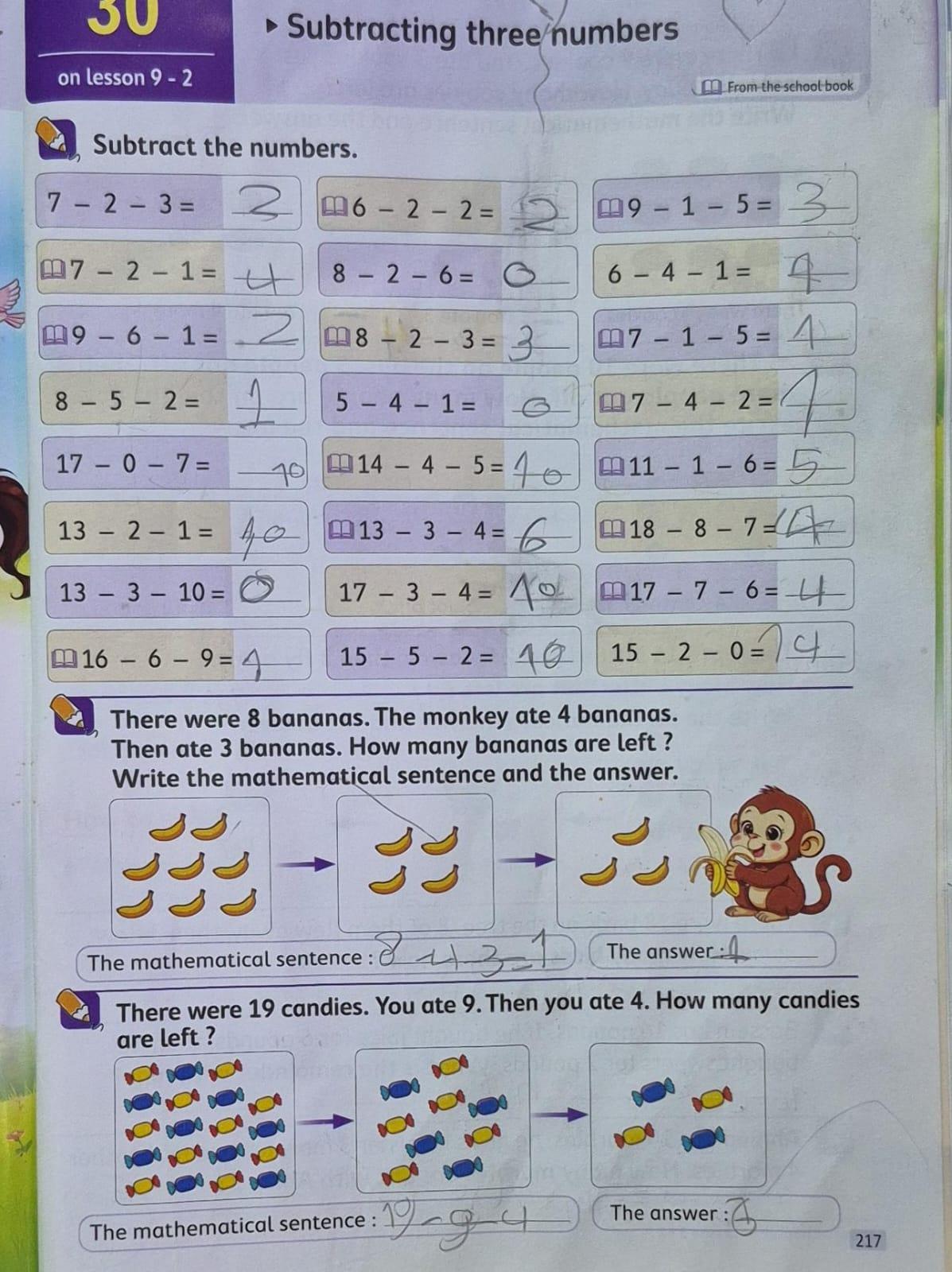 Subtracting 3 numbers H.W the rest of 217 and 218