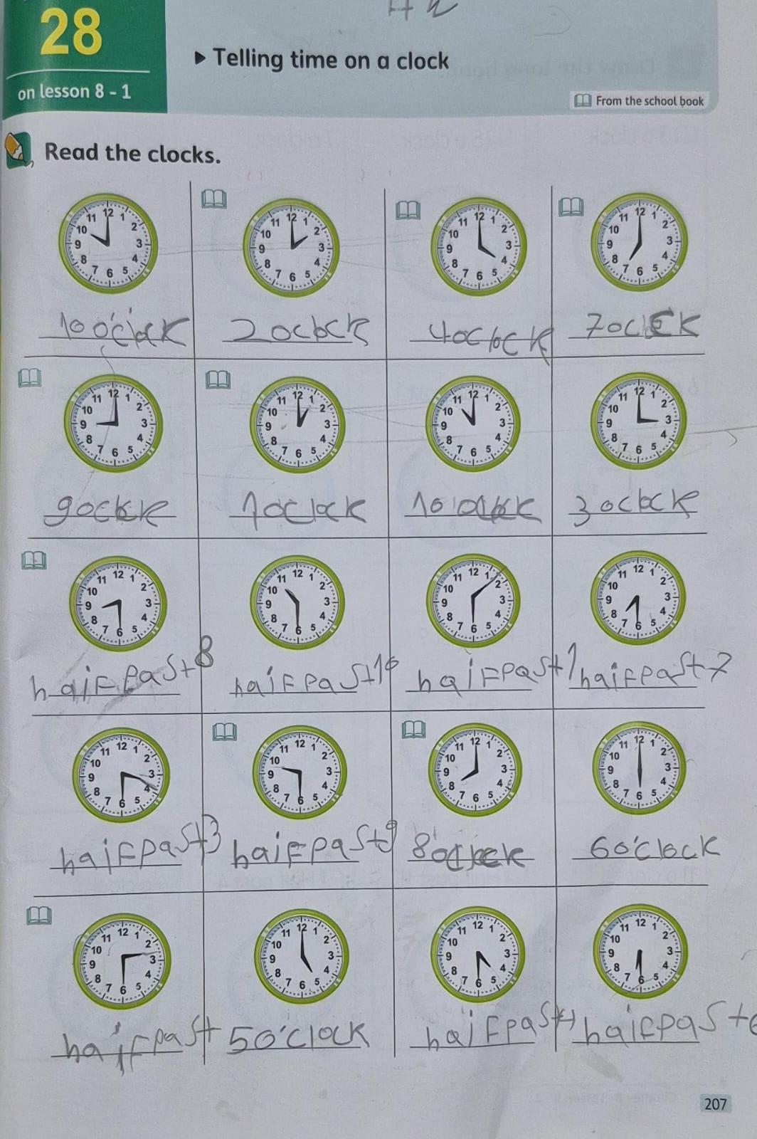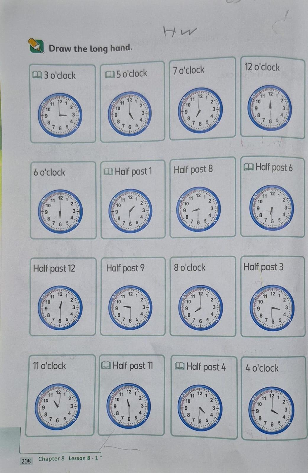 Telling time H.W the rest of p. 203, 207 and p. 208