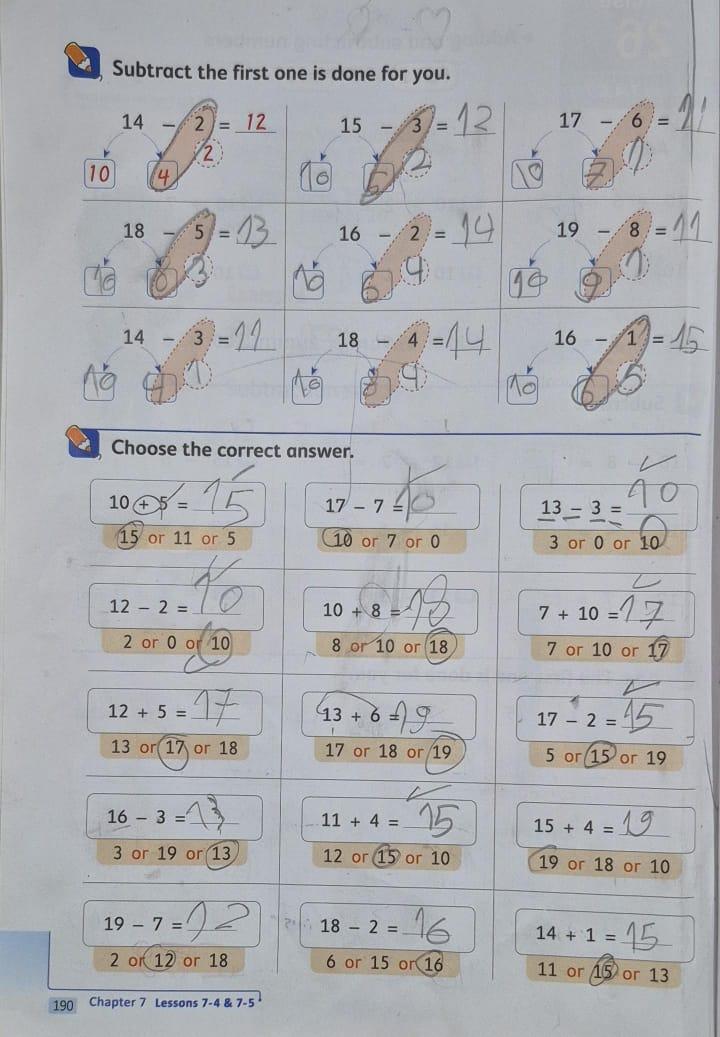 Follow adding and subtracting + Numbers greater than 20 H.W p.192,193 and 198