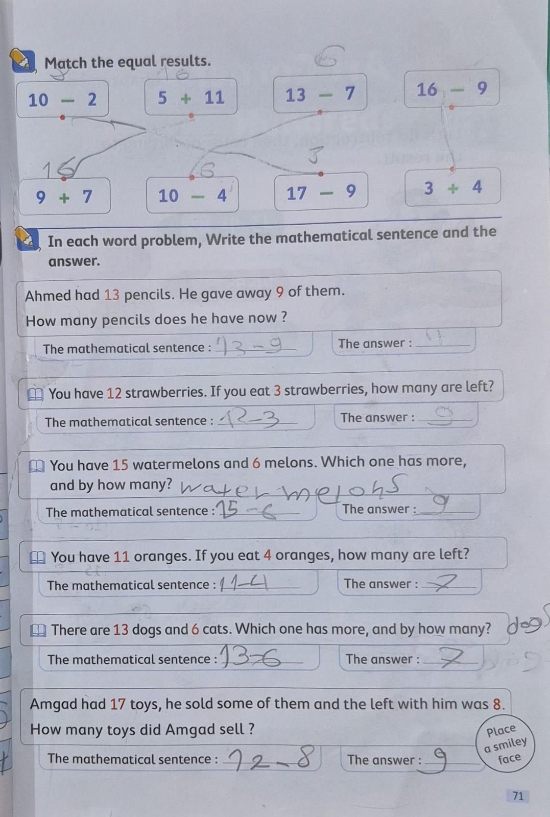 We finished today Subtracting H.w Page : 70/71/72 ارسم بطريق جميل زيك يا جياد 🥰