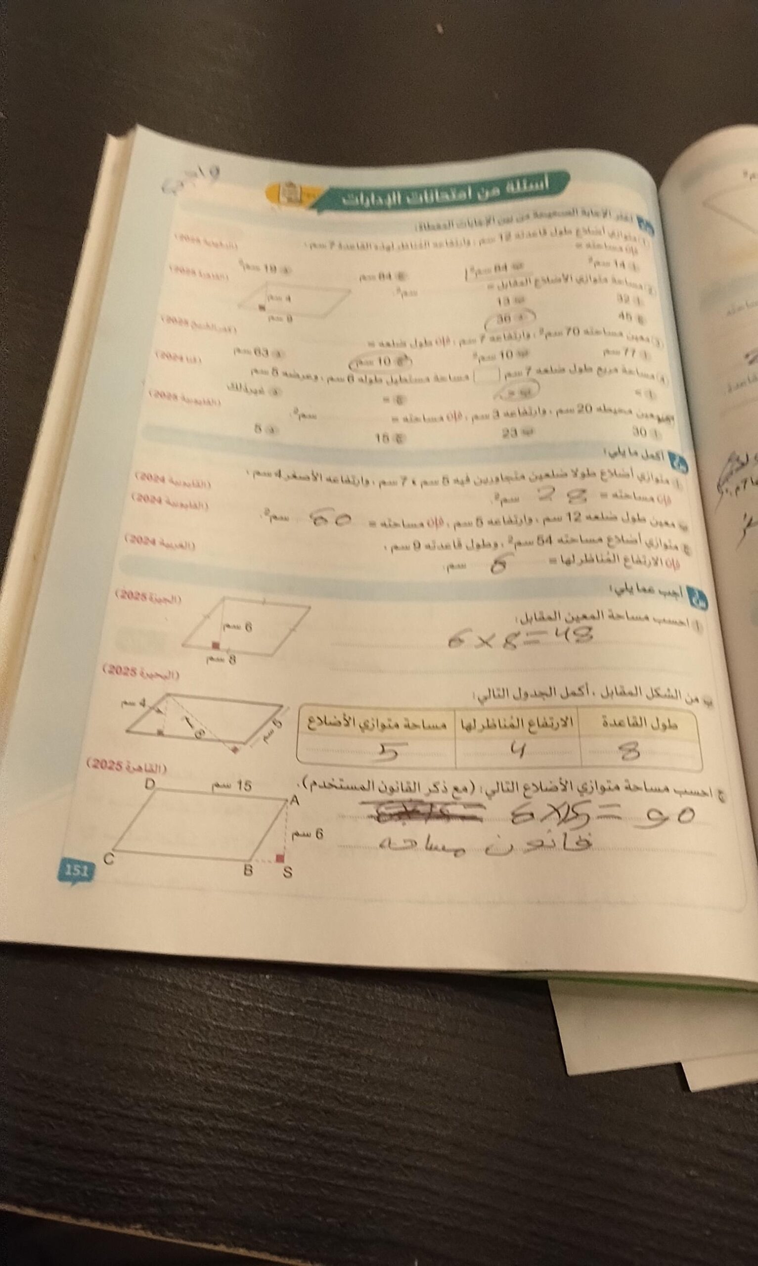 الواجب ص151+حفظ قوانين المساحه