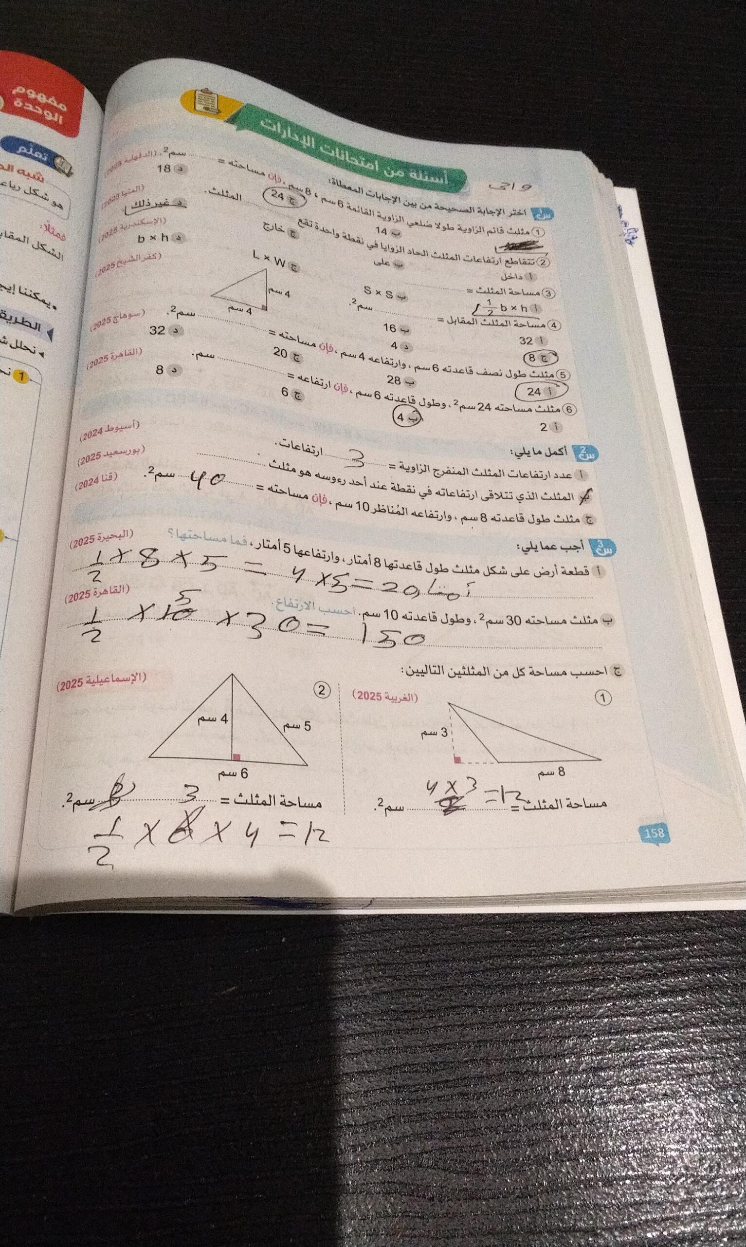 الواجب ص158+حفظ قوانين المساحه