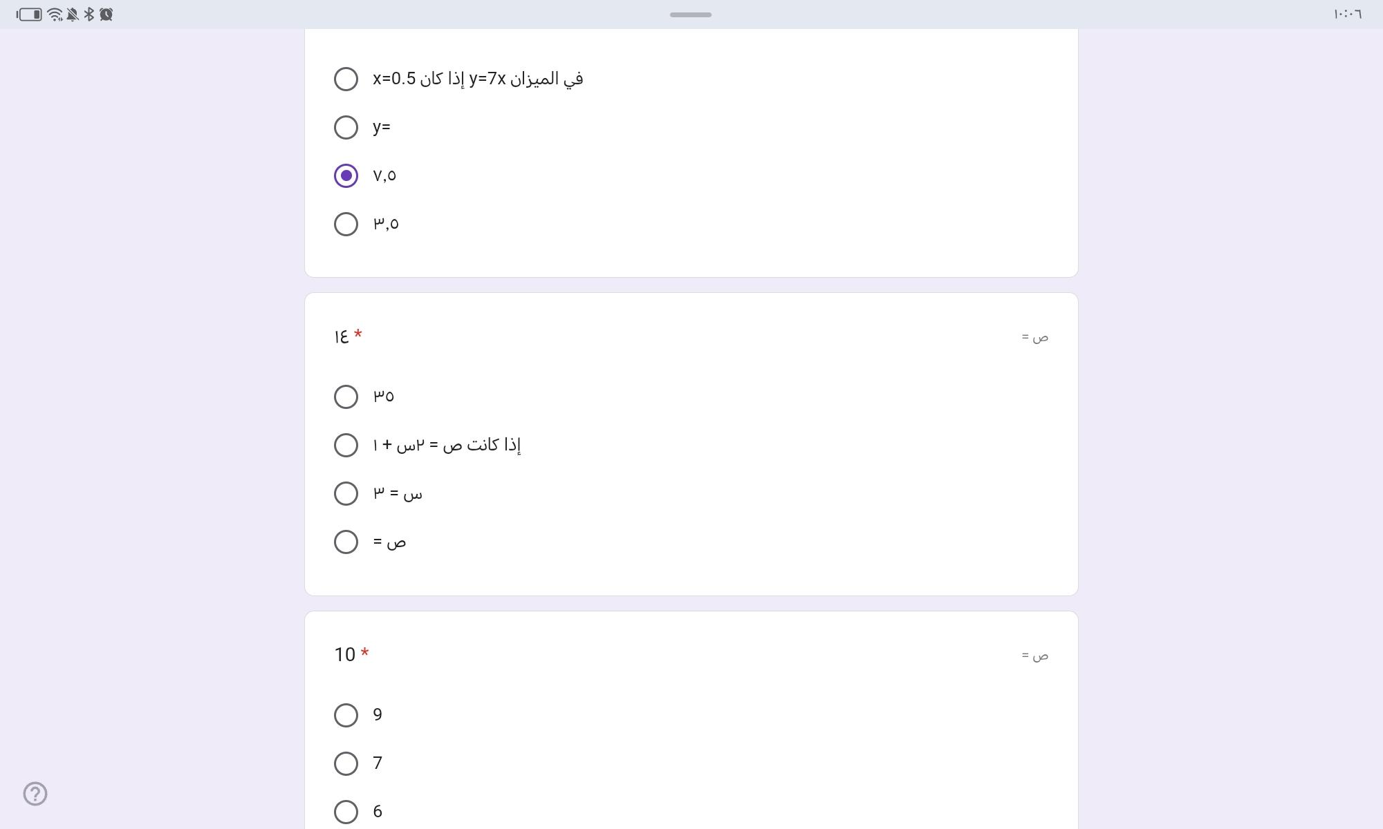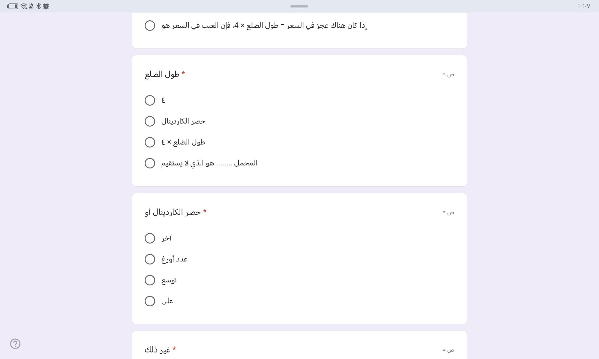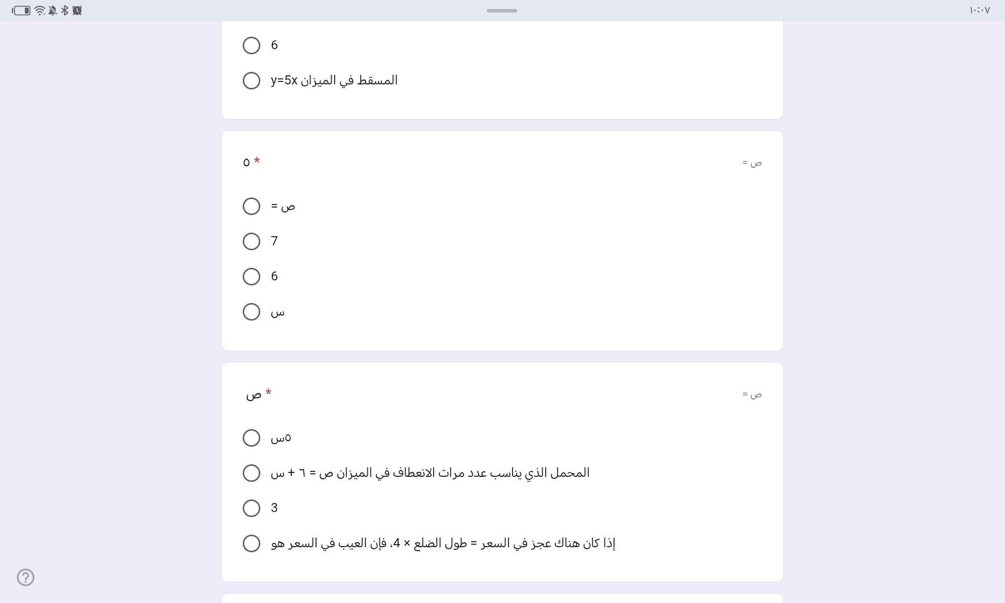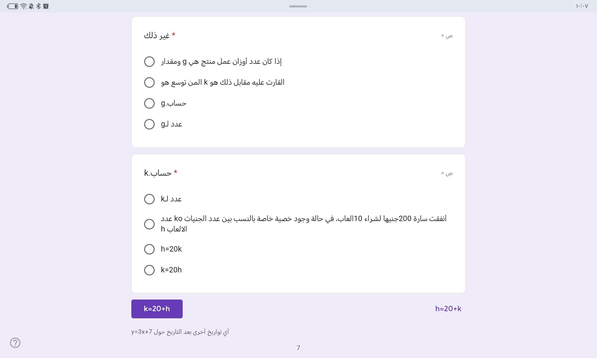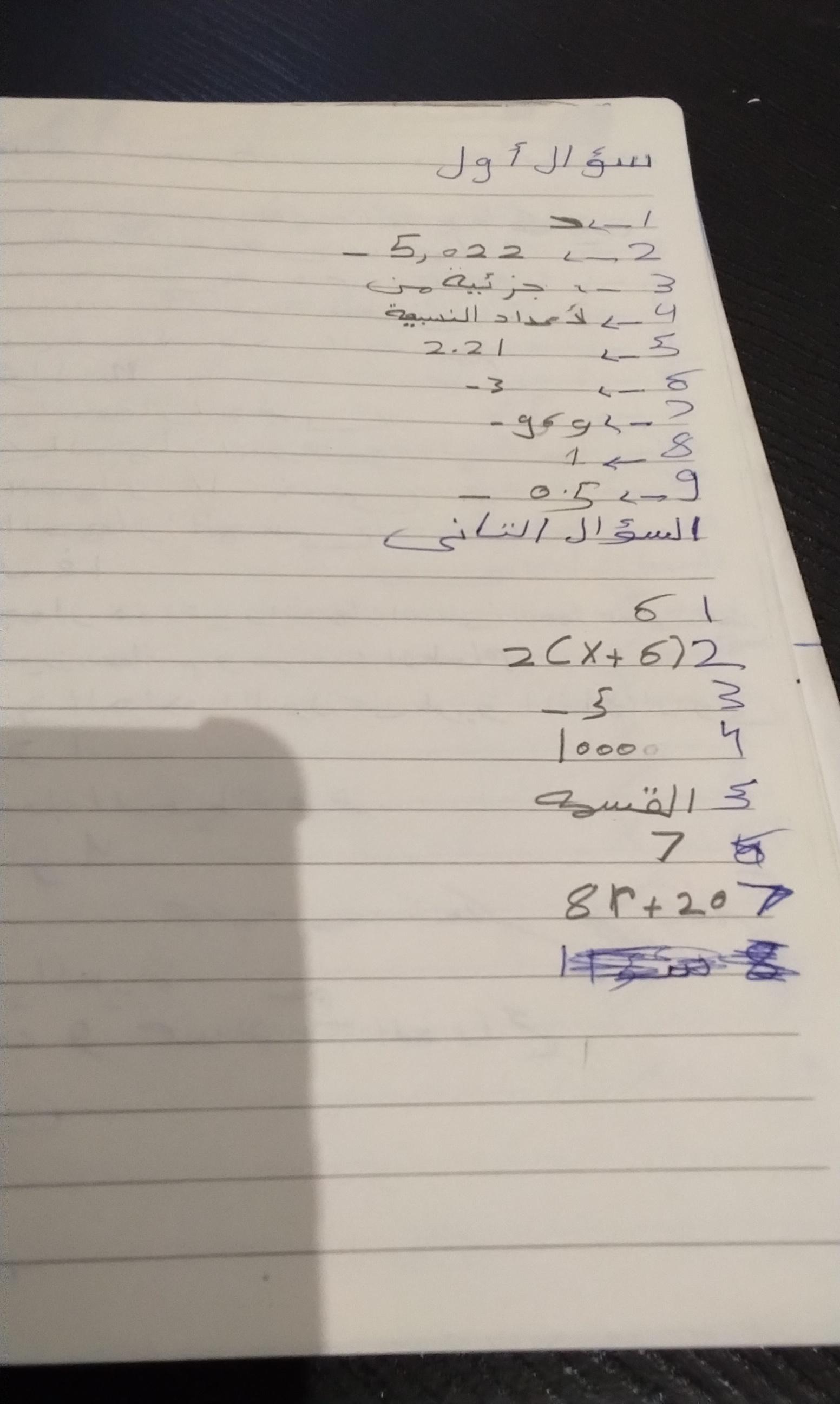 السؤال الاخير مش عارفه