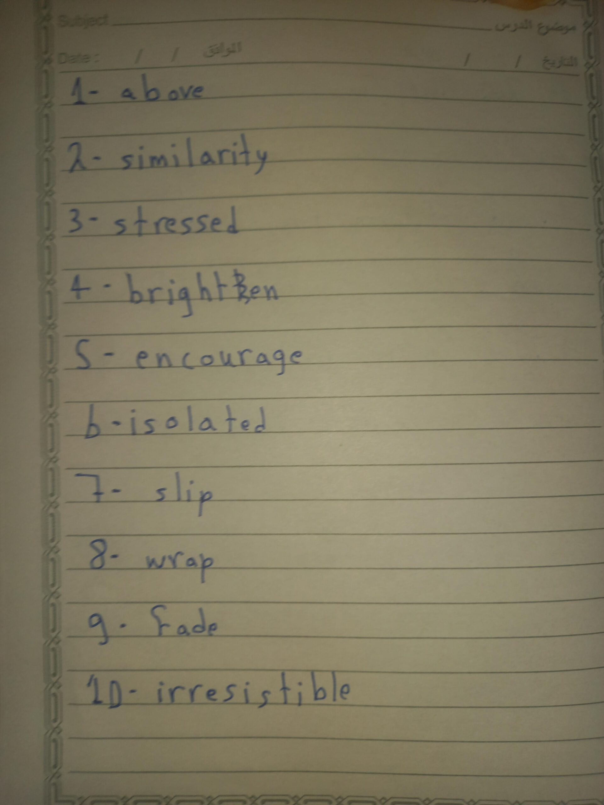 vocabulary note section
