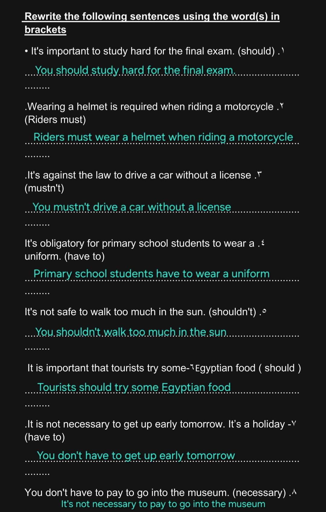 General review and exercises on unit 1