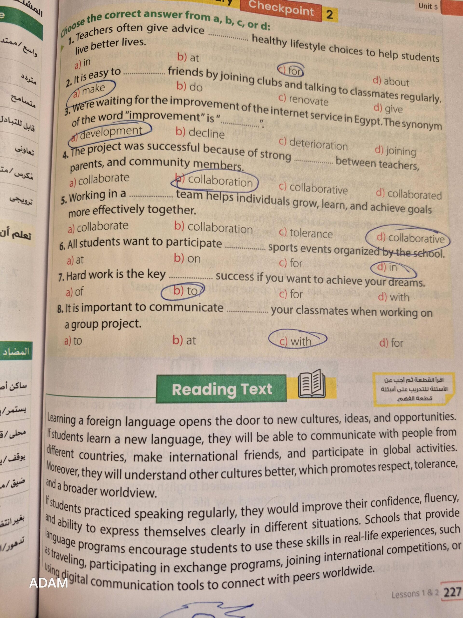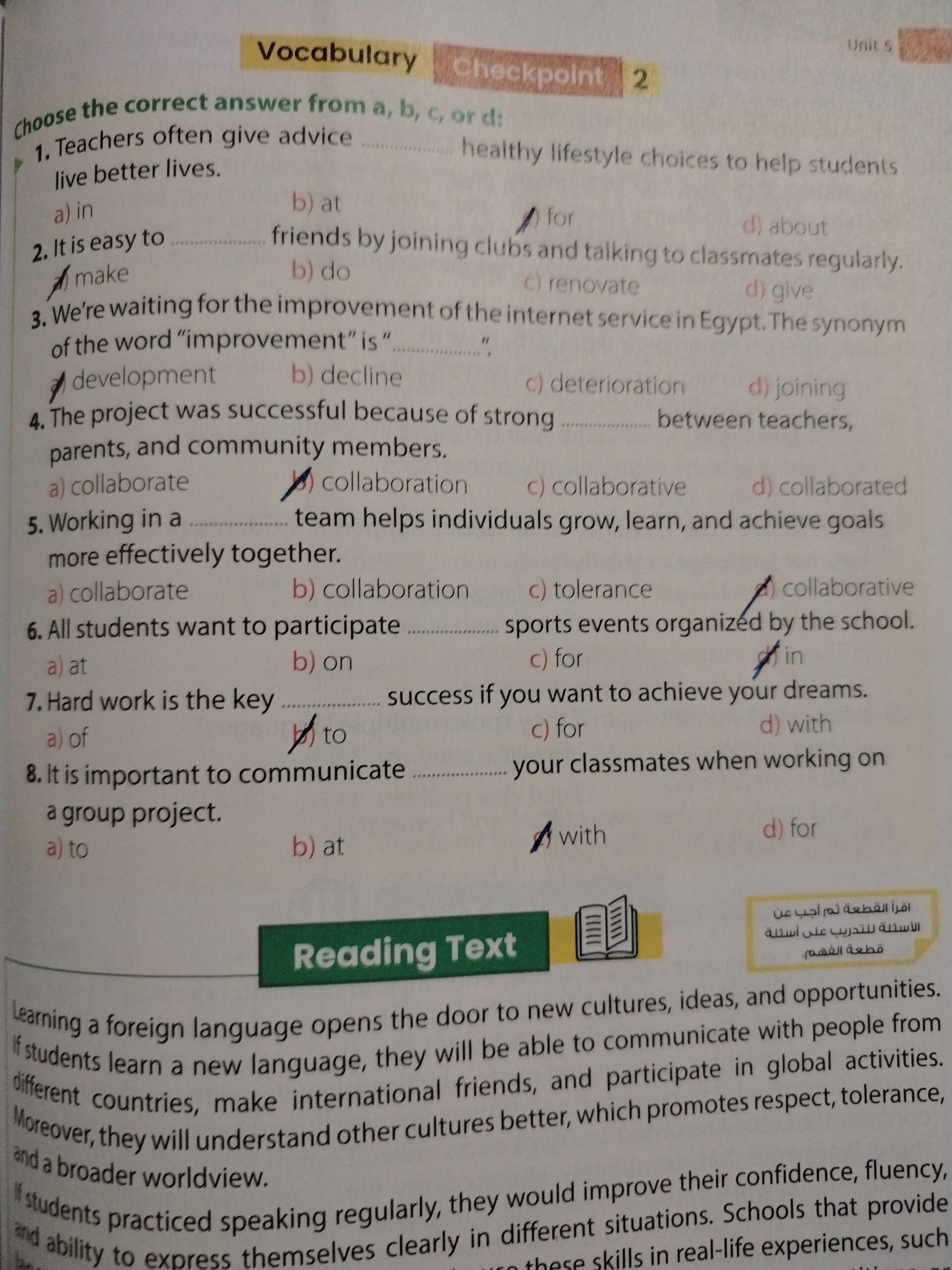 Reading and vocabulary