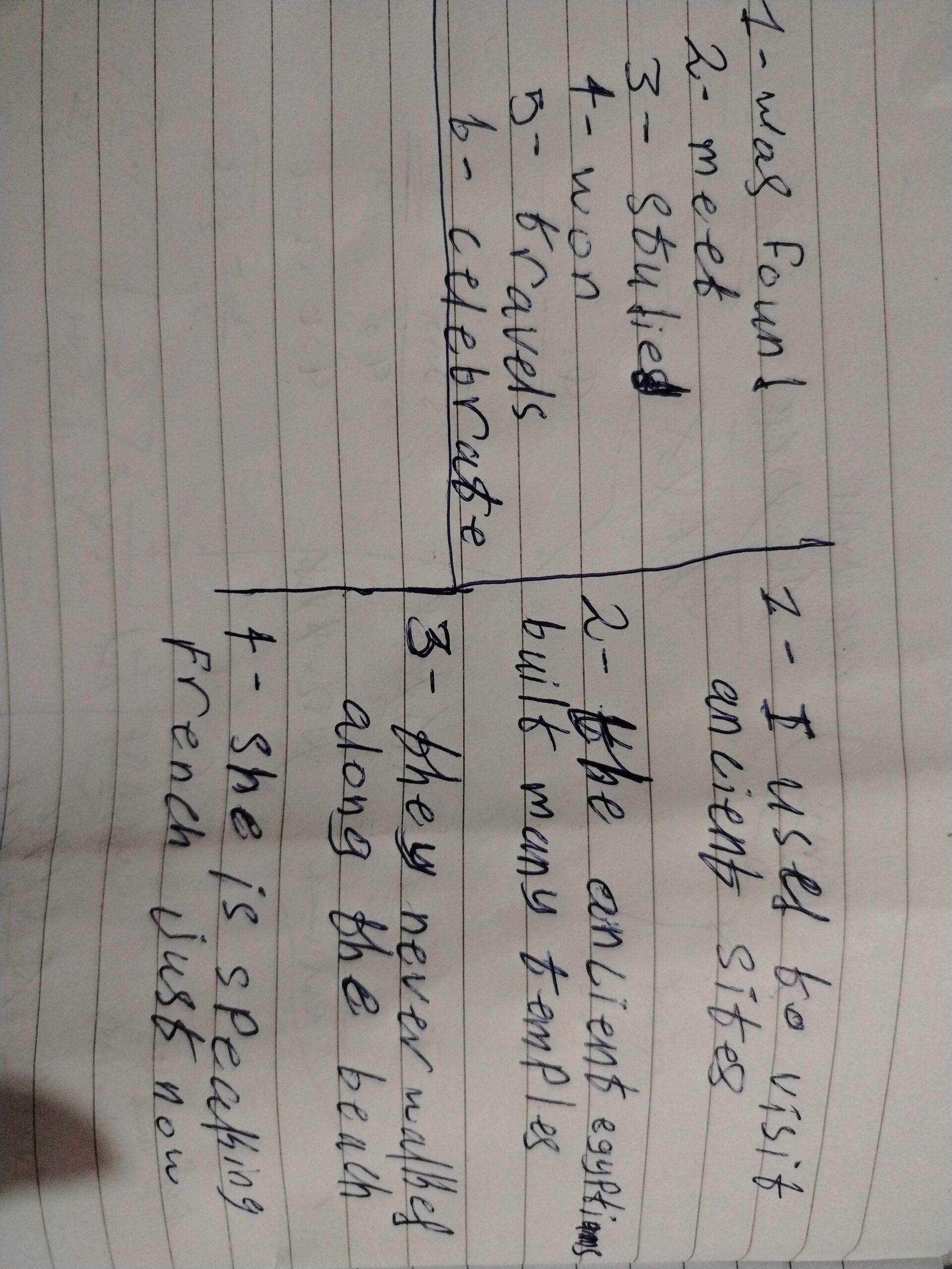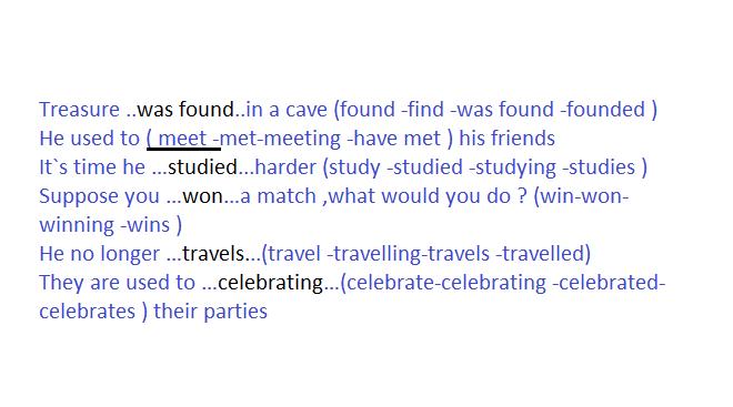Treasure …………………in a cave (found -find -was found -founded )