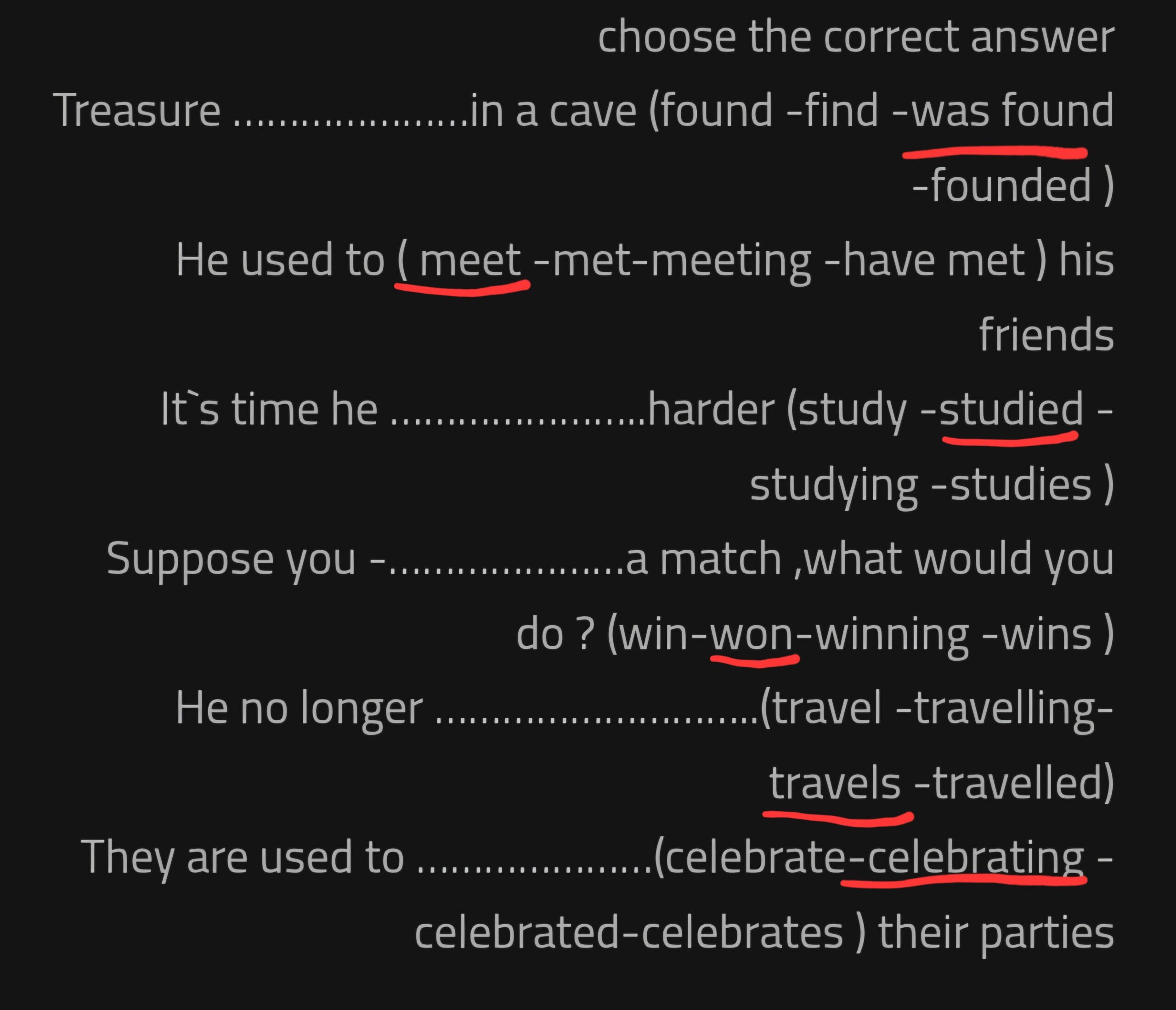 He used to ( meet -met-meeting -have met ) his friends