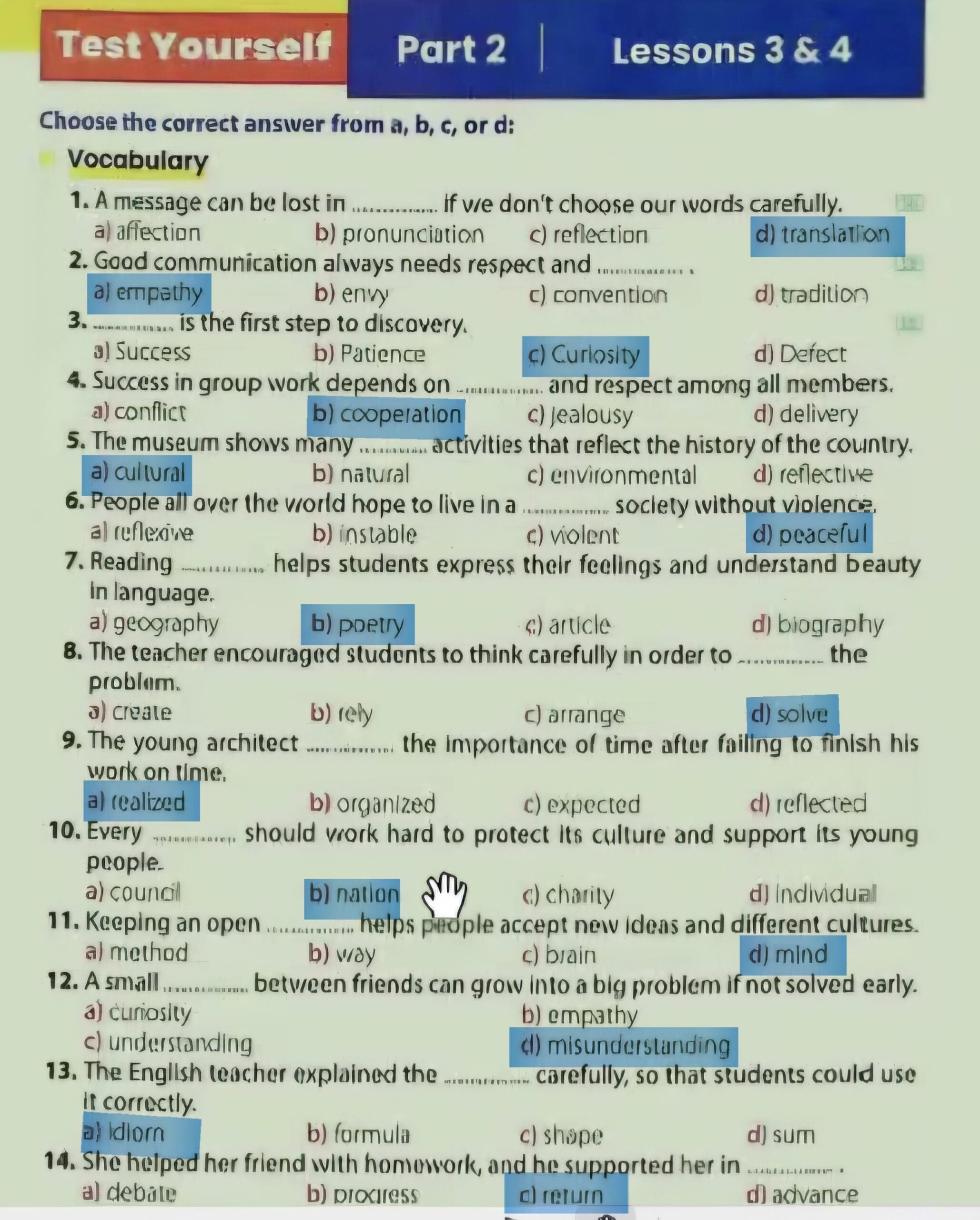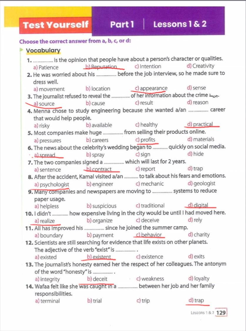 study the text vocabulary very well