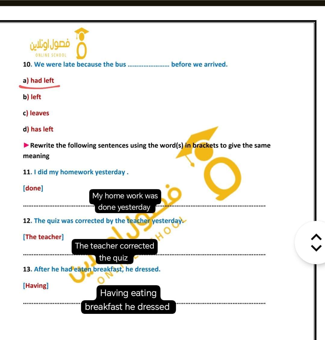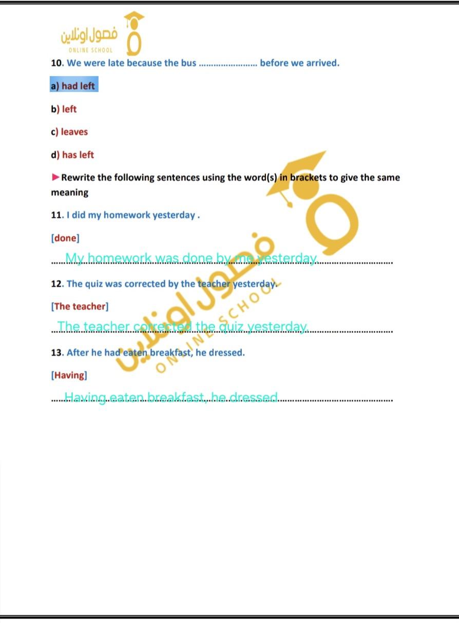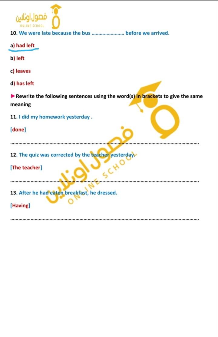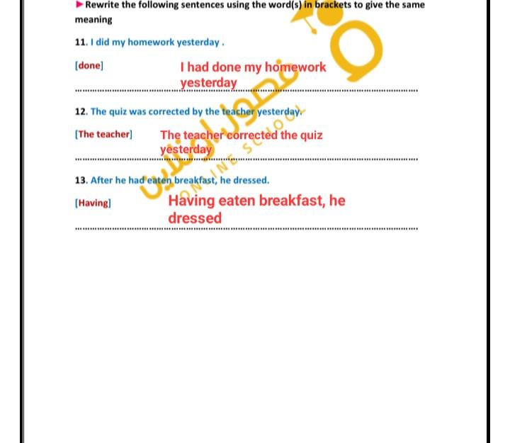 After …………………..,they went out (did hw-had done hw-doing hw -to do hw)