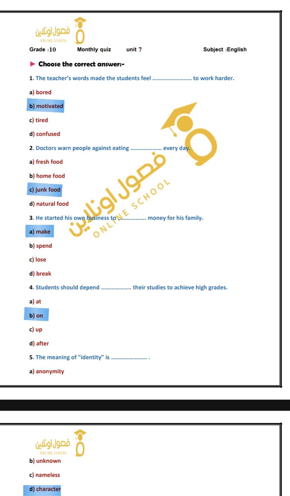 answer the given sheet