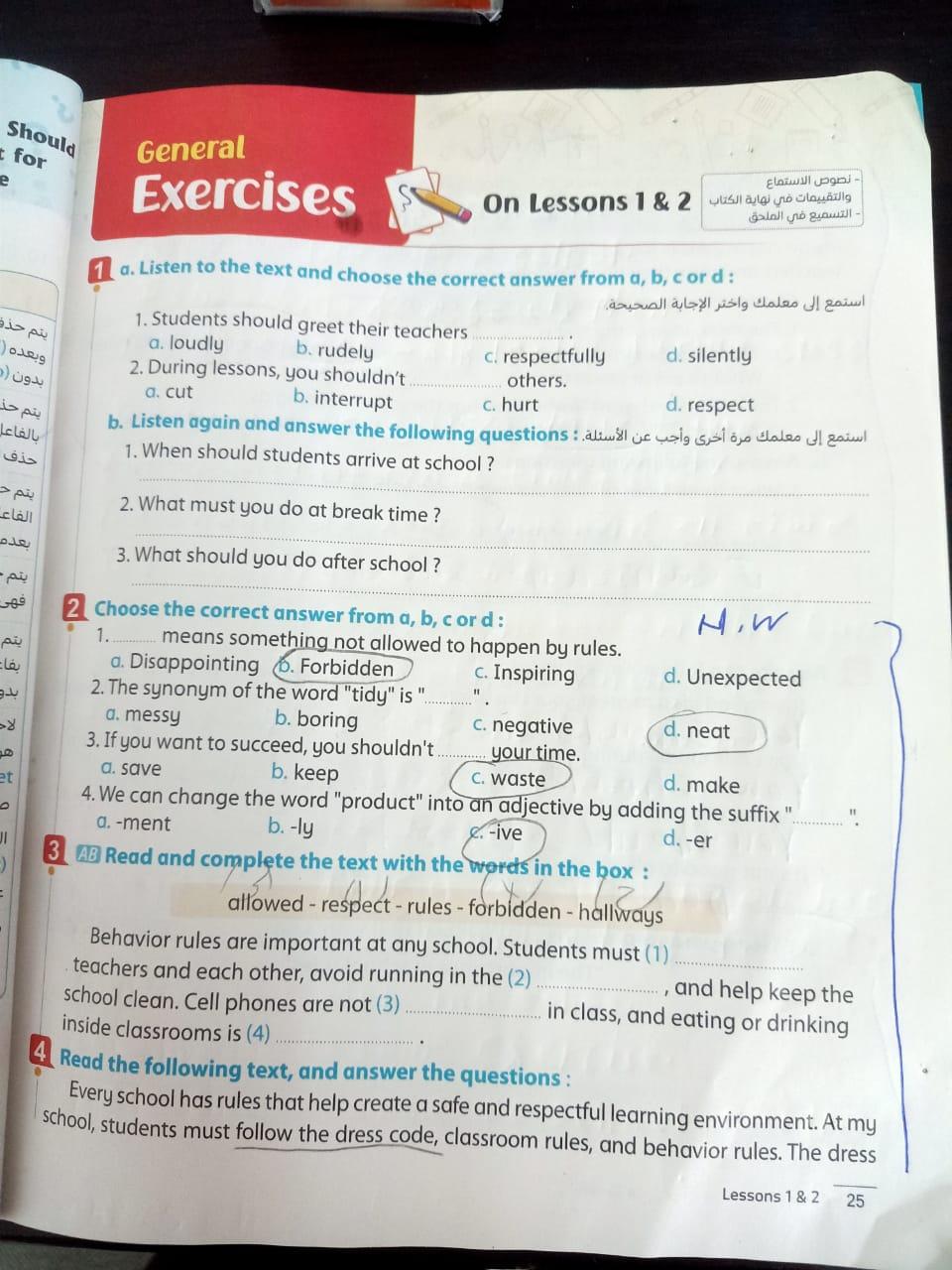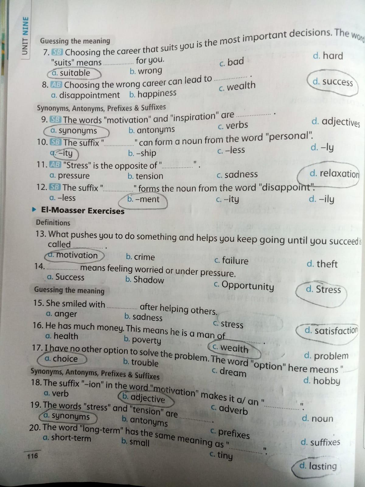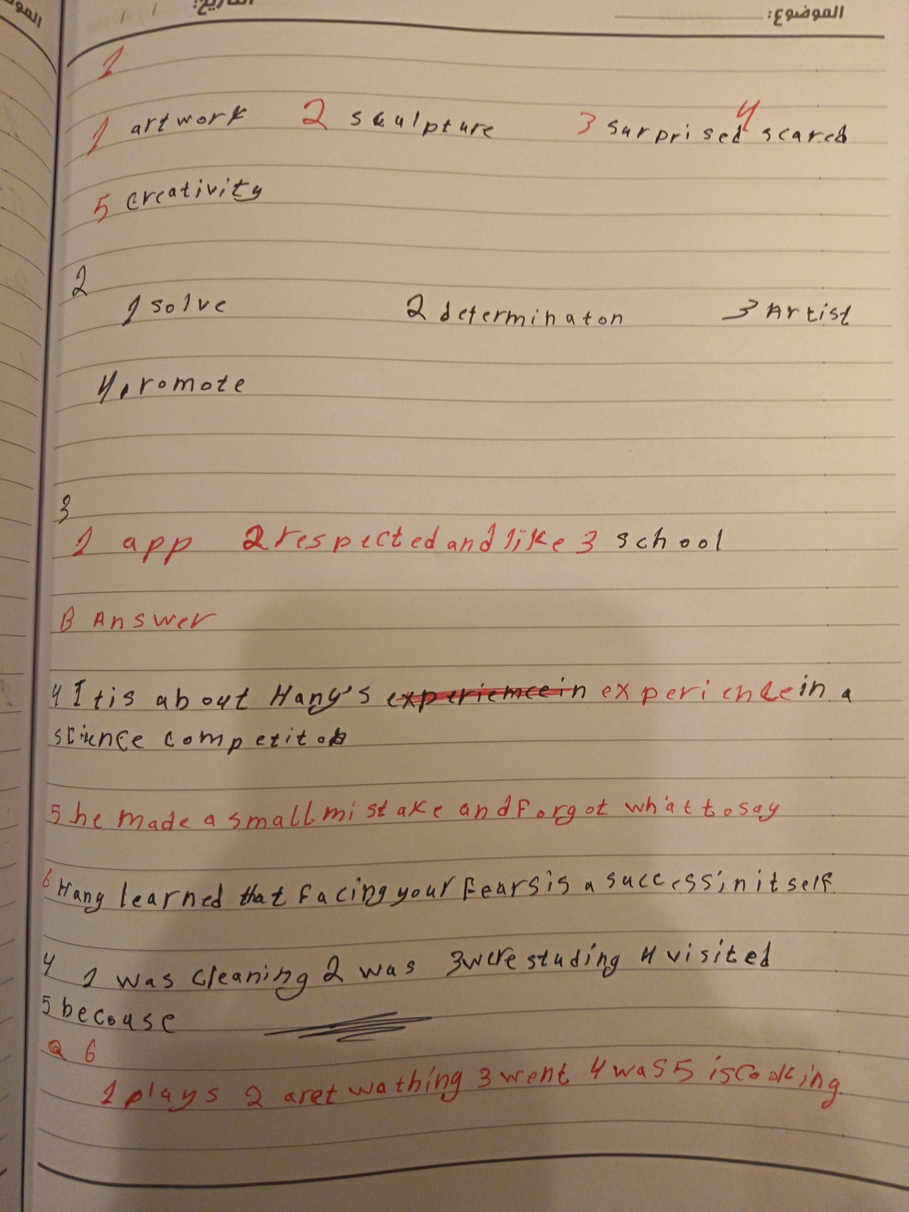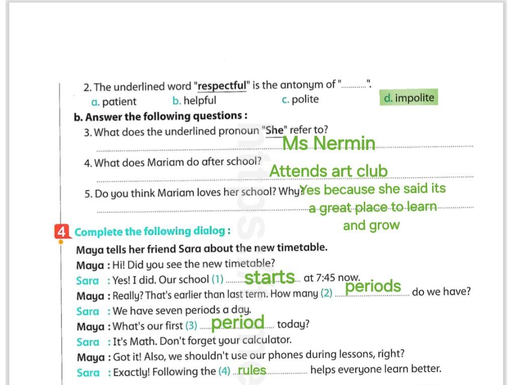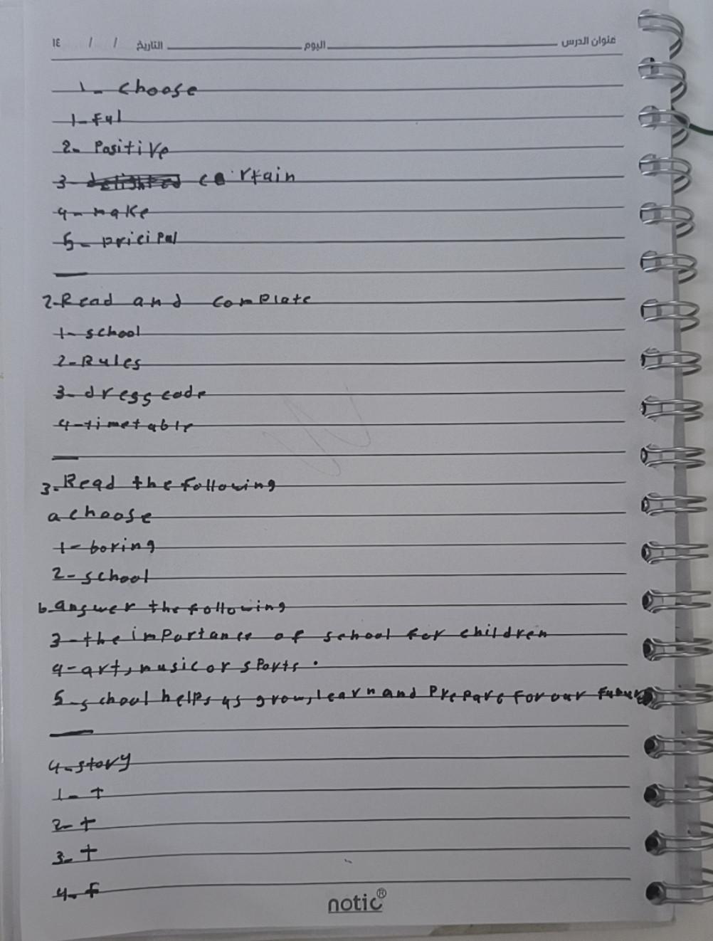 Today, we answered the test on U.9 on pages (132,133, and 134) and the general exercise on Review 3 on pages (137, 138, 139)… Page 140 is left for next time in sha’allah. Our homework for today is to write a paragraph (page 134) on job skills