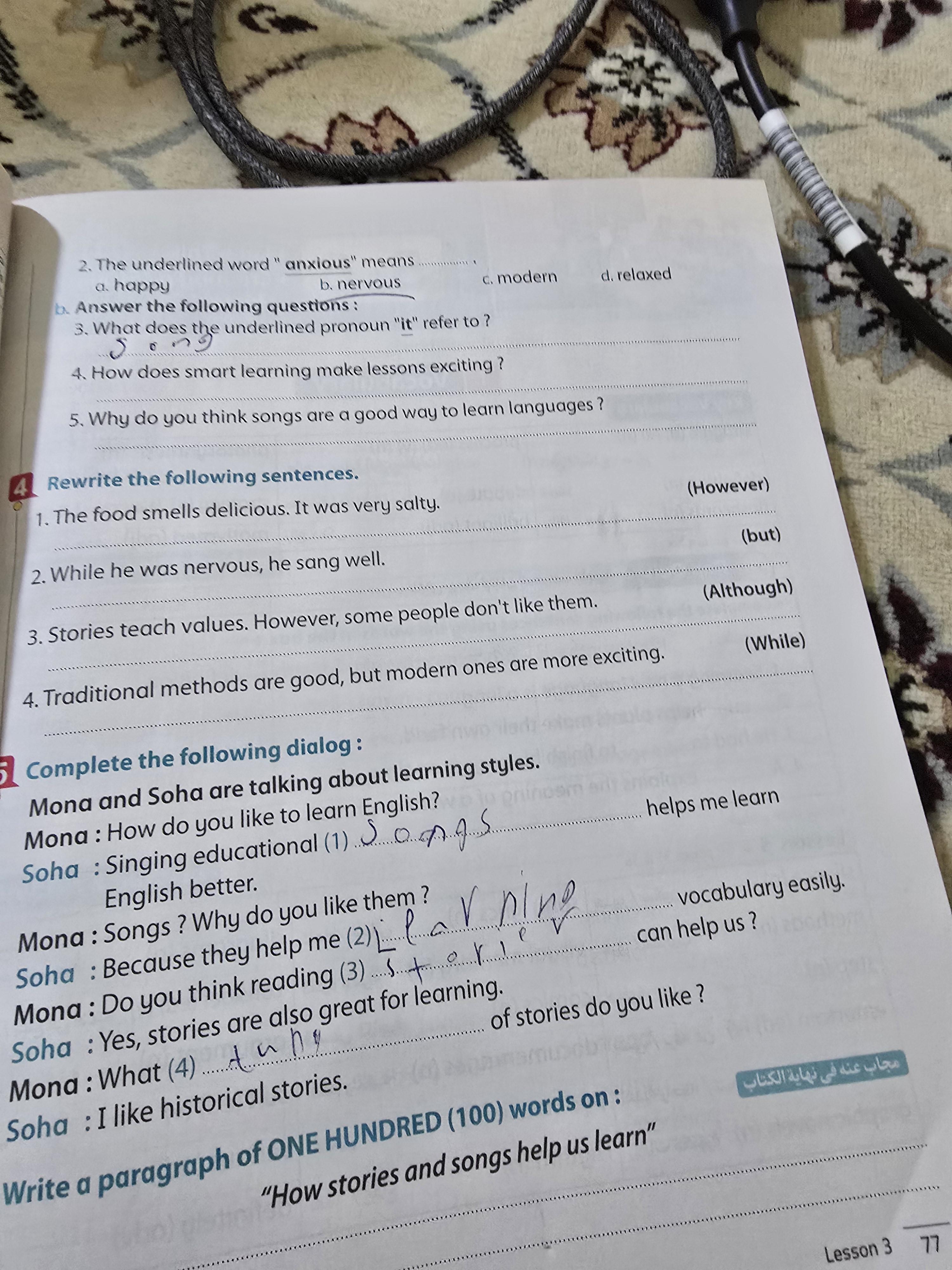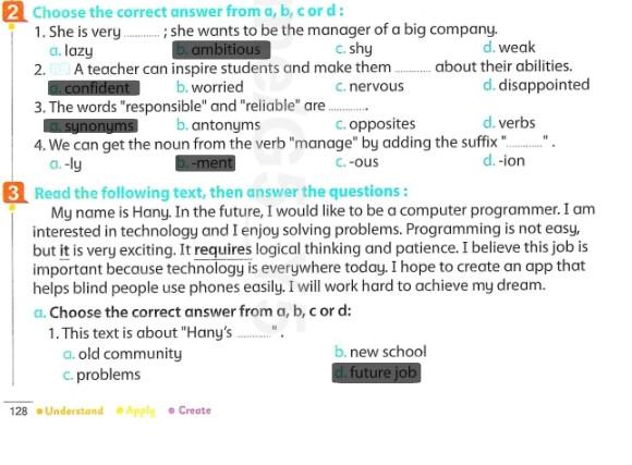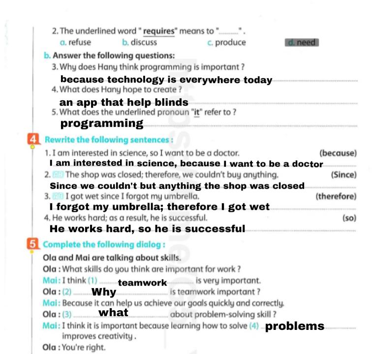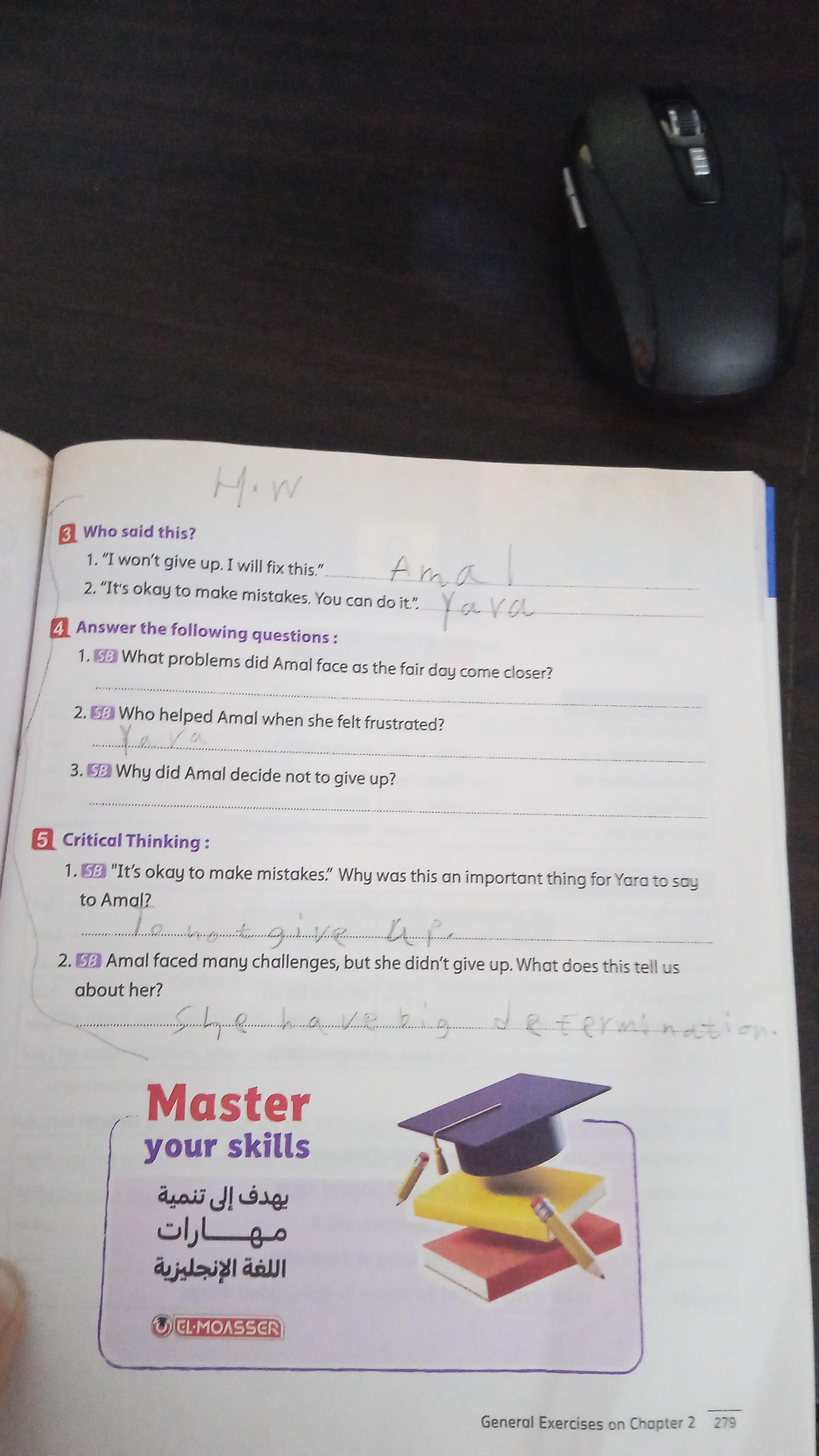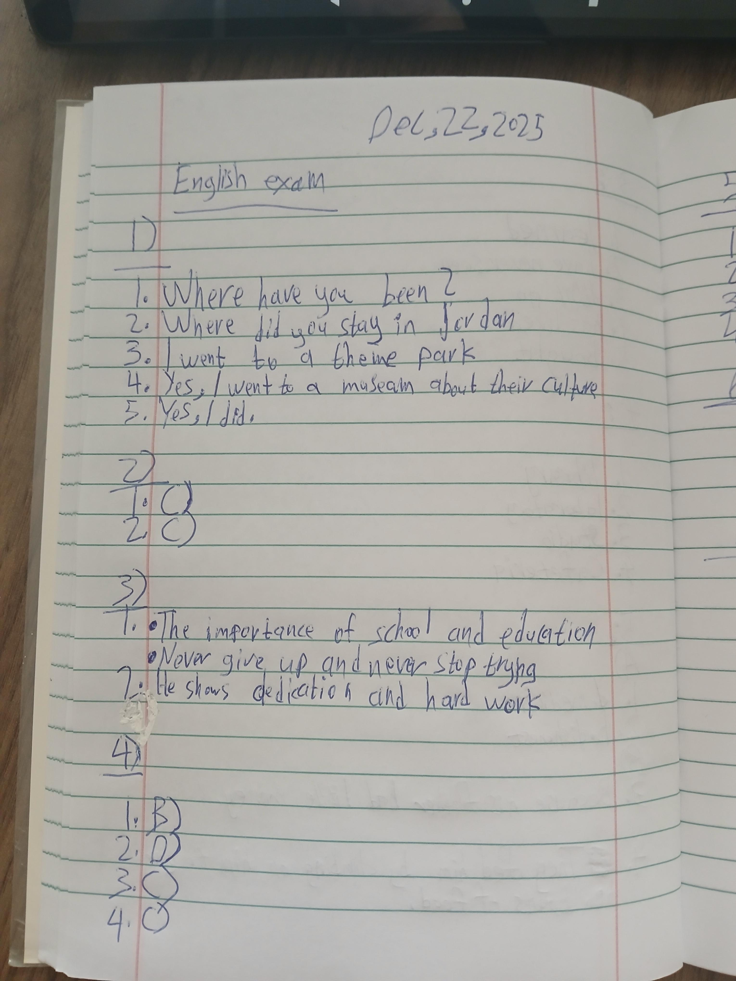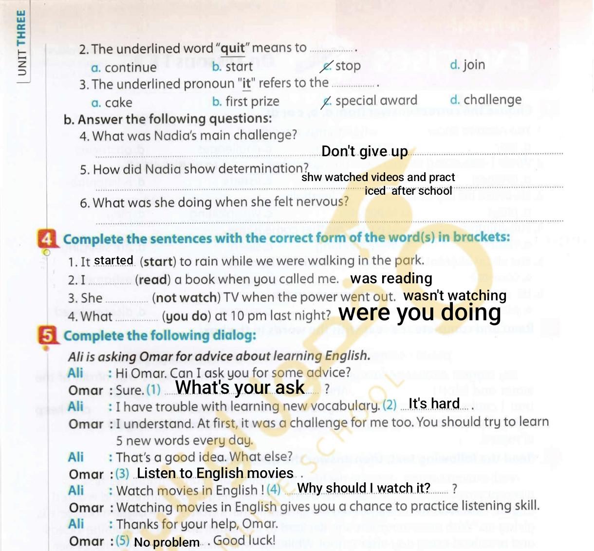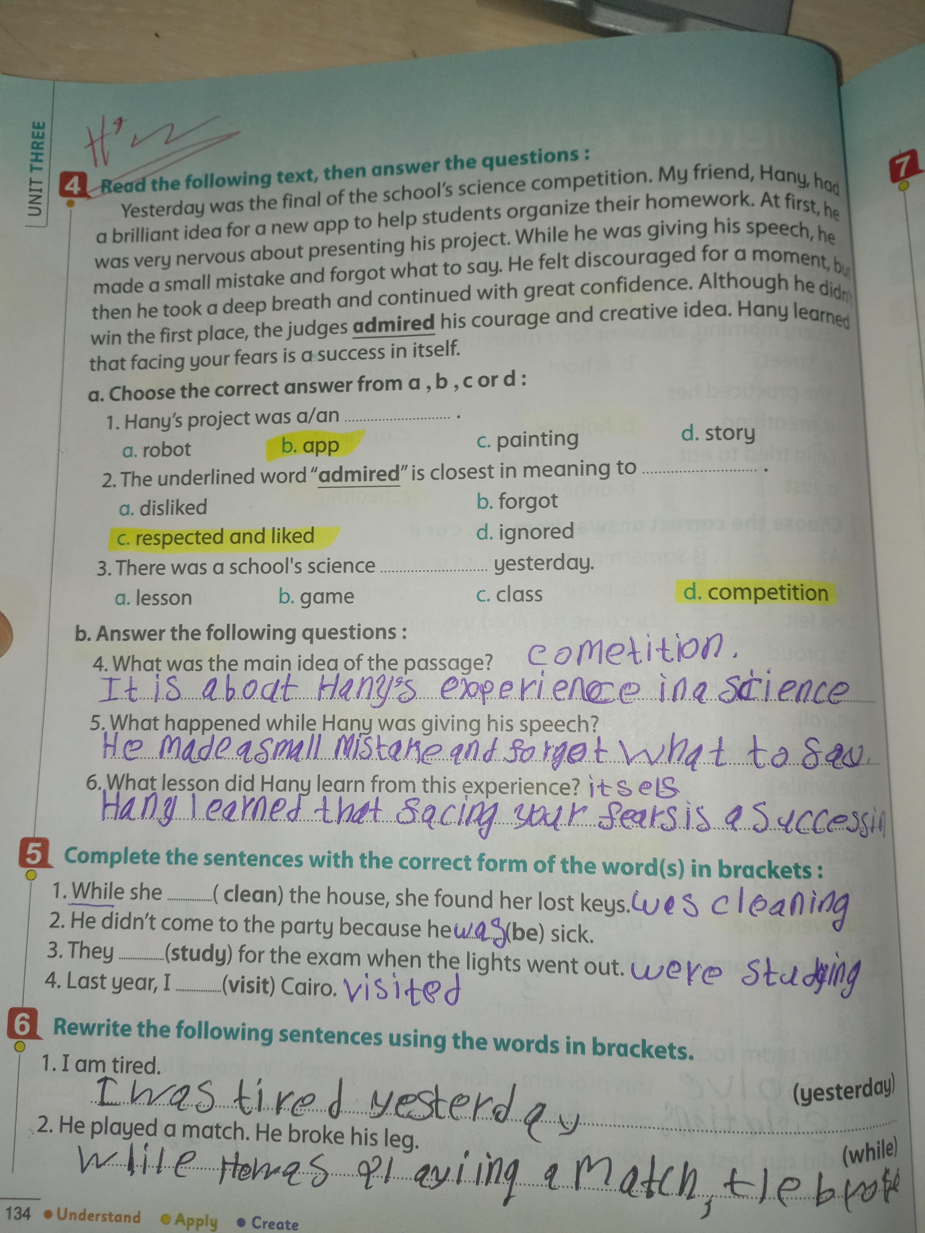Today, we answered the test on U.9 on pages (132,133, and 134) and the general exercise on Review 3 on pages (137, 138, 139)… Page 140 is left for next time in sha’allah. Our homework for today is to write a paragraph (page 134) on job skills