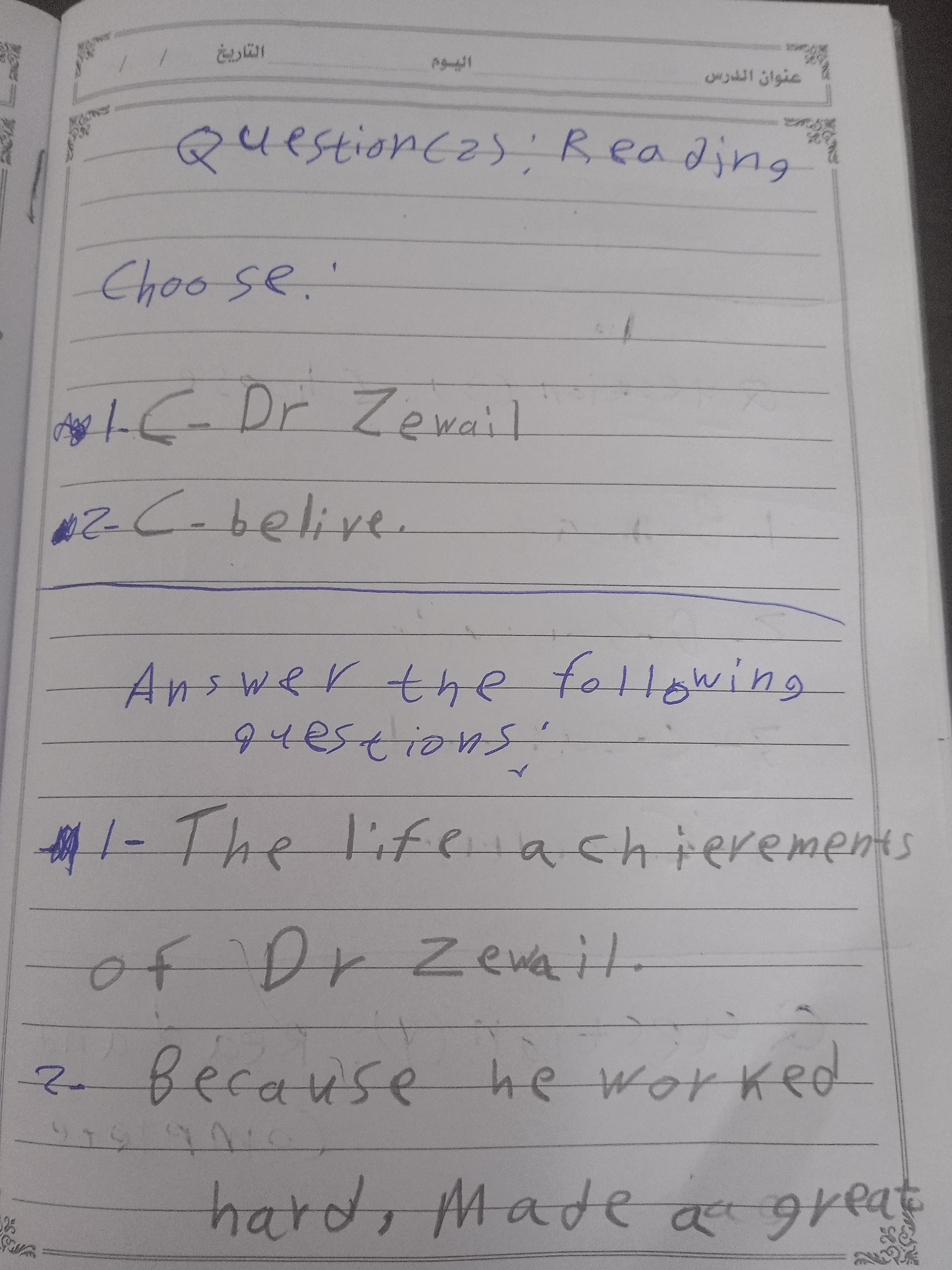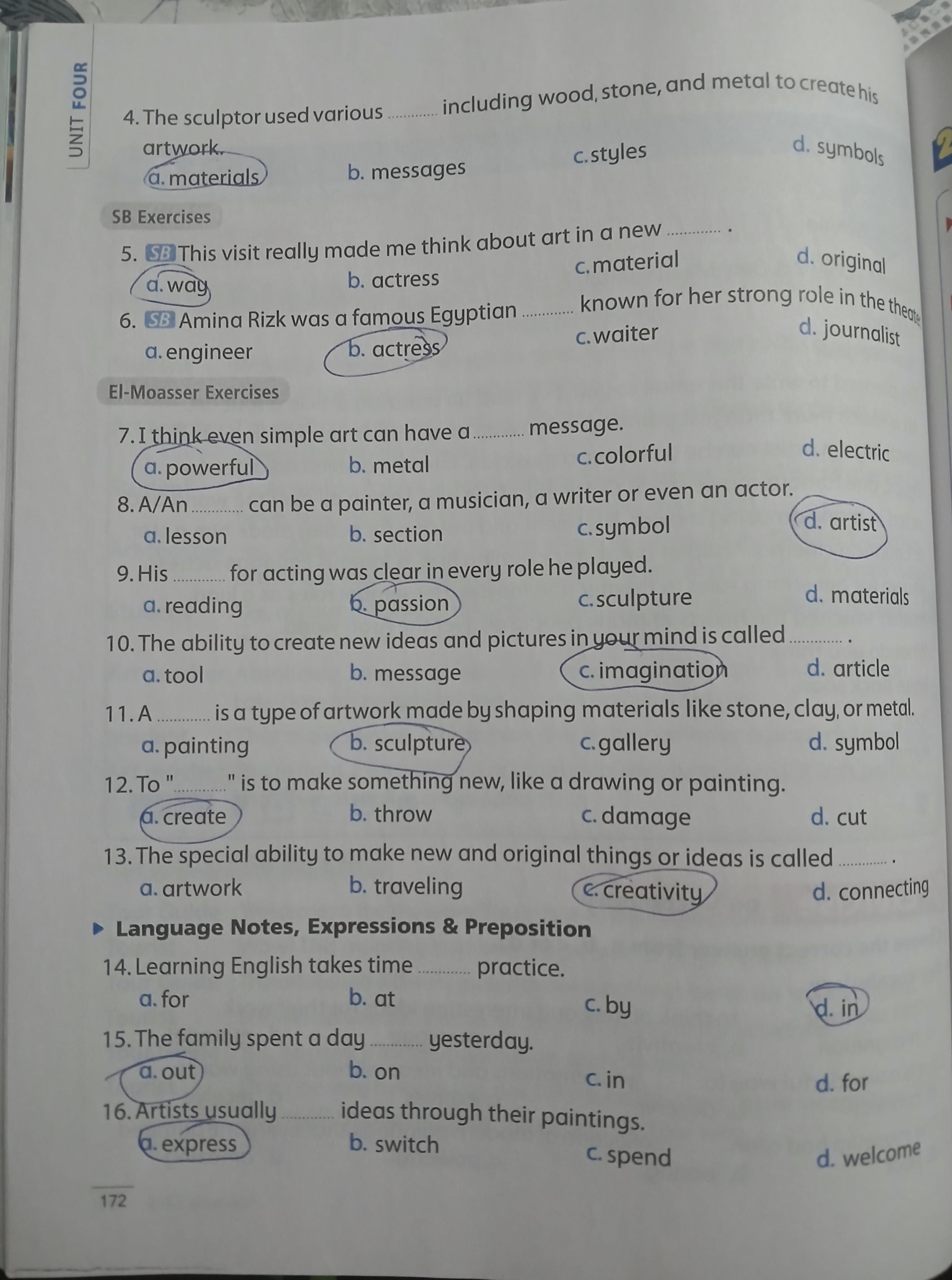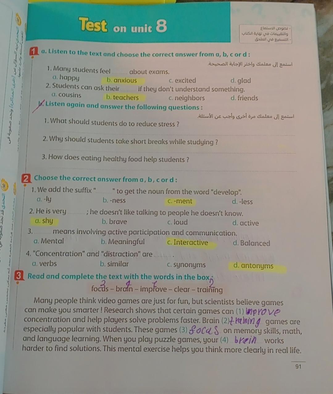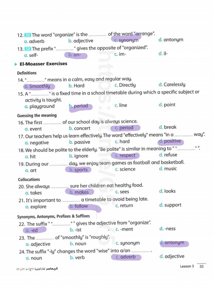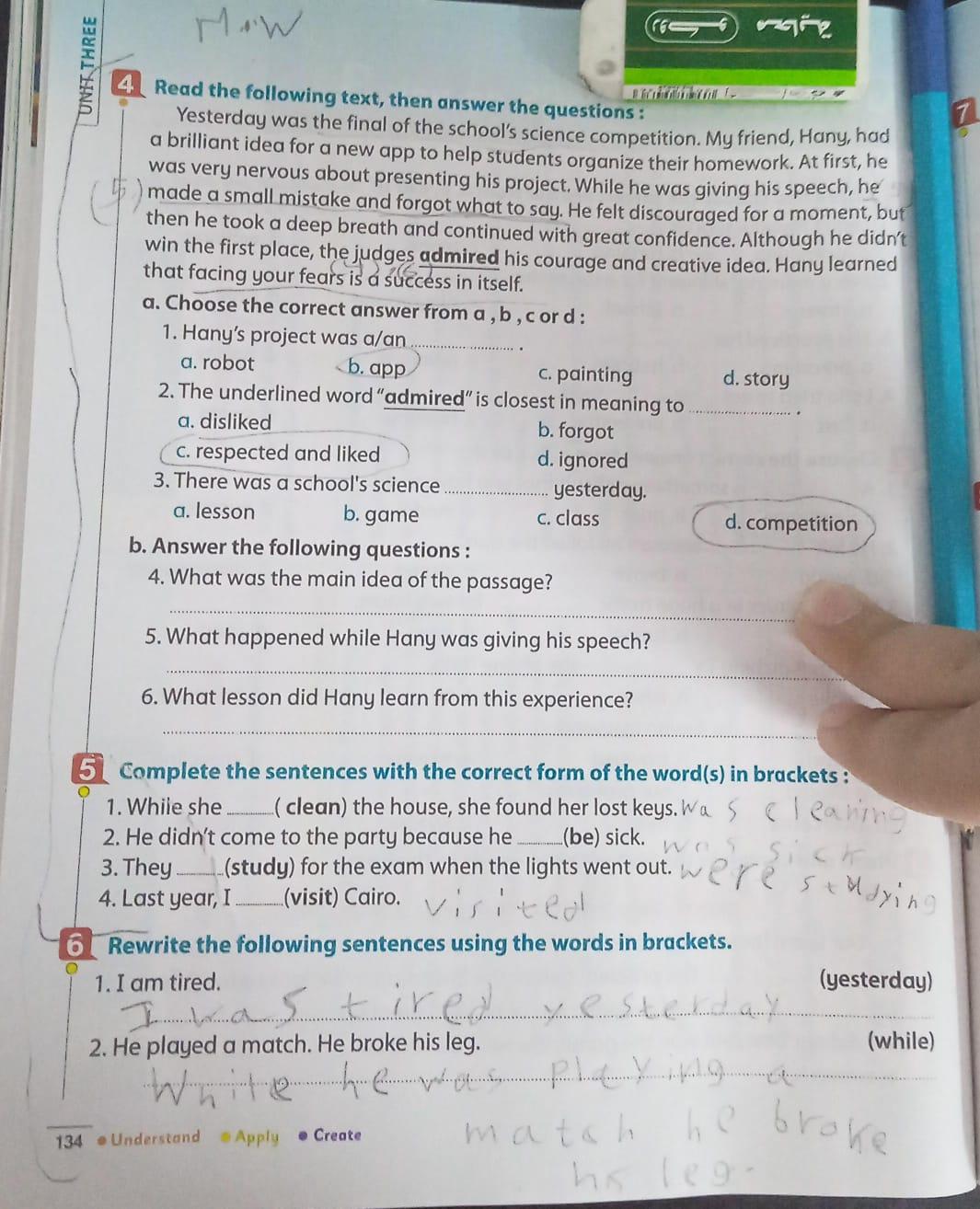 Today, we answered the test on U.9 on pages (132,133, and 134) and the general exercise on Review 3 on pages (137, 138, 139)… Page 140 is left for next time in sha’allah. Our homework for today is to write a paragraph (page 134) on job skills